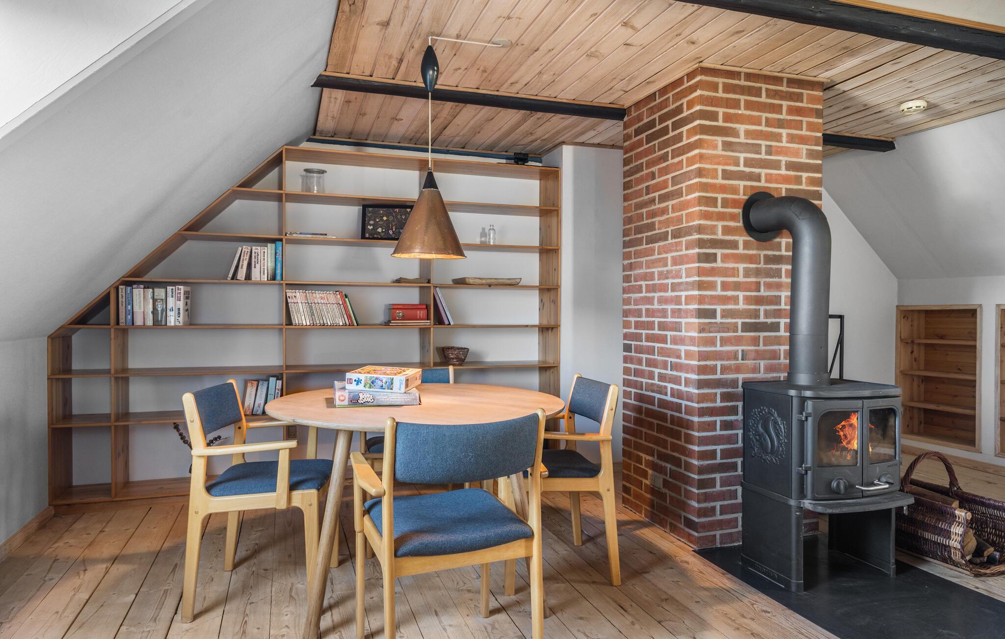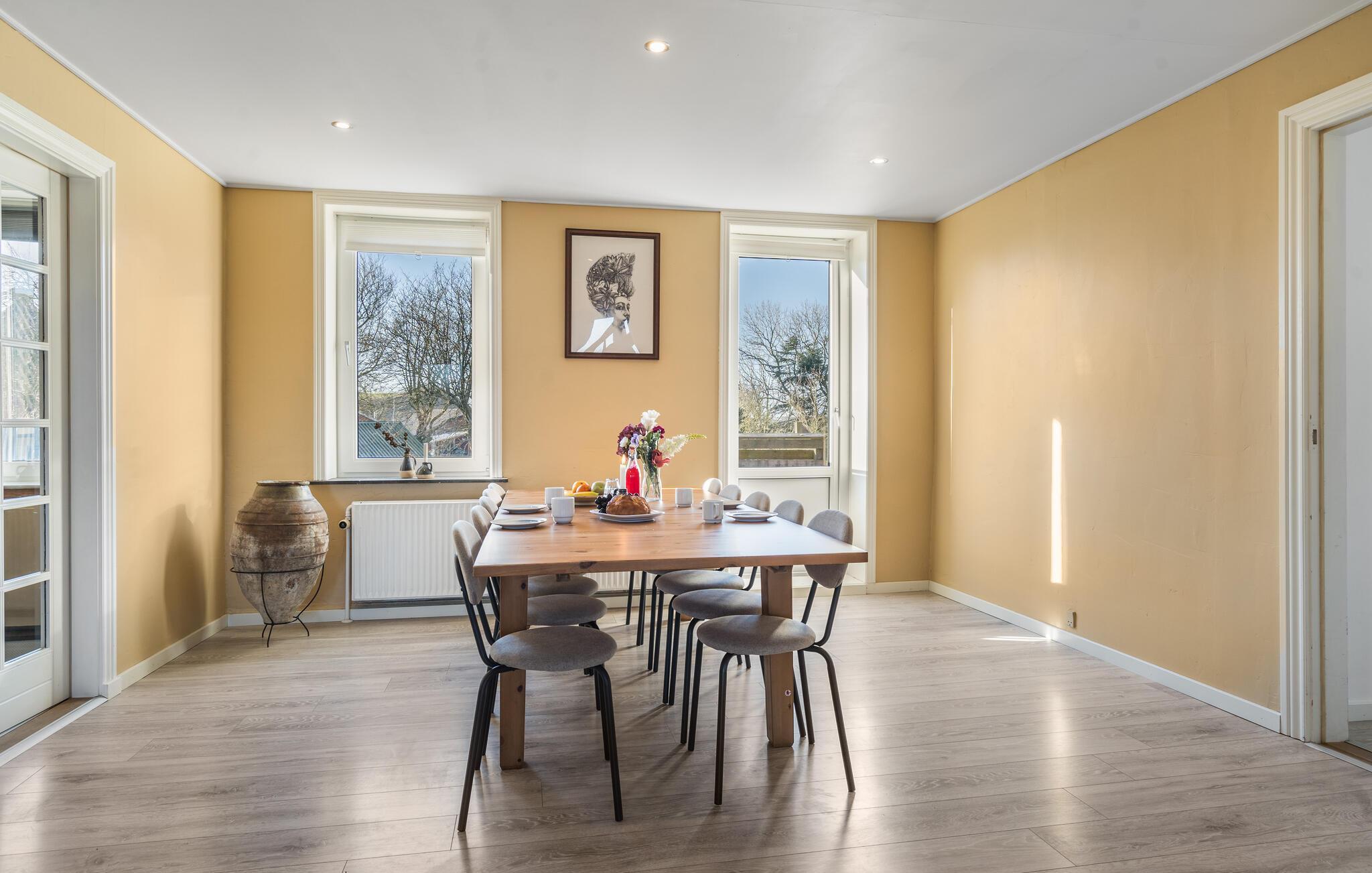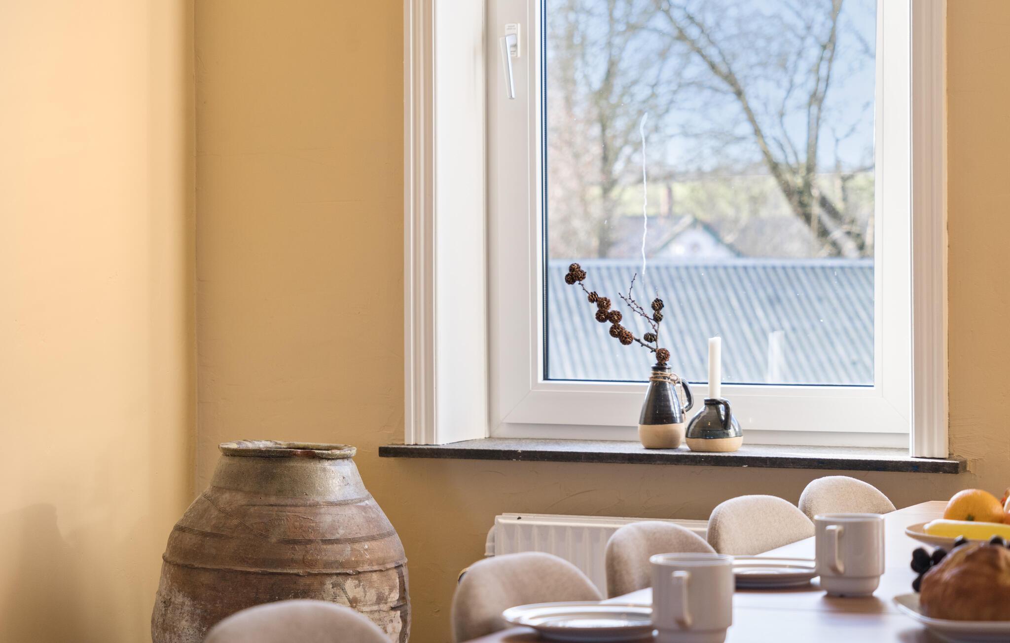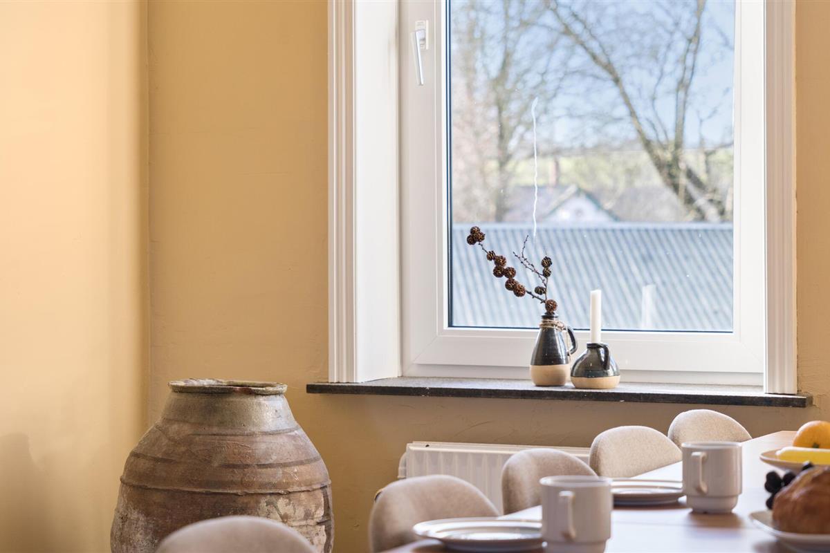 Midden in de landelijke idylle van Hunstrup staat dit stijlvol gerestaureerde landhuis te wachten om je een harmonieuze vakantie te bieden in de verzorgde kamers. Blader in de bibliotheek voor een goed boek, steek de houtkachel aan en kijk uit naar gezellige uren op de comfortabele bank. Speel bordspellen of luister naar het knisperen van het vuur bij thee en kaarslicht. Laat je inspireren door het uitzicht op het groen tijdens het koken in de moderne keuken en geniet van je maaltijden in de lichte eethoek.