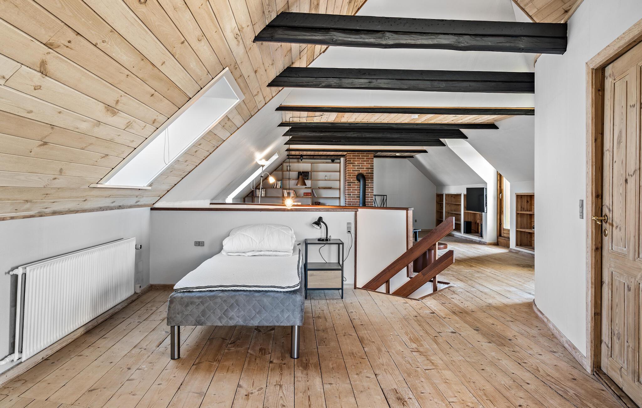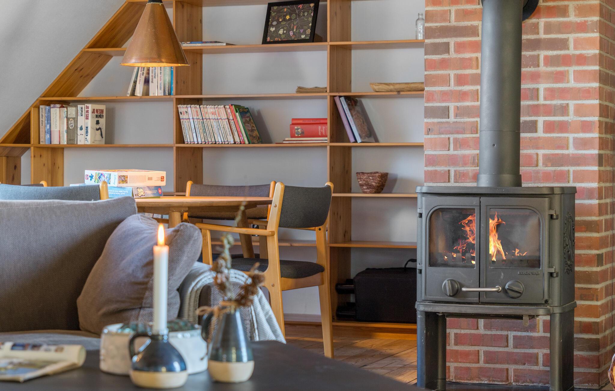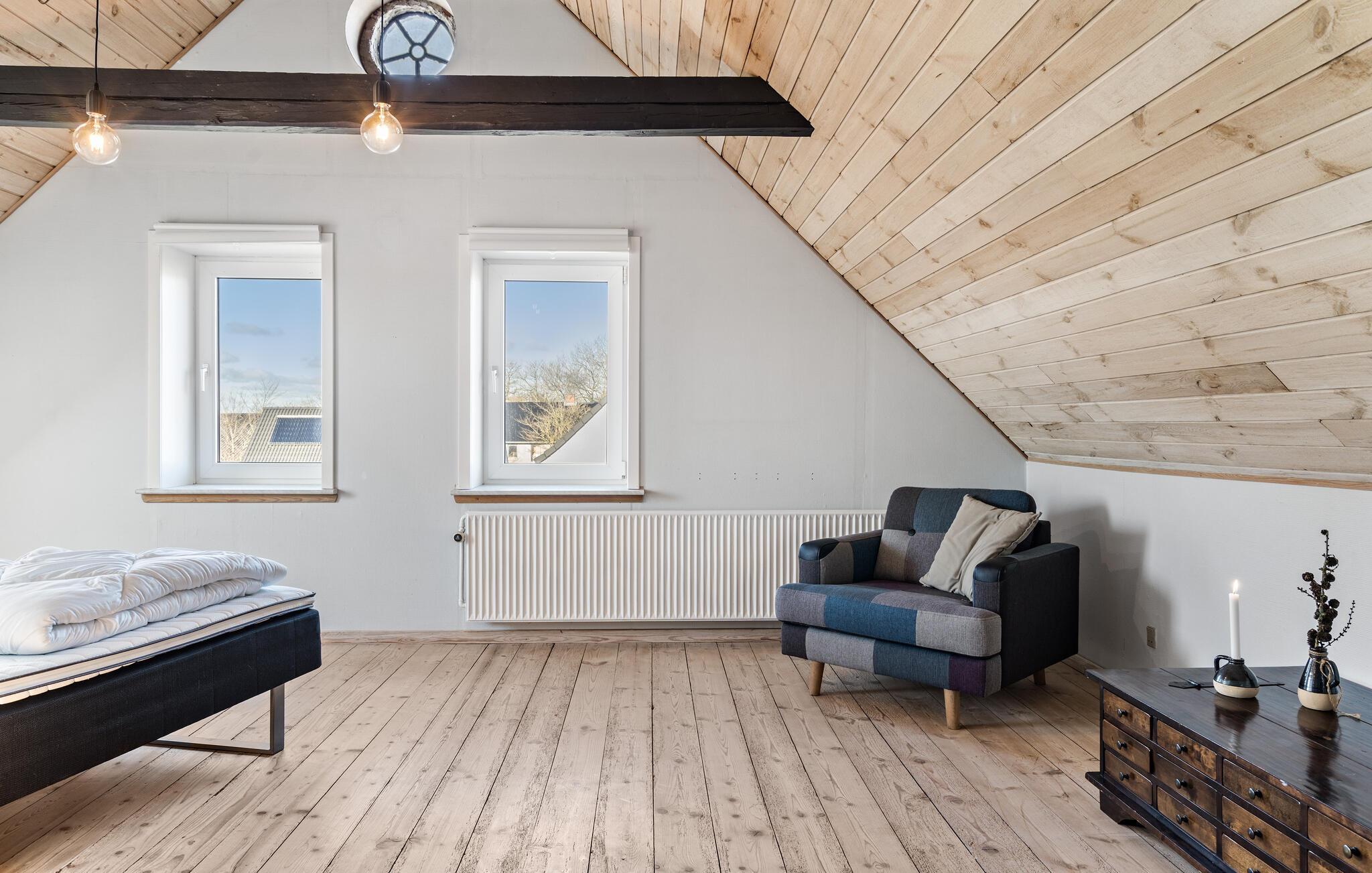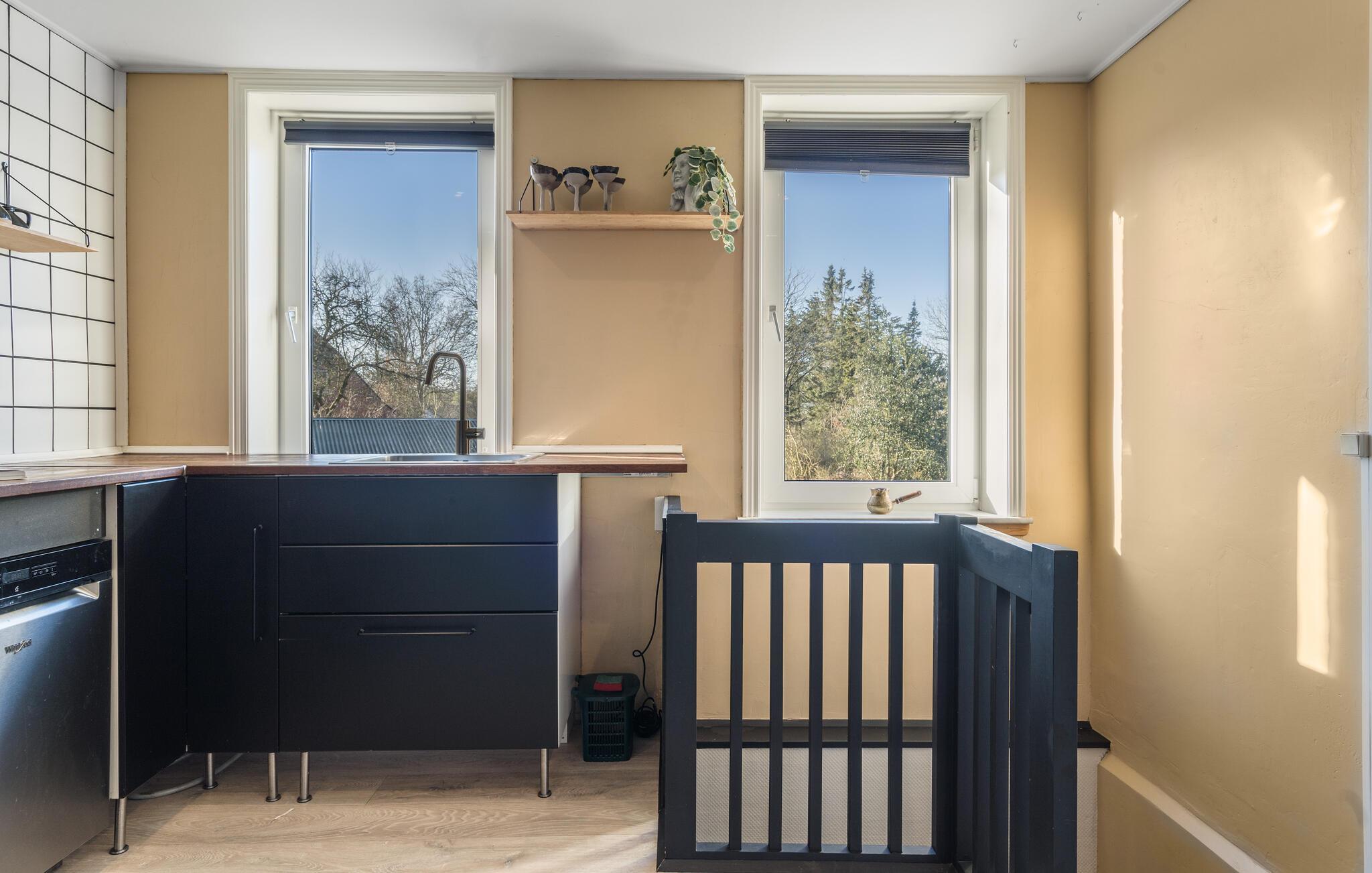 Midden in de landelijke idylle van Hunstrup staat dit stijlvol gerestaureerde landhuis te wachten om je een harmonieuze vakantie te bieden in de verzorgde kamers. Blader in de bibliotheek voor een goed boek, steek de houtkachel aan en kijk uit naar gezellige uren op de comfortabele bank. Speel bordspellen of luister naar het knisperen van het vuur bij thee en kaarslicht. Laat je inspireren door het uitzicht op het groen tijdens het koken in de moderne keuken en geniet van je maaltijden in de lichte eethoek.