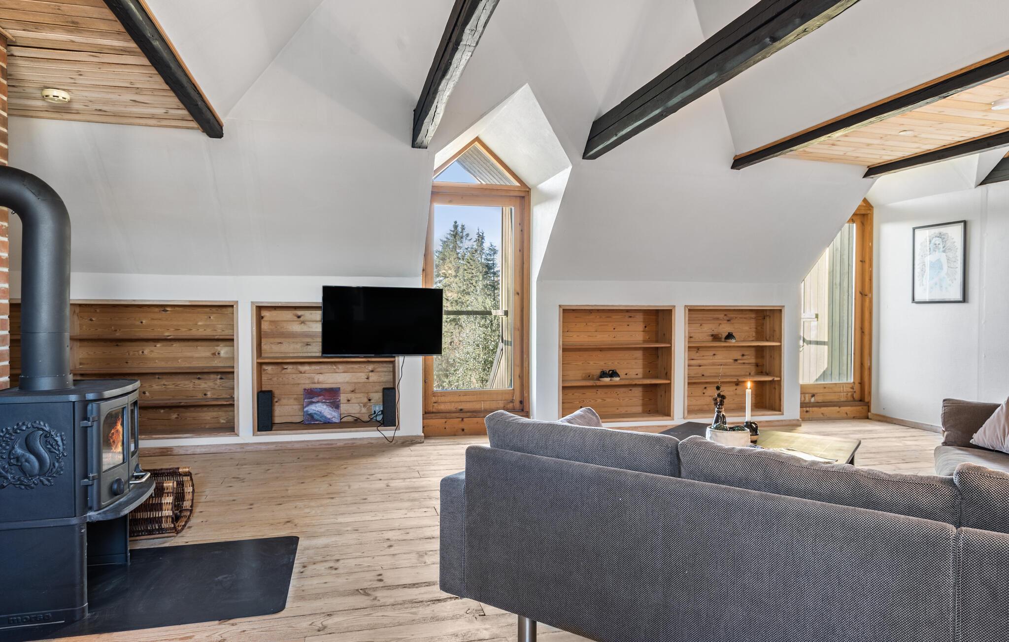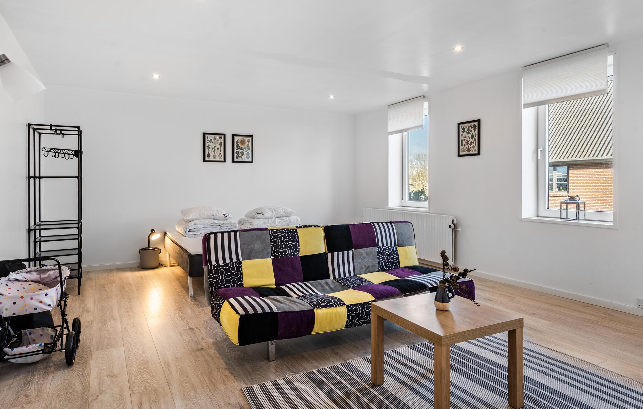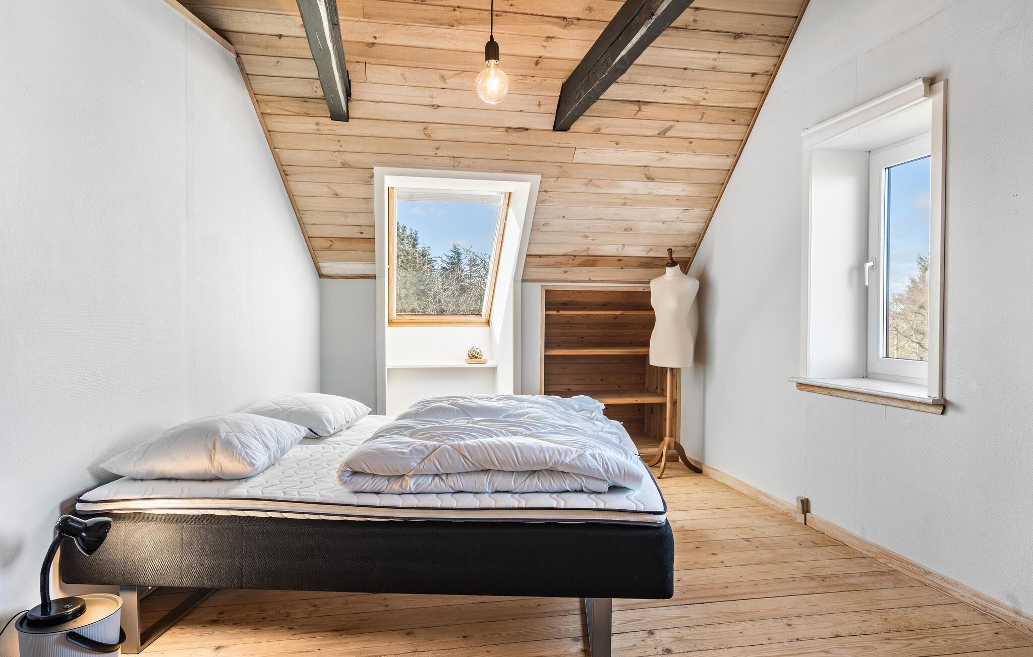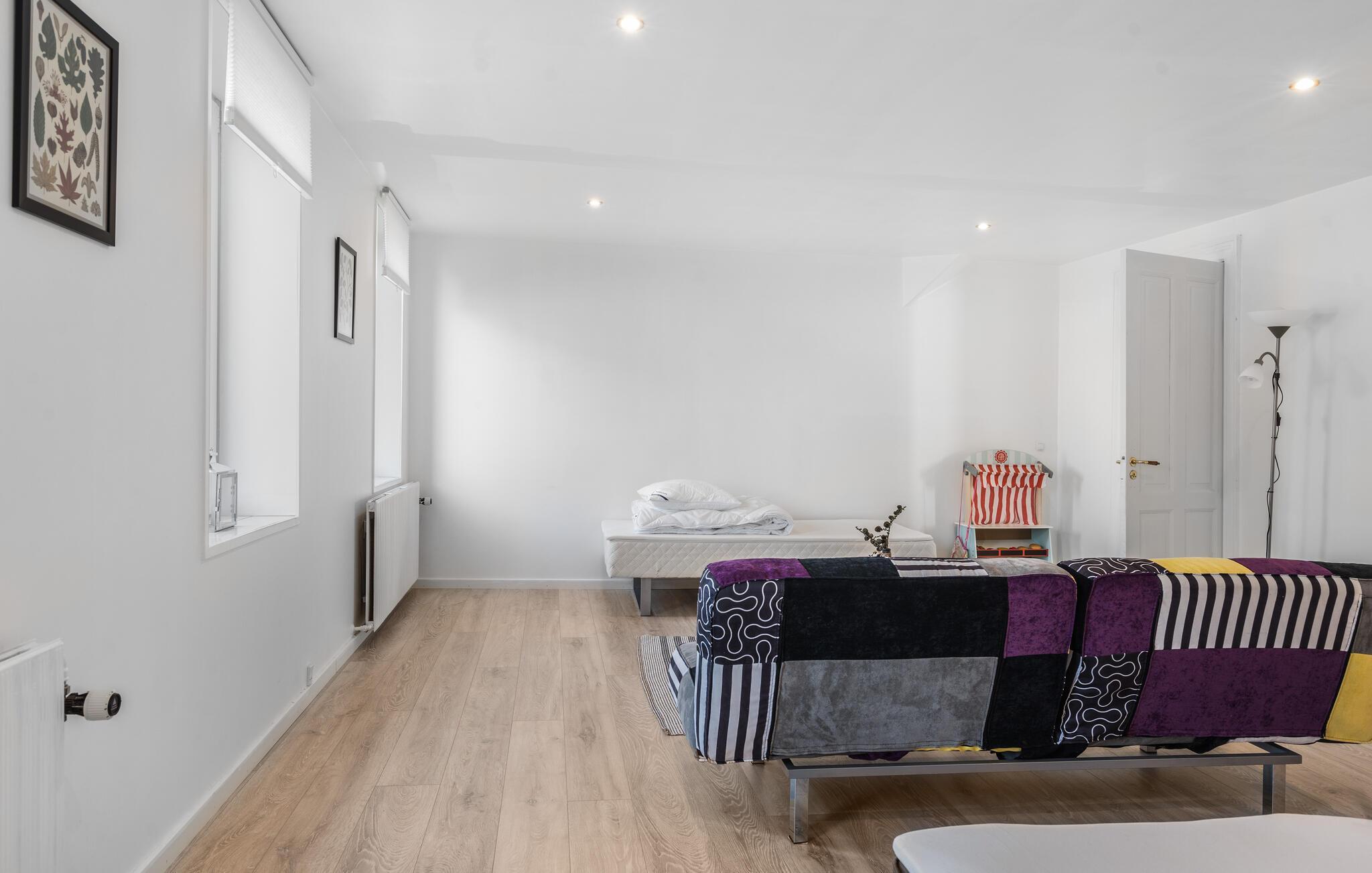 Midden in de landelijke idylle van Hunstrup staat dit stijlvol gerestaureerde landhuis te wachten om je een harmonieuze vakantie te bieden in de verzorgde kamers. Blader in de bibliotheek voor een goed boek, steek de houtkachel aan en kijk uit naar gezellige uren op de comfortabele bank. Speel bordspellen of luister naar het knisperen van het vuur bij thee en kaarslicht. Laat je inspireren door het uitzicht op het groen tijdens het koken in de moderne keuken en geniet van je maaltijden in de lichte eethoek.