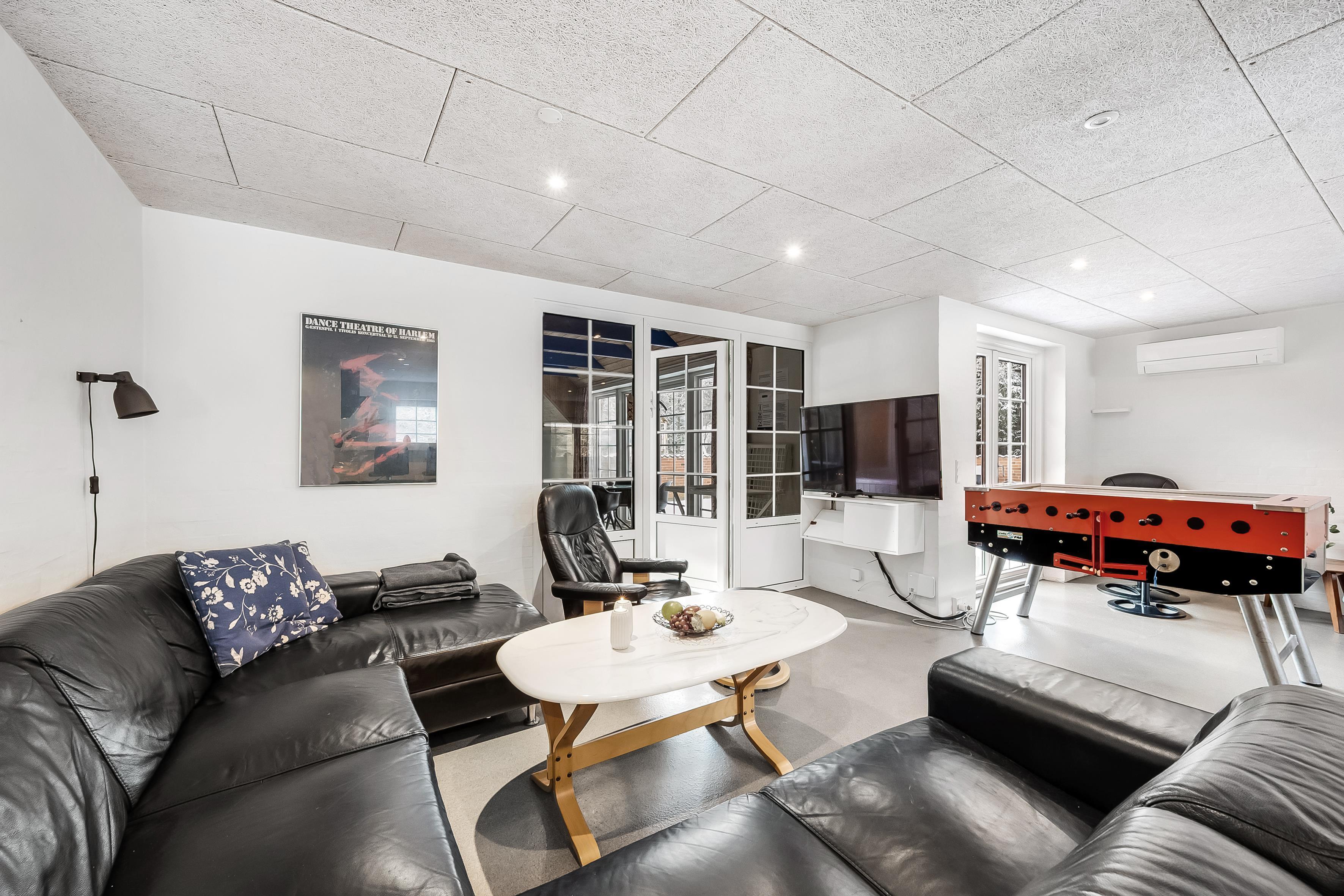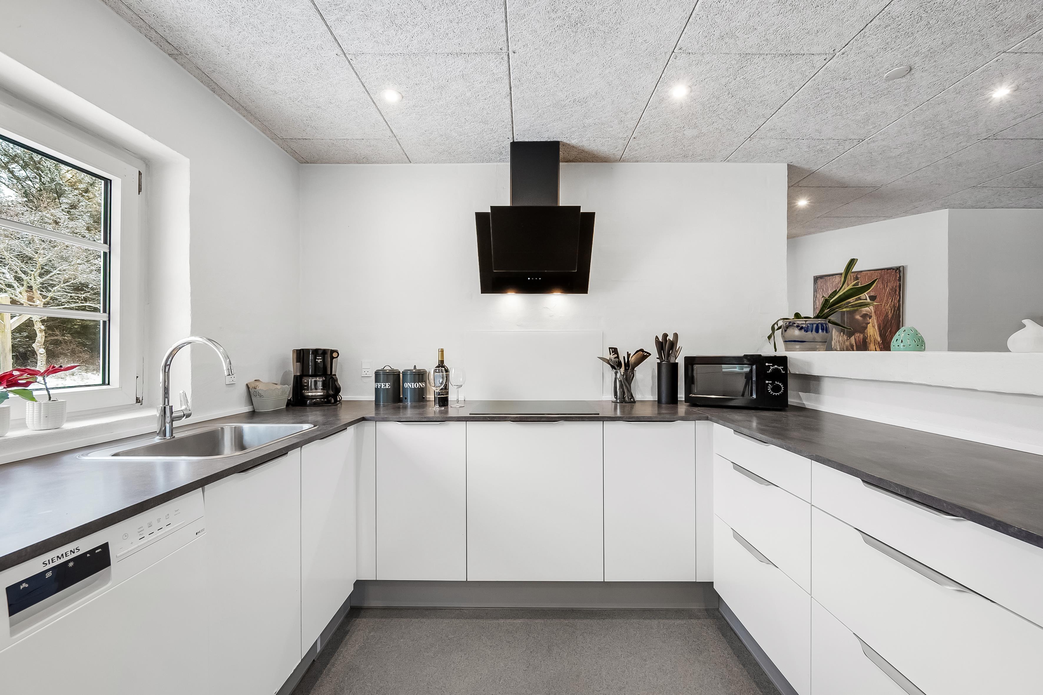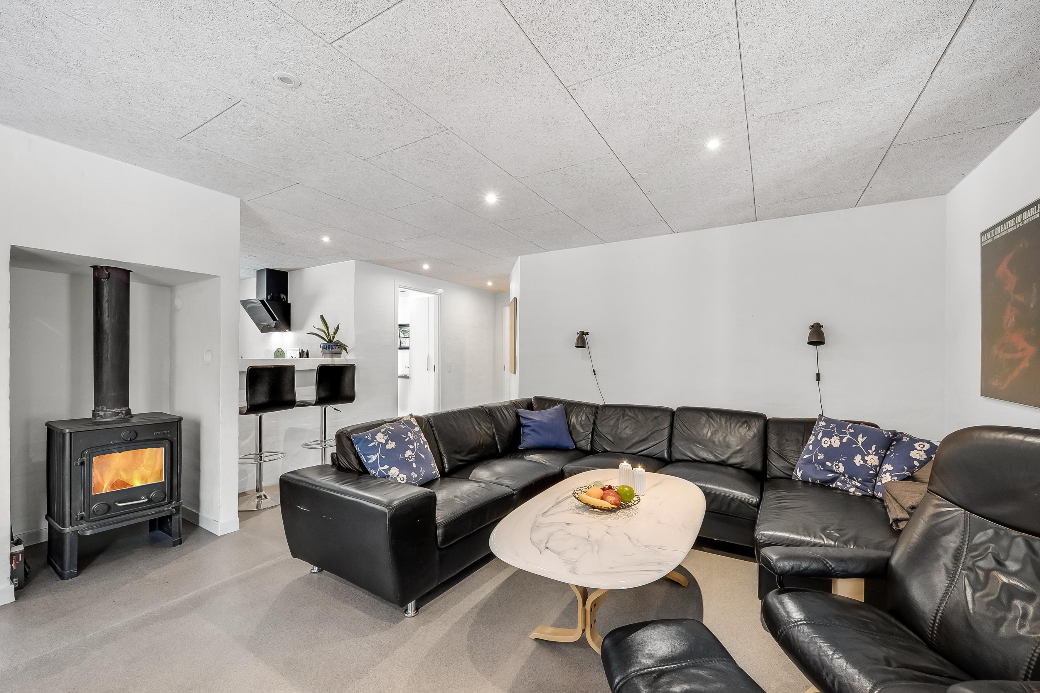 The bright kitchen-dining area forms the heart of the house with a well-equipped kitchen that includes an oven, 4 ceramic hobs, microwave, dishwasher, refrigerator, and a spacious 69-liter freezer. A wood-burning stove creates coziness and warmth in the open space. Relax in the lovely sofa arrangement in front of the large flat-screen TV with Chromecast, satellite, and radio. There is also wireless internet and an energy-efficient air-to-air heat pump.