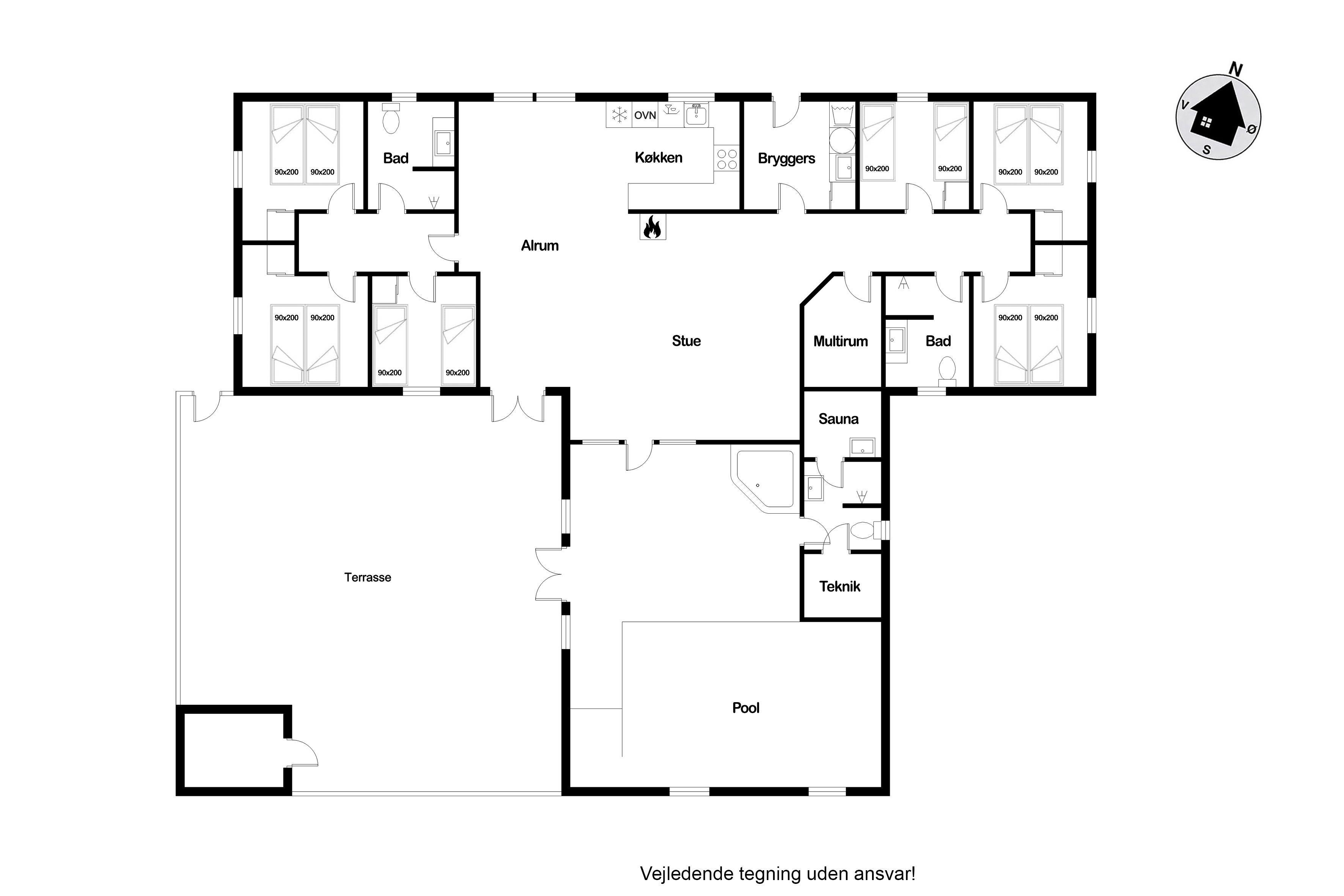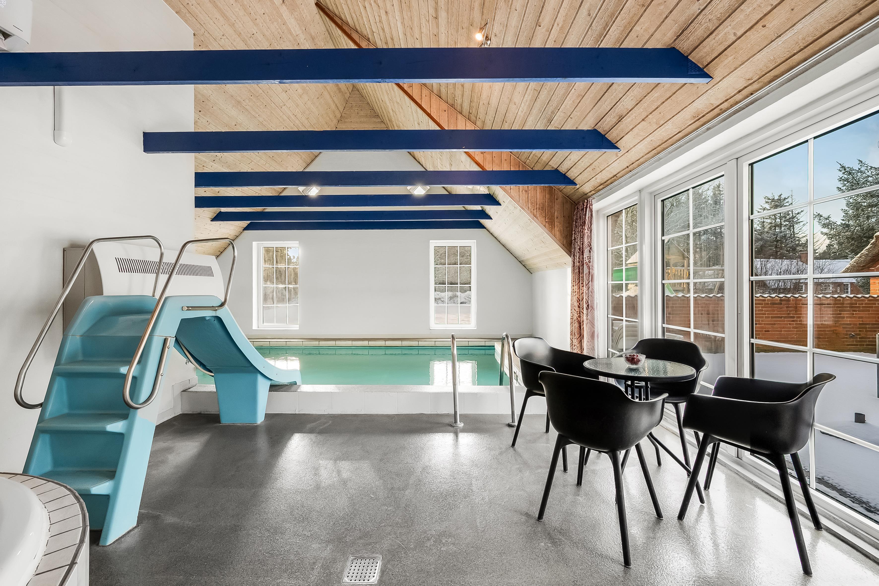 Luxurious pool house in Vester Husby, spanning 215 square meters and accommodating up to 14 people and 3 pets. With a large natural plot of 5000 square meters and a location just 1400 meters from the North Sea, this house is the perfect retreat for an unforgettable vacation.