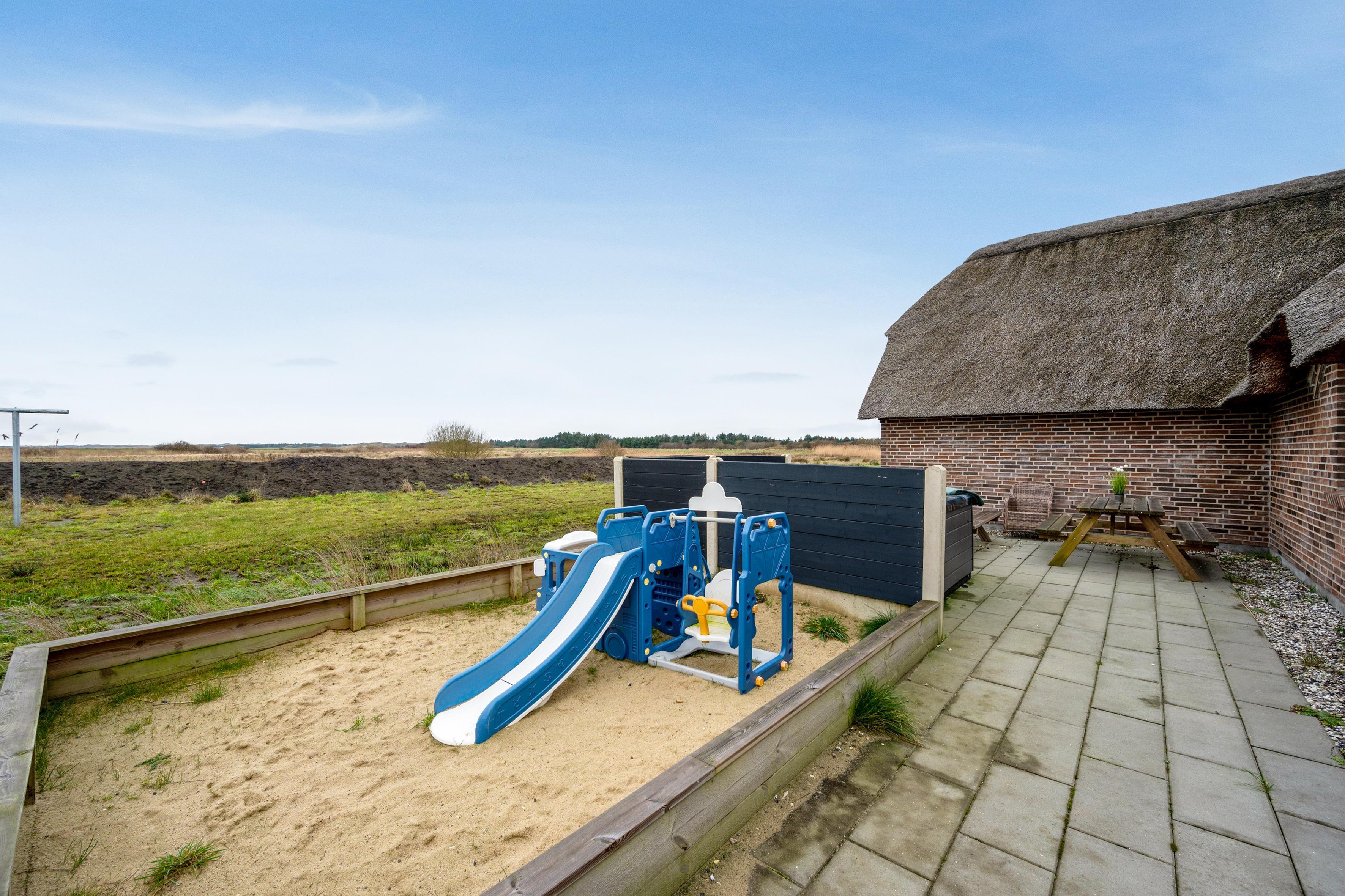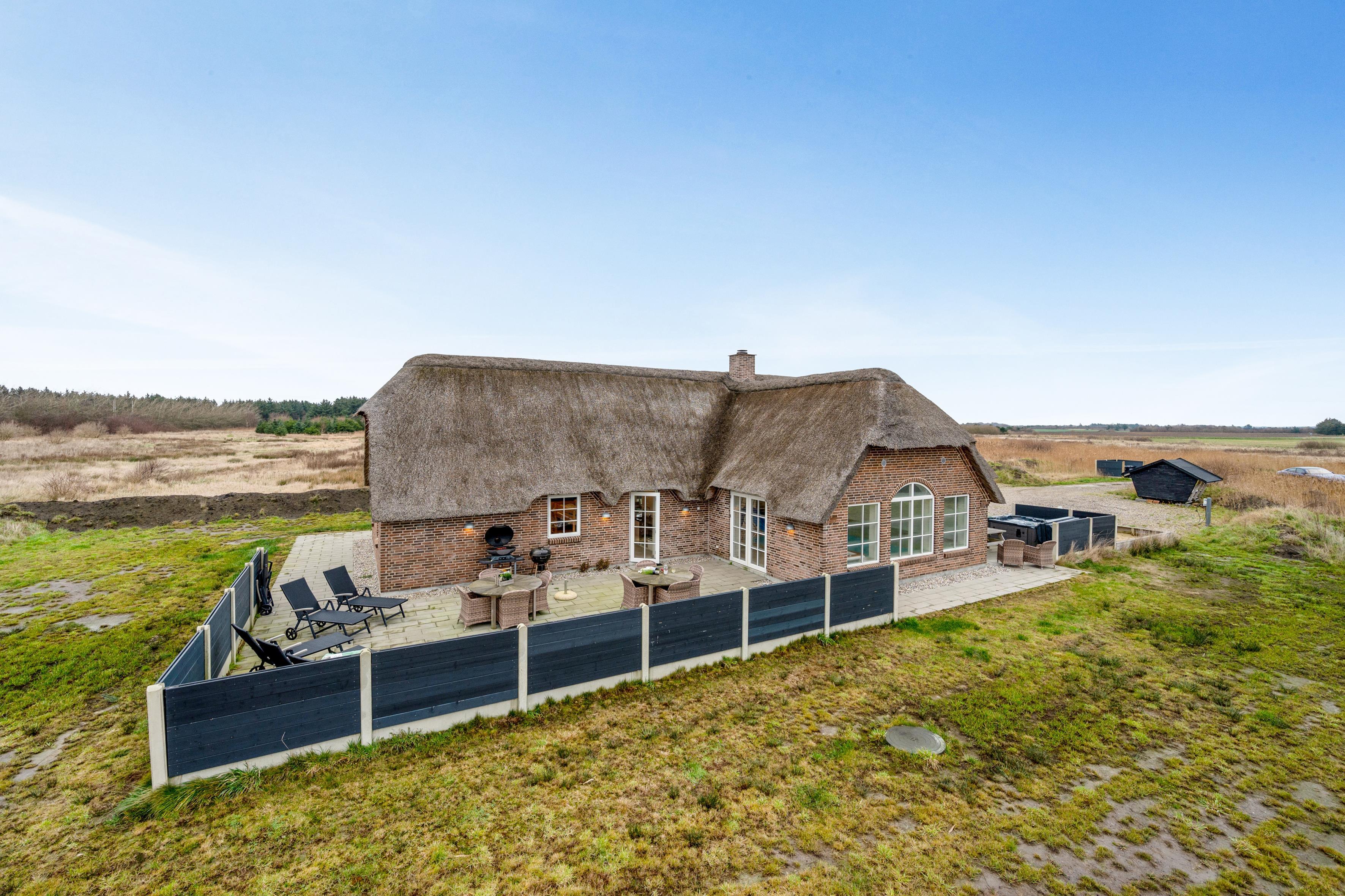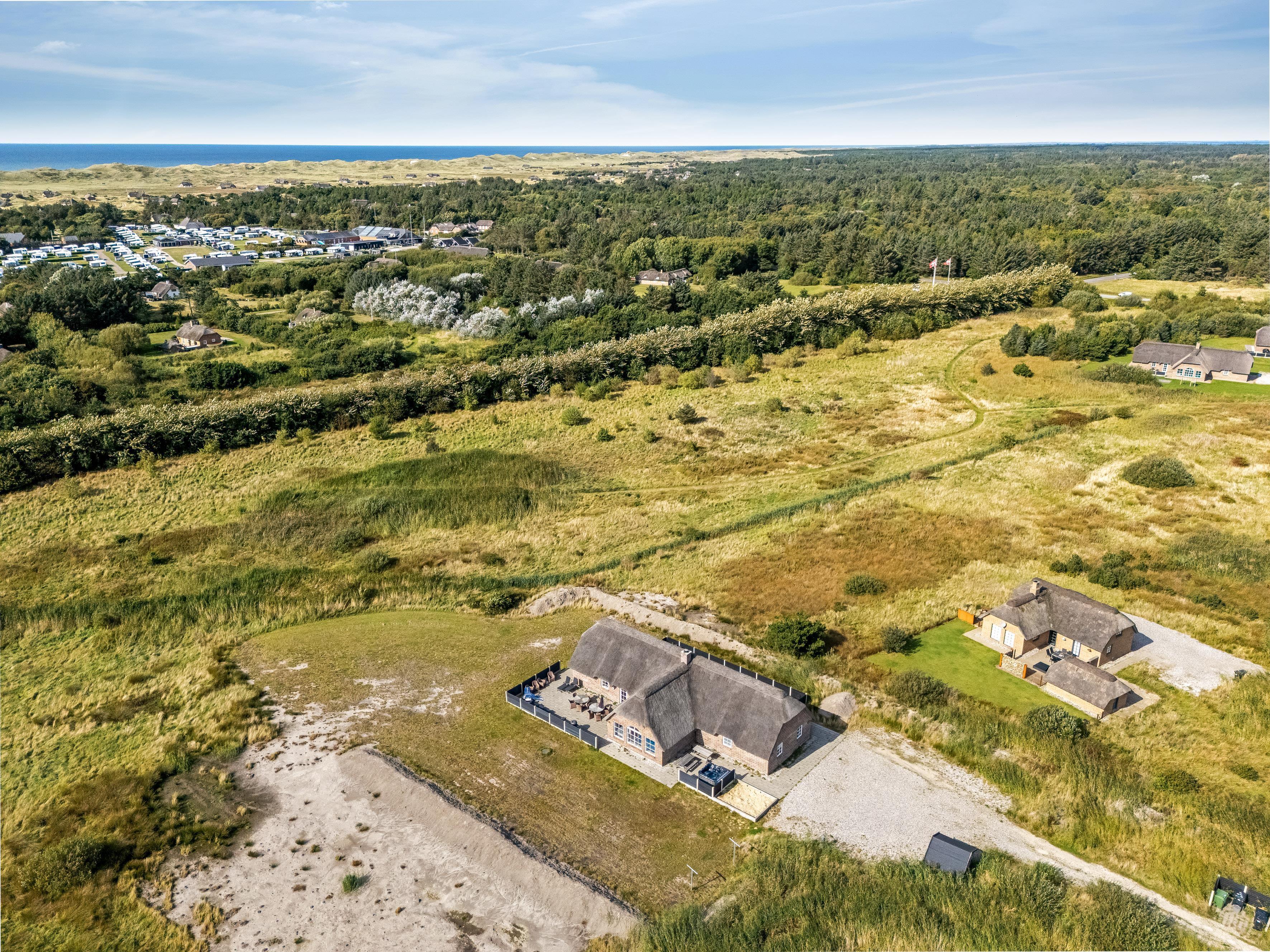 This fantastic holiday home was built in 2022 at Kornbjergvej 20 in Husby. Located just 1800 meters from the clear, inviting North Sea, this modern house offers a perfect combination of comfort and luxury. With a plot area of 3500 square meters and a house area of 210 square meters, there is plenty of space for both relaxation and fun.