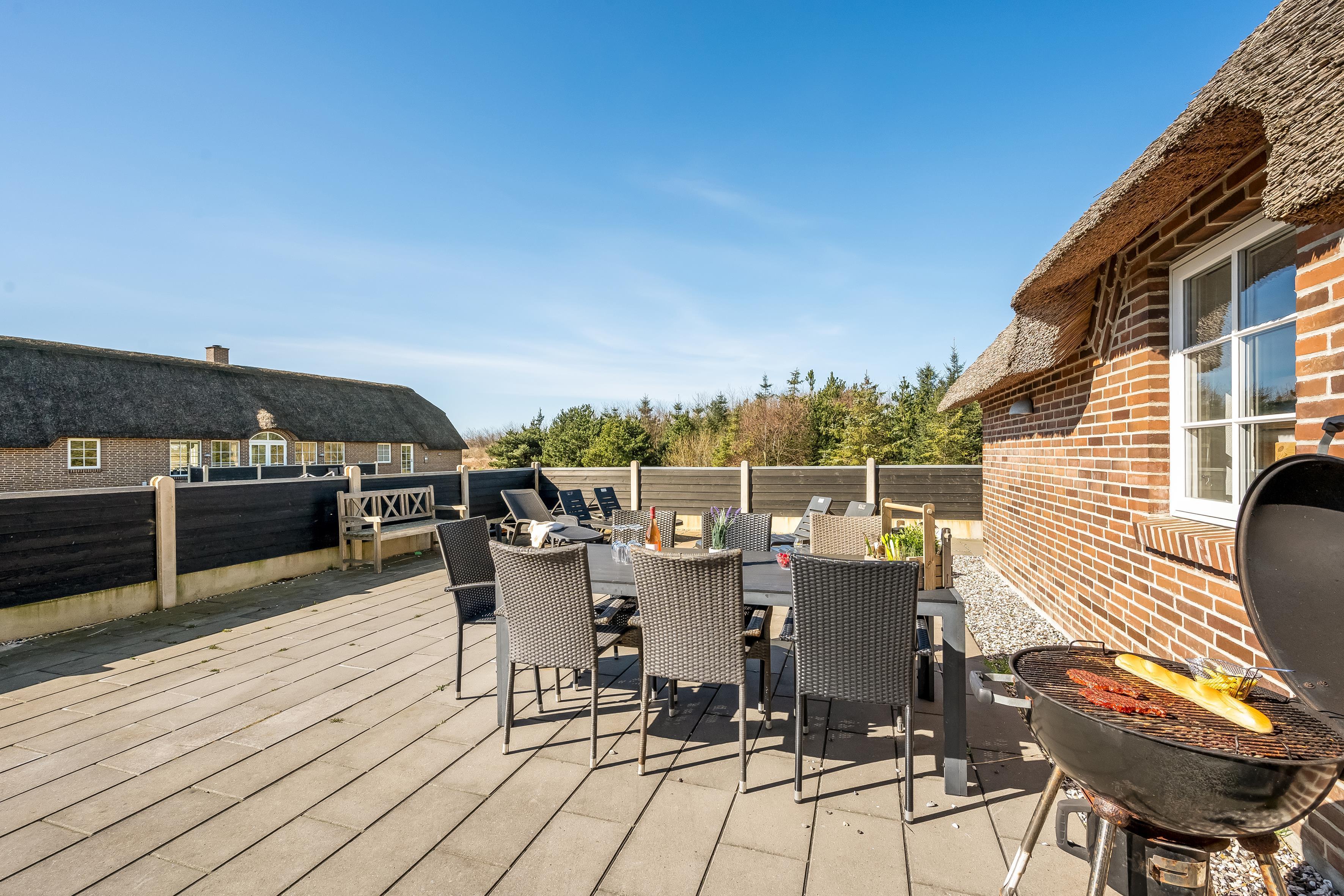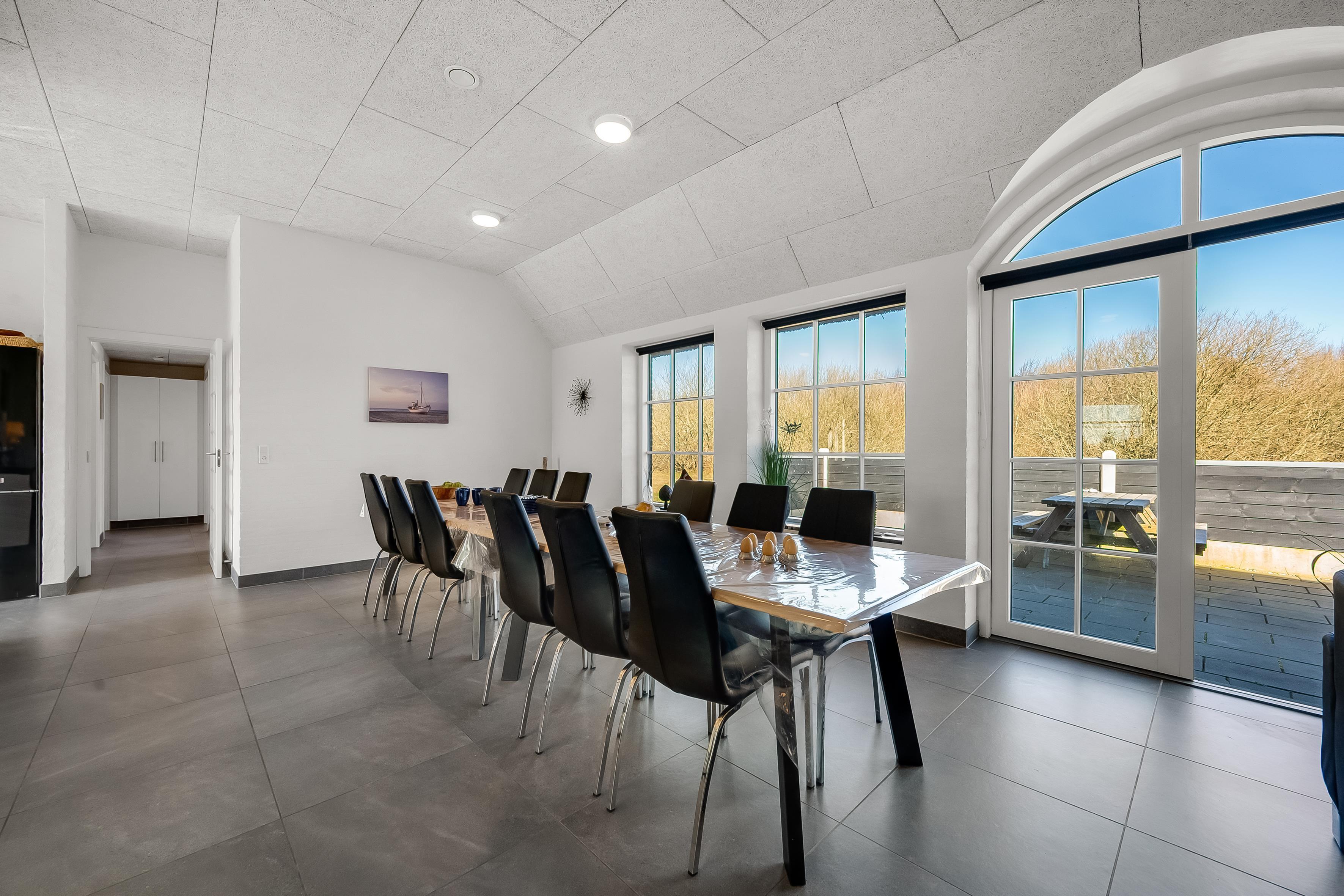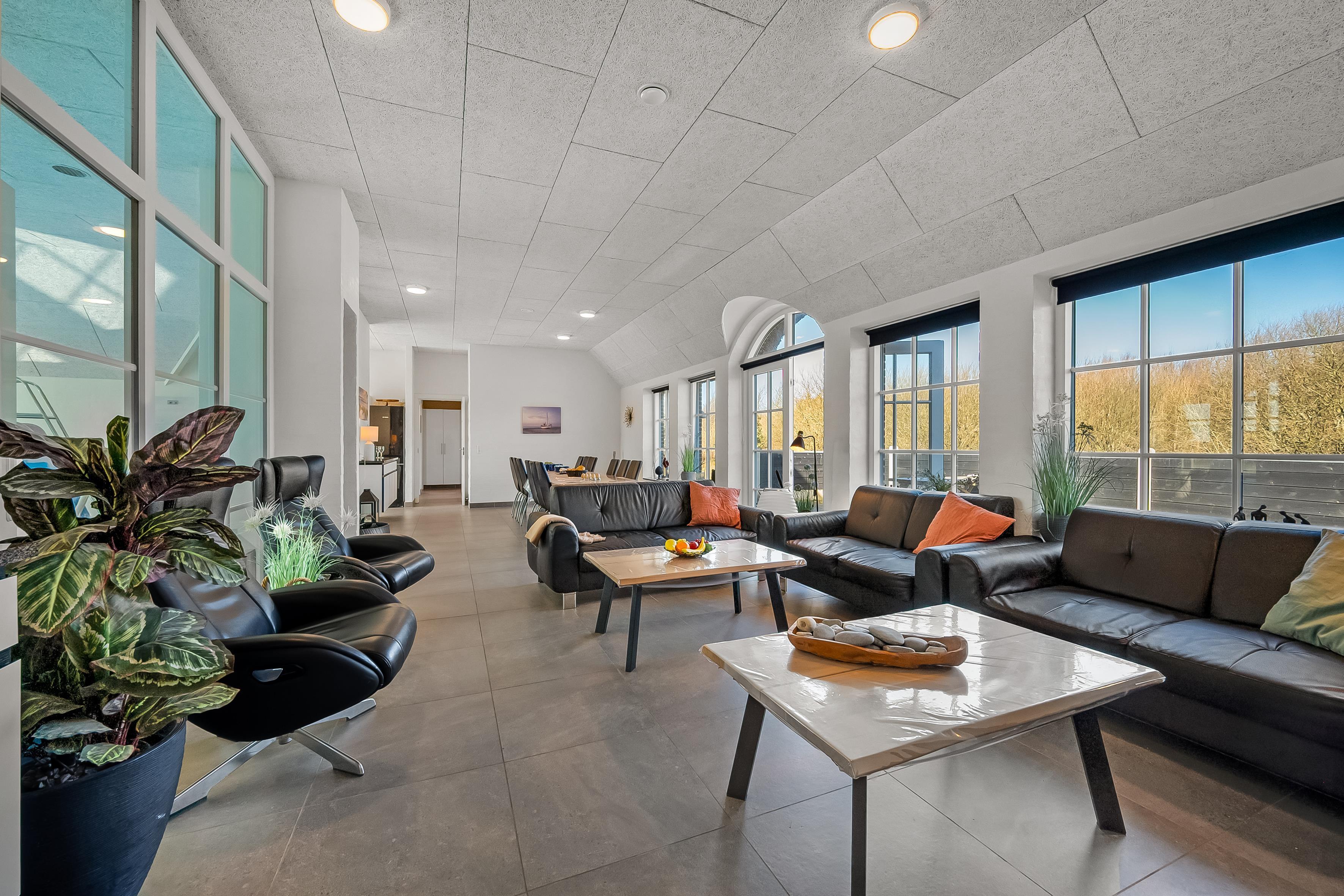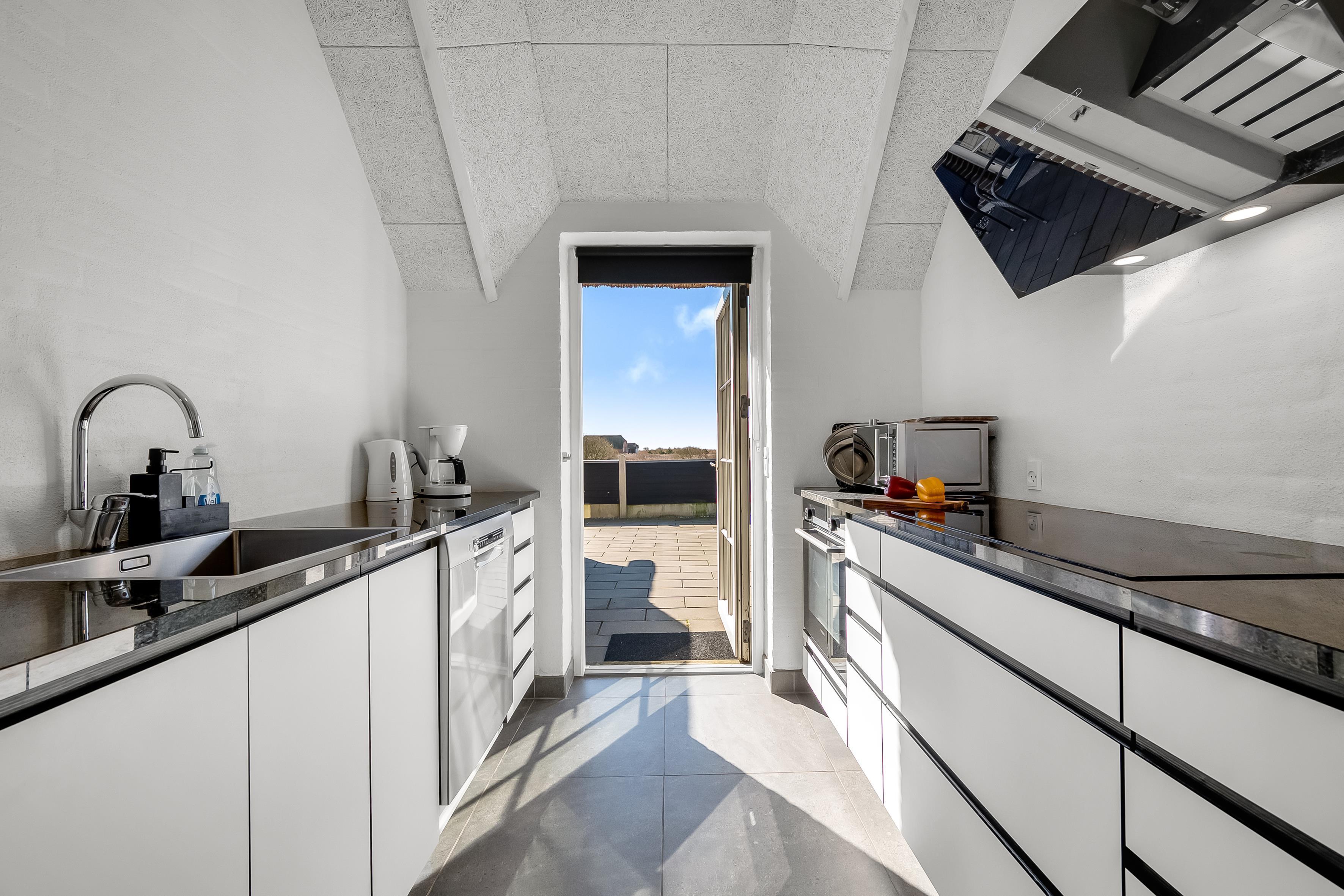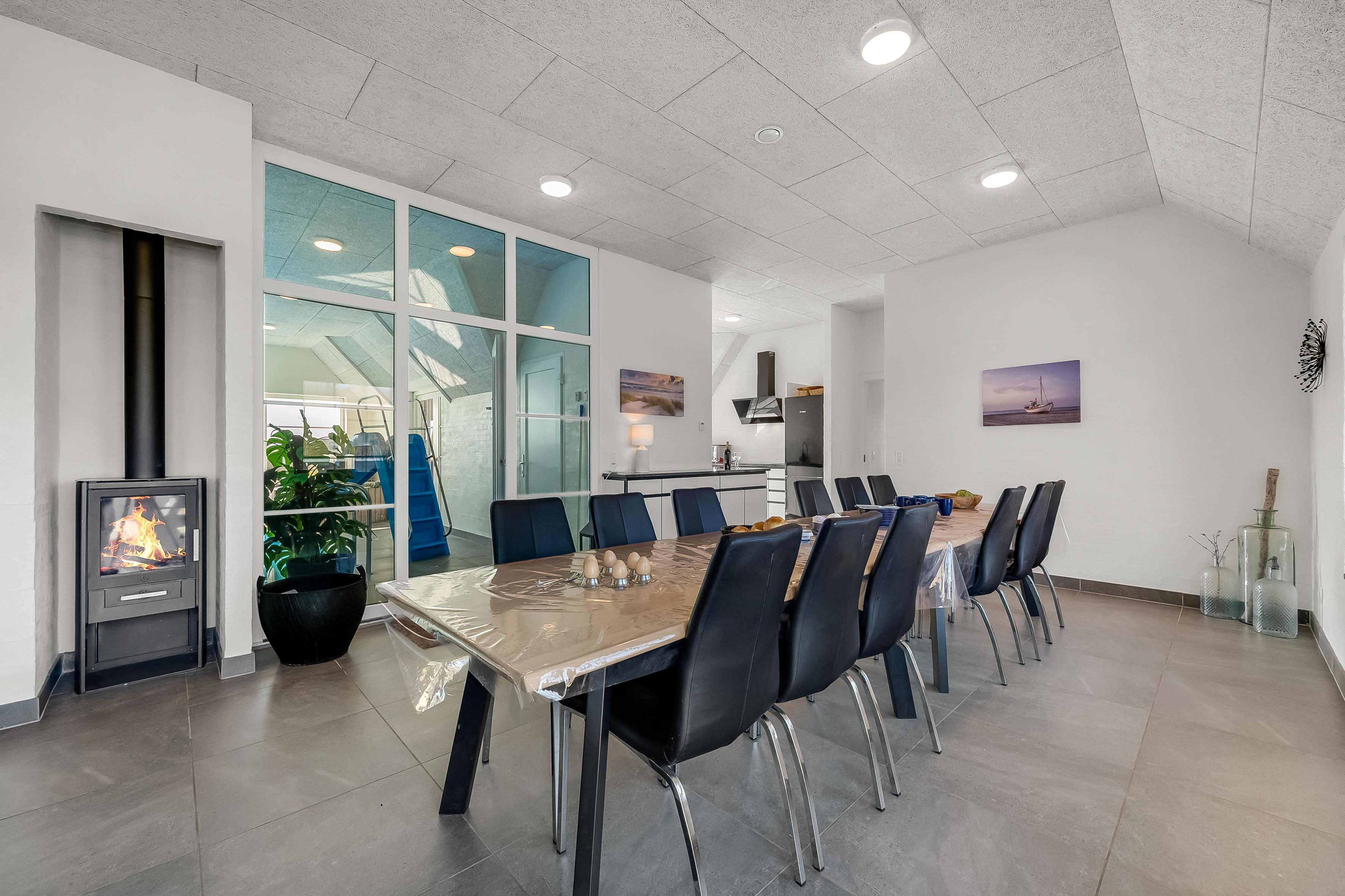 The house has a large, modern living room with a wood-burning stove, creating a cozy and warm atmosphere on cold evenings. The open plan makes it easy to entertain guests, and there is also a television with both Danish and German TV, so you can catch up on your favourite programmes. Wireless internet is available throughout the house, so you can stay online if necessary.