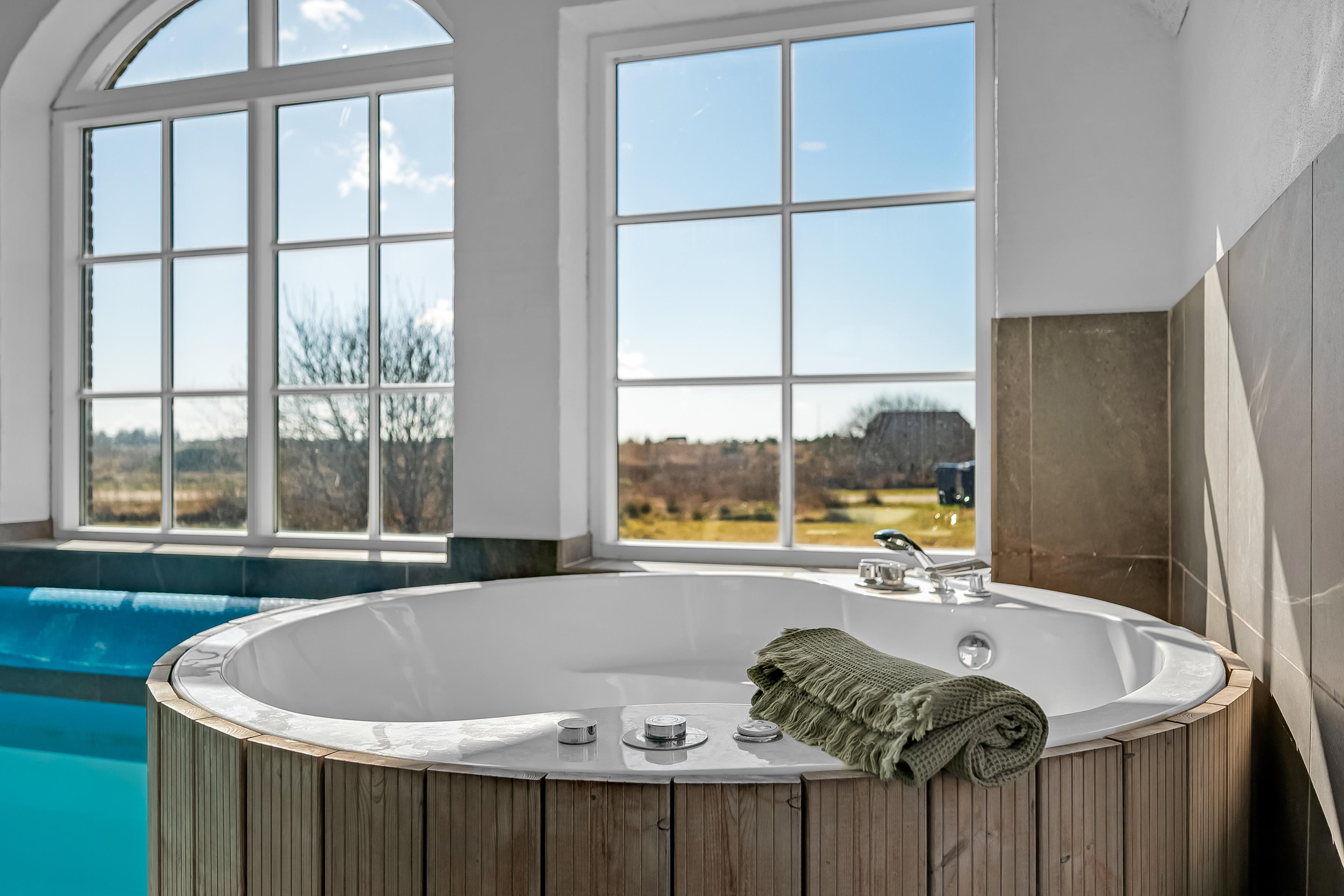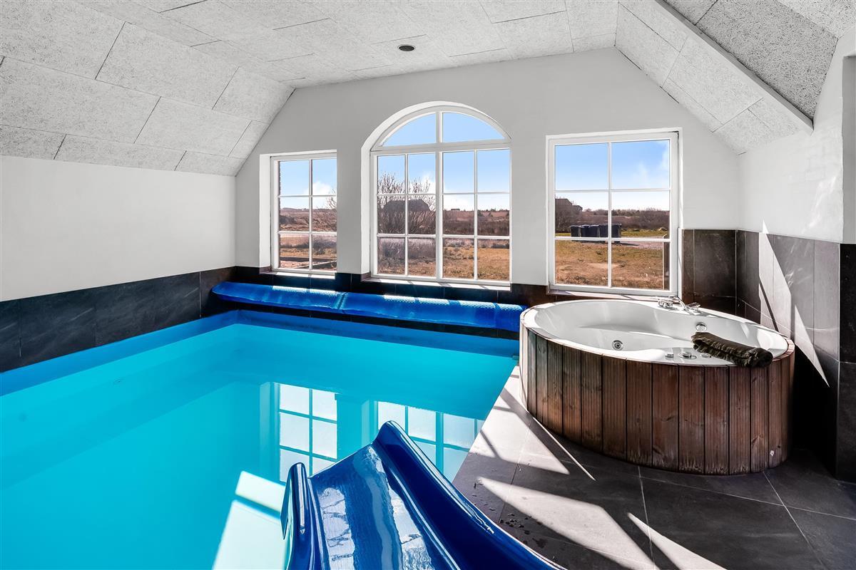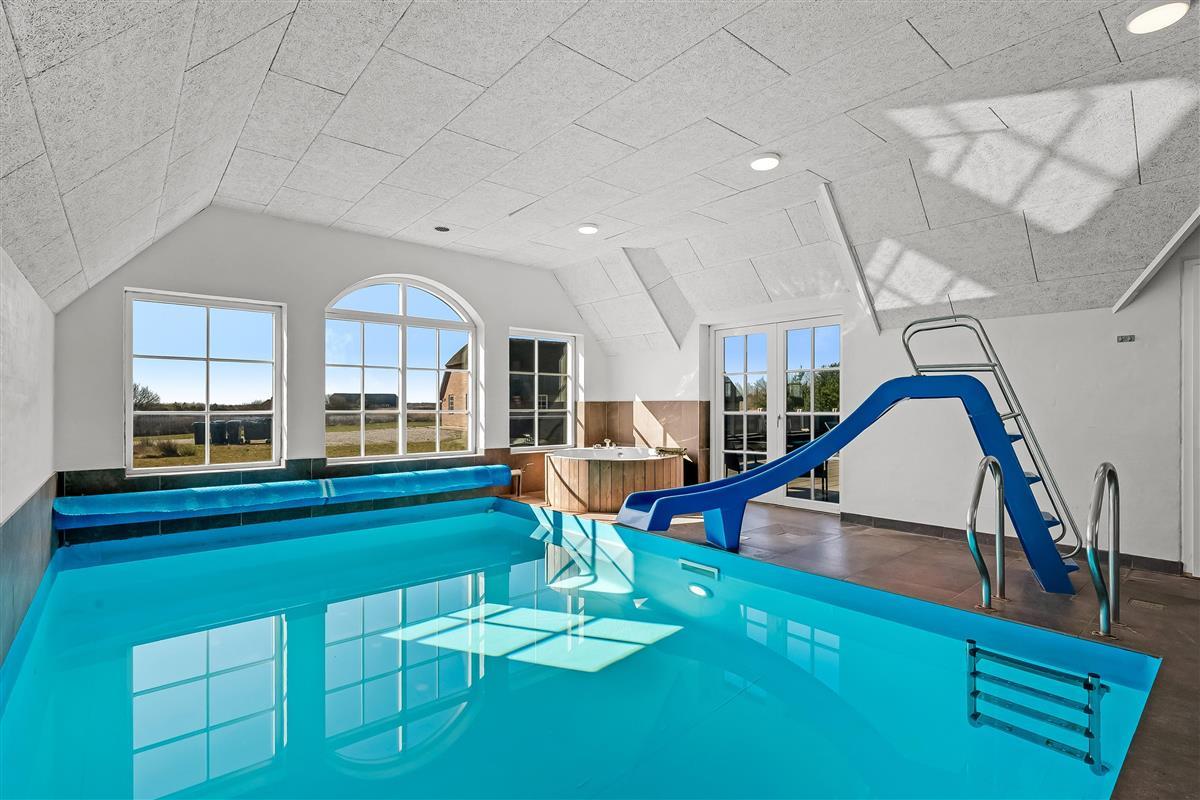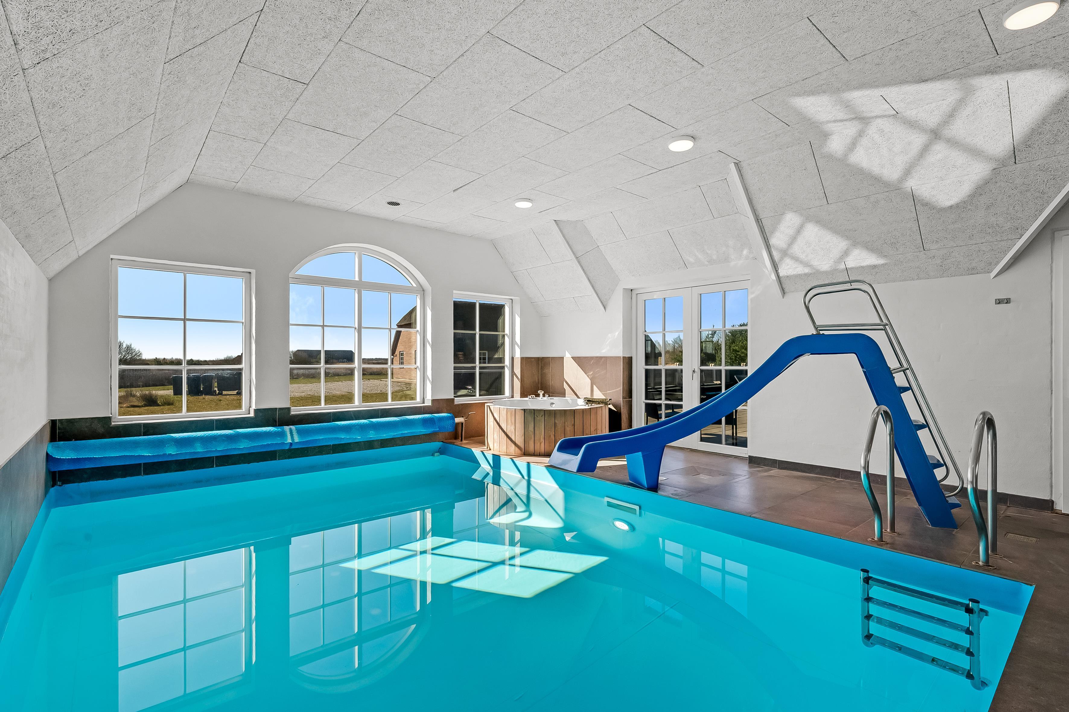 Outside you will find a lovely terrace with a barbecue where you can enjoy meals outdoors, as well as swings and a sandbox for the younger children. The large natural plot is perfect for playing and relaxing, and there is plenty of space to play ball or enjoy the sun. The indoor pool is the ideal place to cool off on hot days, and the indoor hot tub also provides opportunity to relax regardless of the weather.