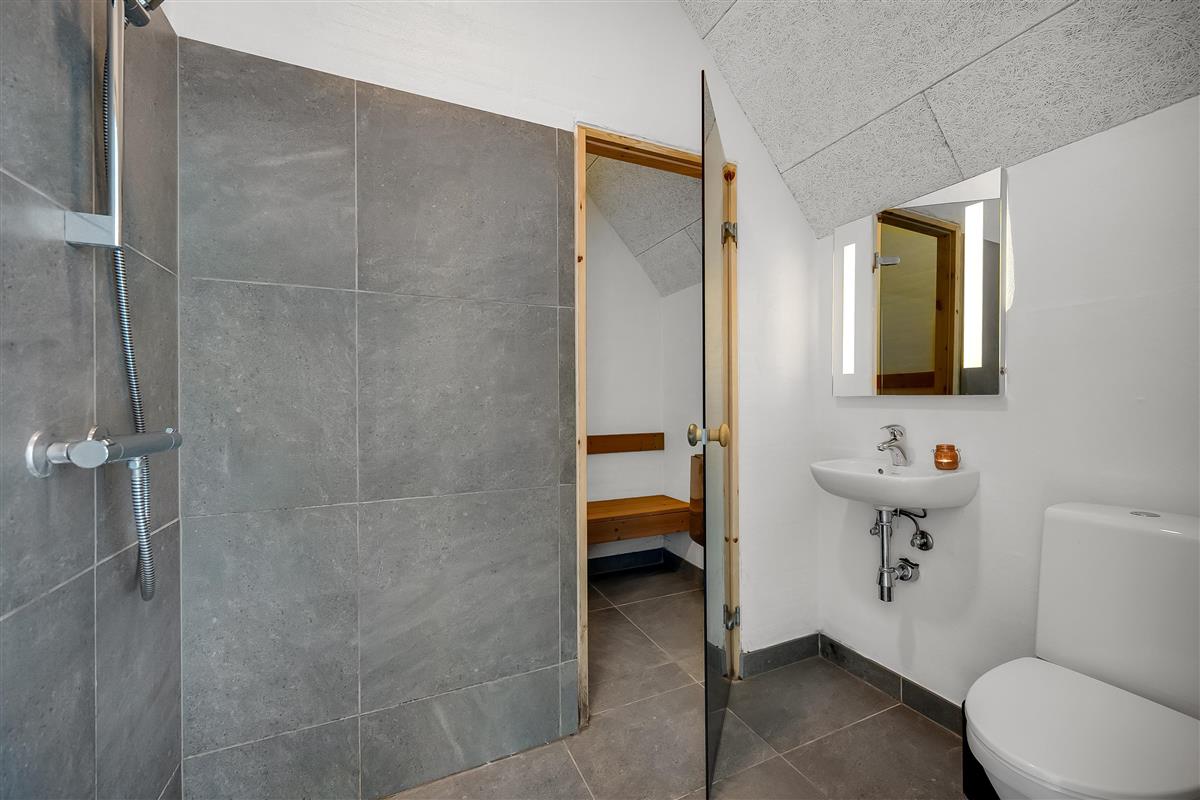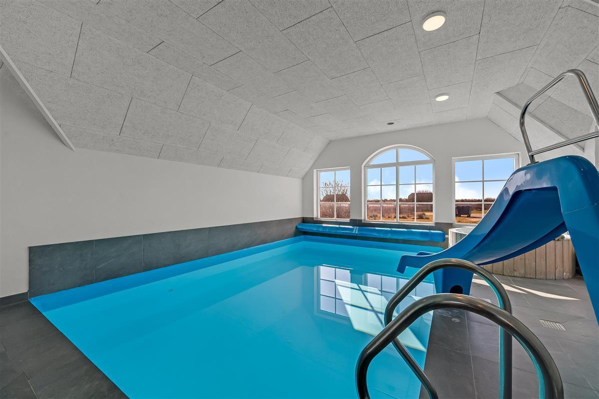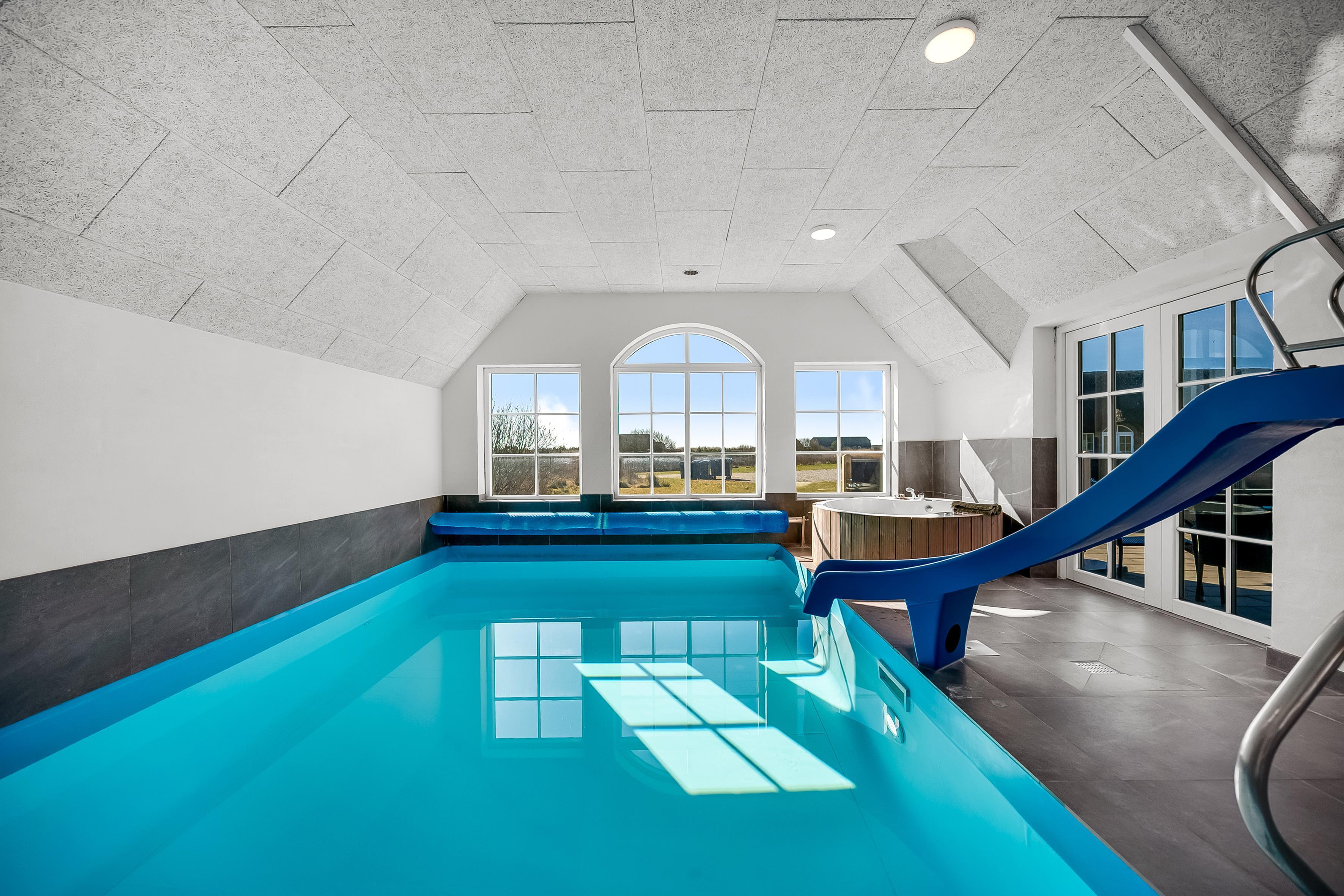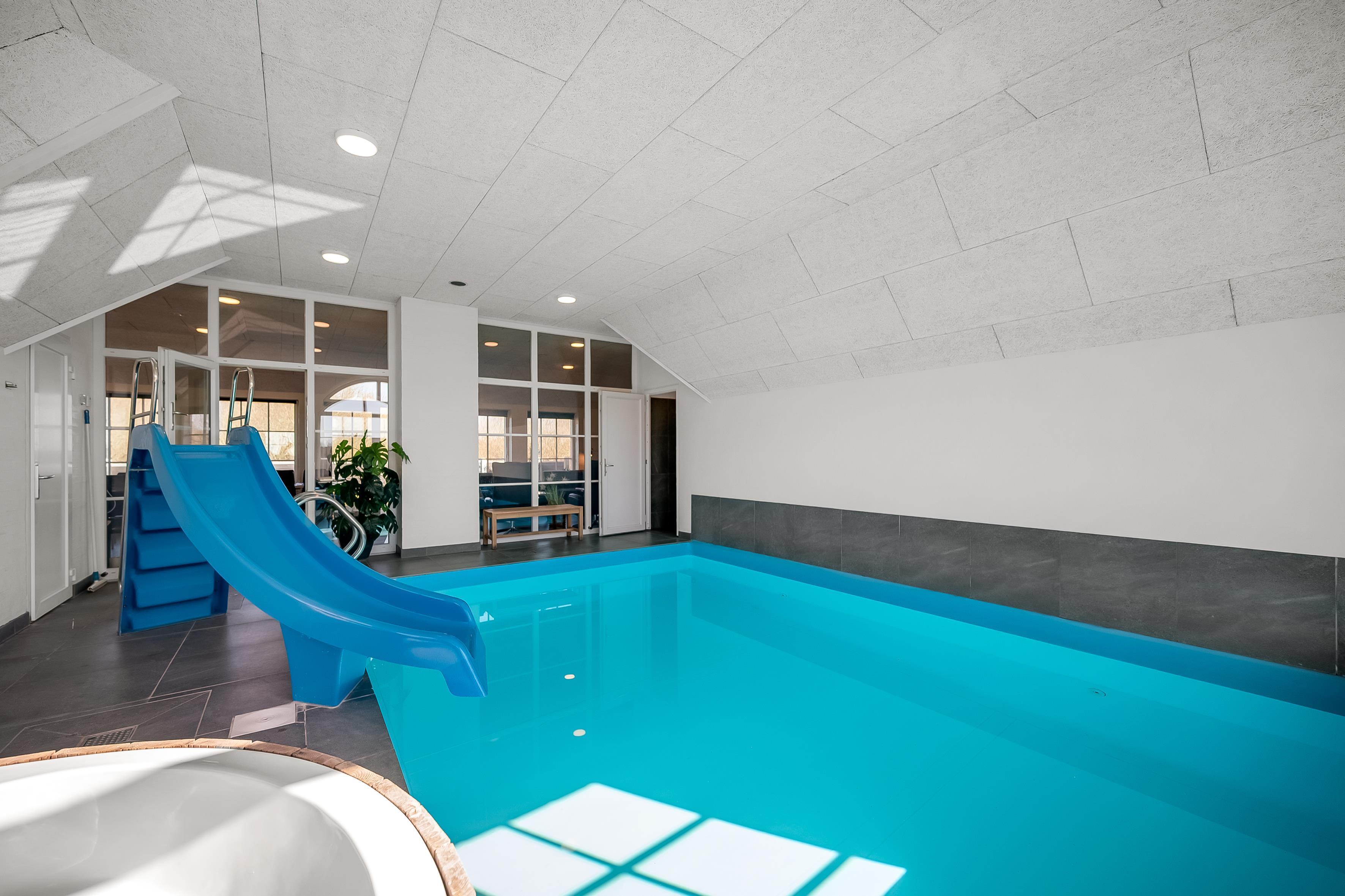 The facilities in the house include 3 bathrooms, all with showers, and underfloor heating, ensuring a comfortable atmosphere, even on cold days. There is also an indoor spa that can accommodate 2 people, as well as a sauna, where you can relax and pamper yourself after a long day of activities. For extra fun, there is also a water slide in the pool, which both children and adults will love.