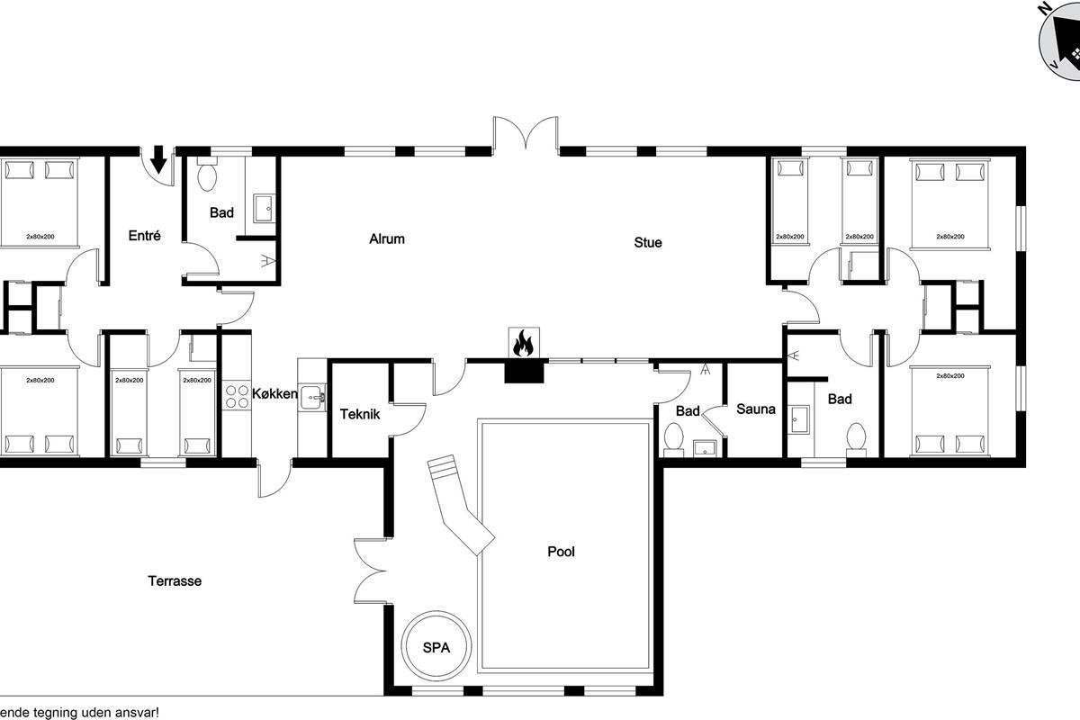 This lovely pool house at Kornbjergvej 4 in Husby, is perfect for large families or groups of up to 16 people. The house was newly built in 2022 and offers modern facilities and a comfortable stay in scenic surroundings. With a spacious plot of 3548 square meters, you can enjoy the fresh air and the beautiful nature around you.