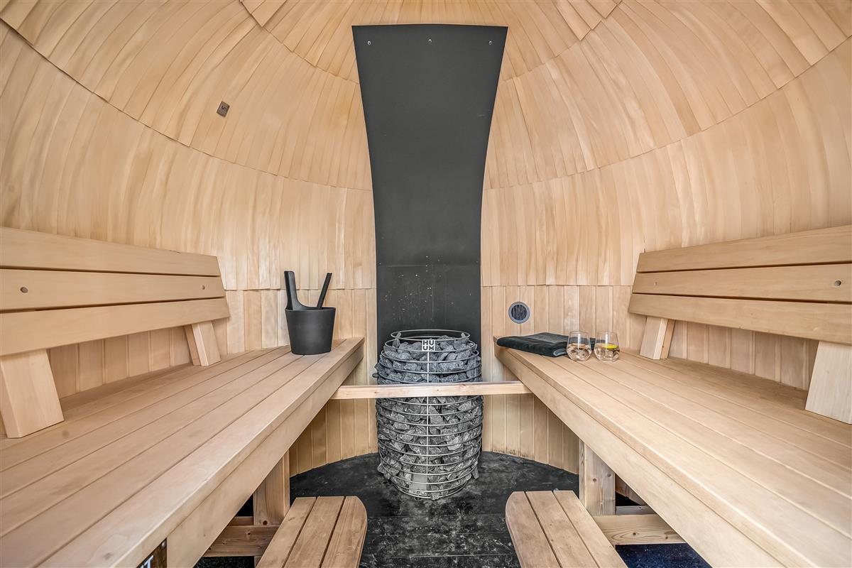 For those looking for relaxation, there is both an outdoor and indoor hot tub, both with space for up to 7 people. Pamper yourself with a relaxing session in the infrared sauna, or relax in the house's outdoor sauna. You can also enjoy a cozy evening by the house's wood-pellet stove (pellets must be brought), which creates a warm and inviting atmosphere.