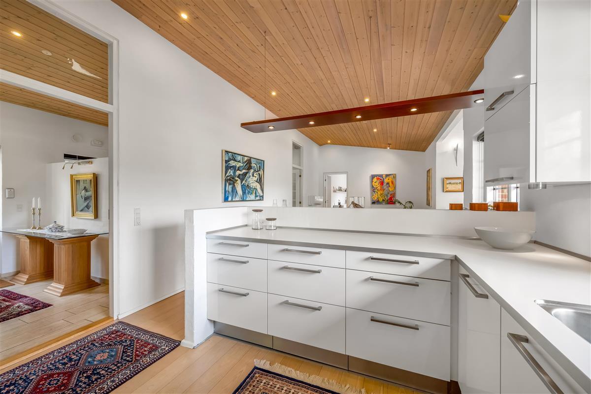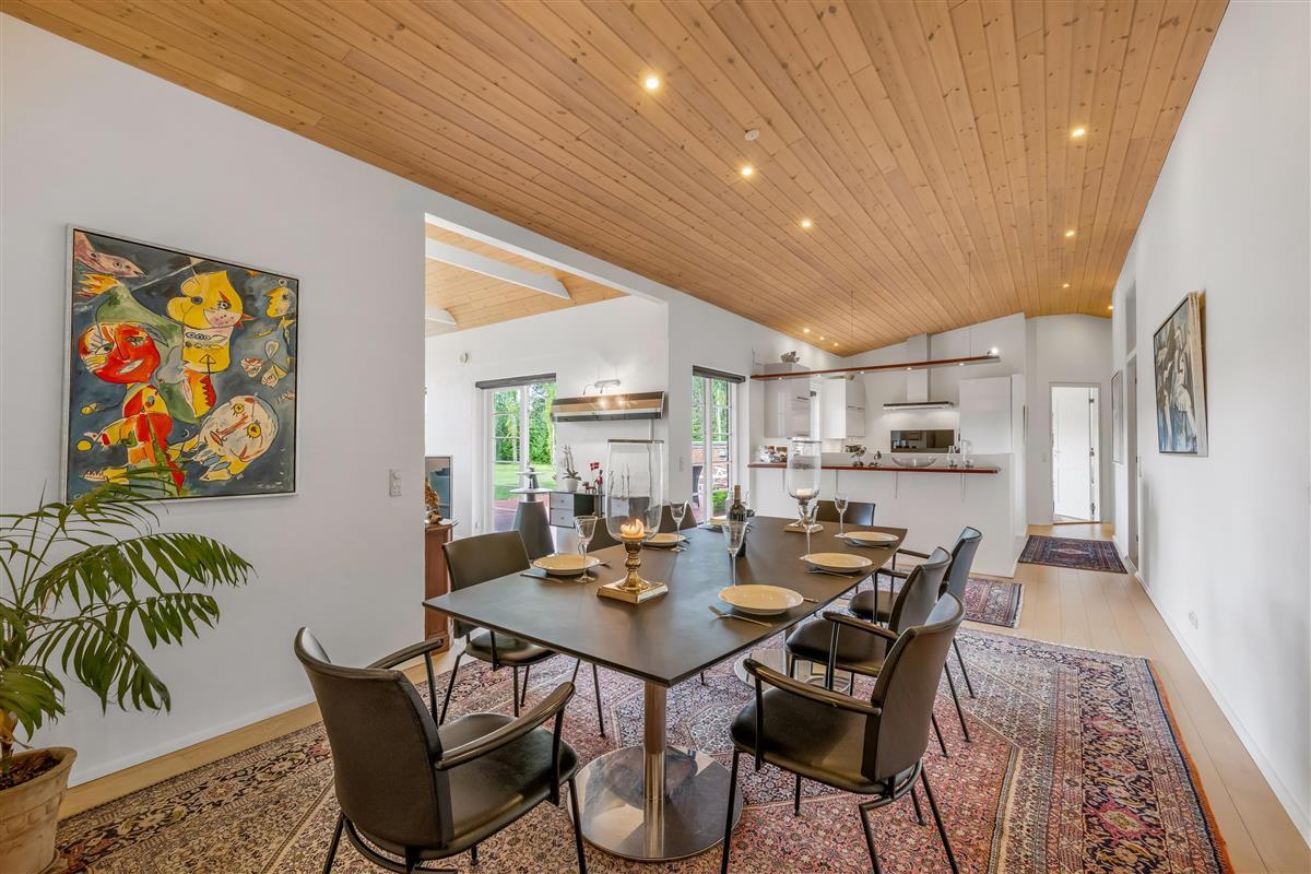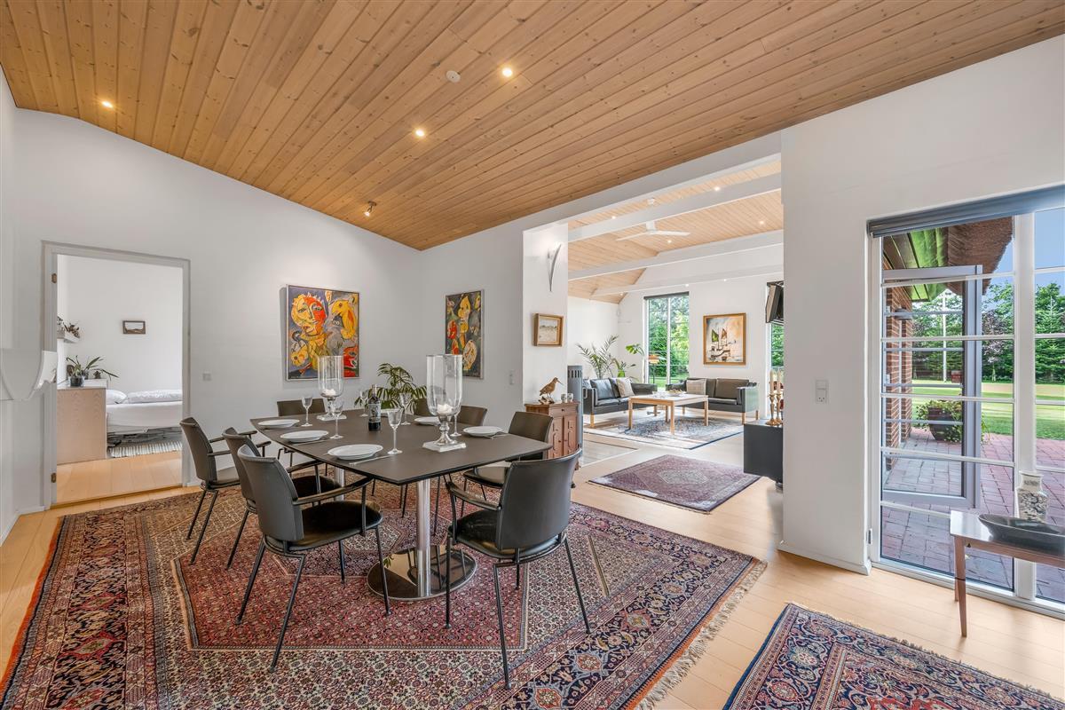 The kitchen is well equipped with modern appliances, including a ceramic hob, oven, microwave, dishwasher, fridge with freezer, as well as a tumble dryer and washing machine, making it easy to prepare meals for the family. The open plan between the kitchen and the living room, ensures that the one who cooks can also enjoy the company of the other guests.