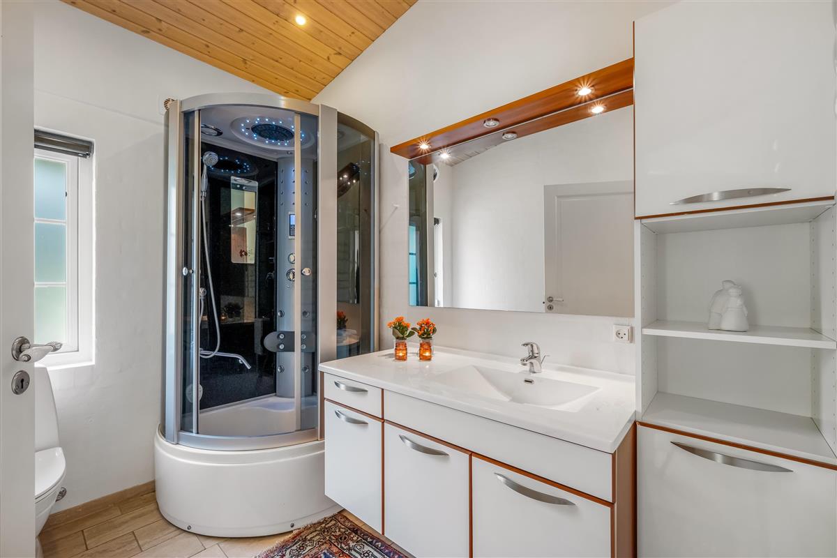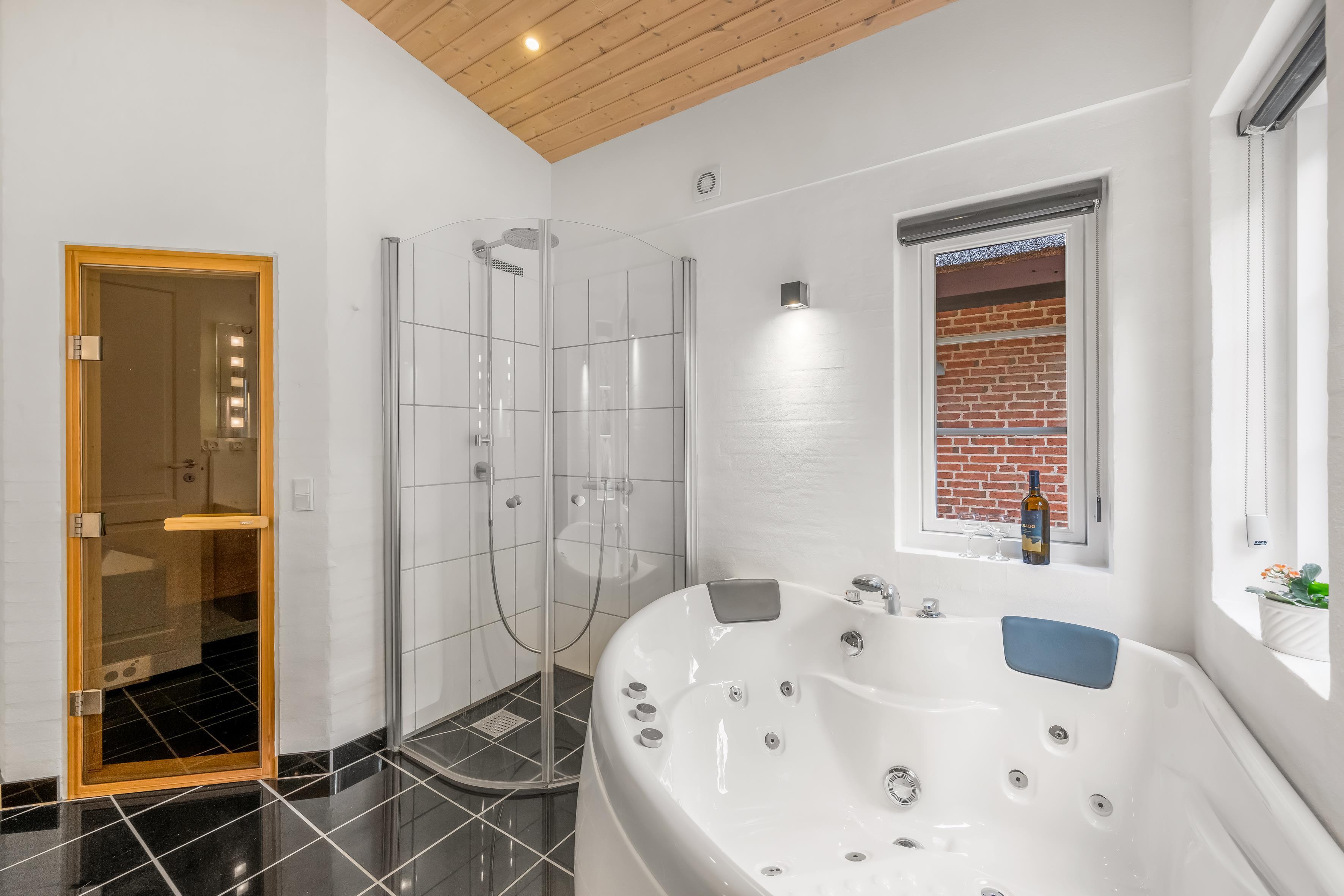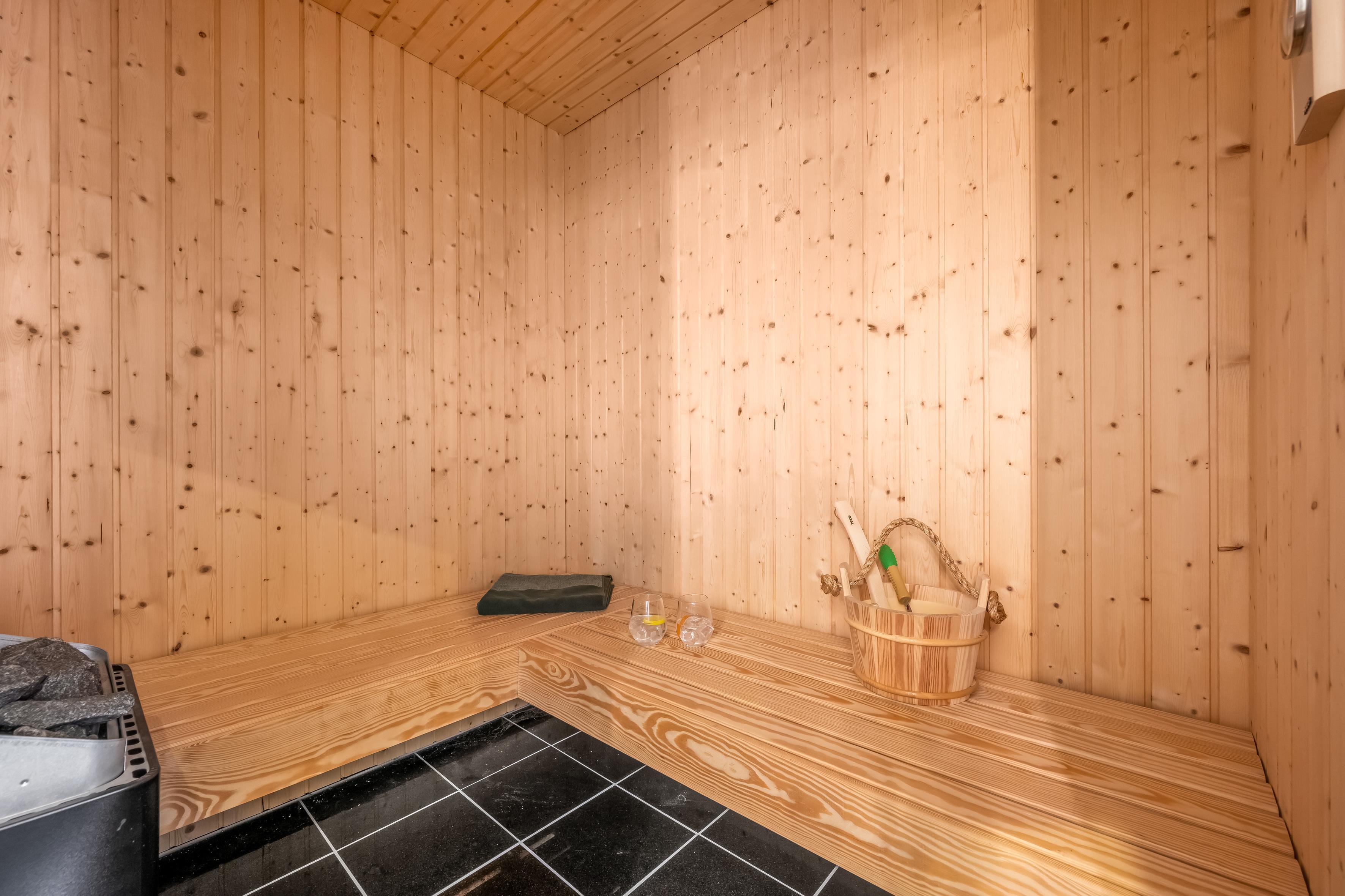 Outside you will find a lovely terrace with barbecue, where you can enjoy long summer evenings and delicious barbecue dishes under the stars. There is also opportunity to take a relaxing bath in the house's indoor spa, which can accommodate two people, as well as a sauna, where you can pamper yourself after a long day.