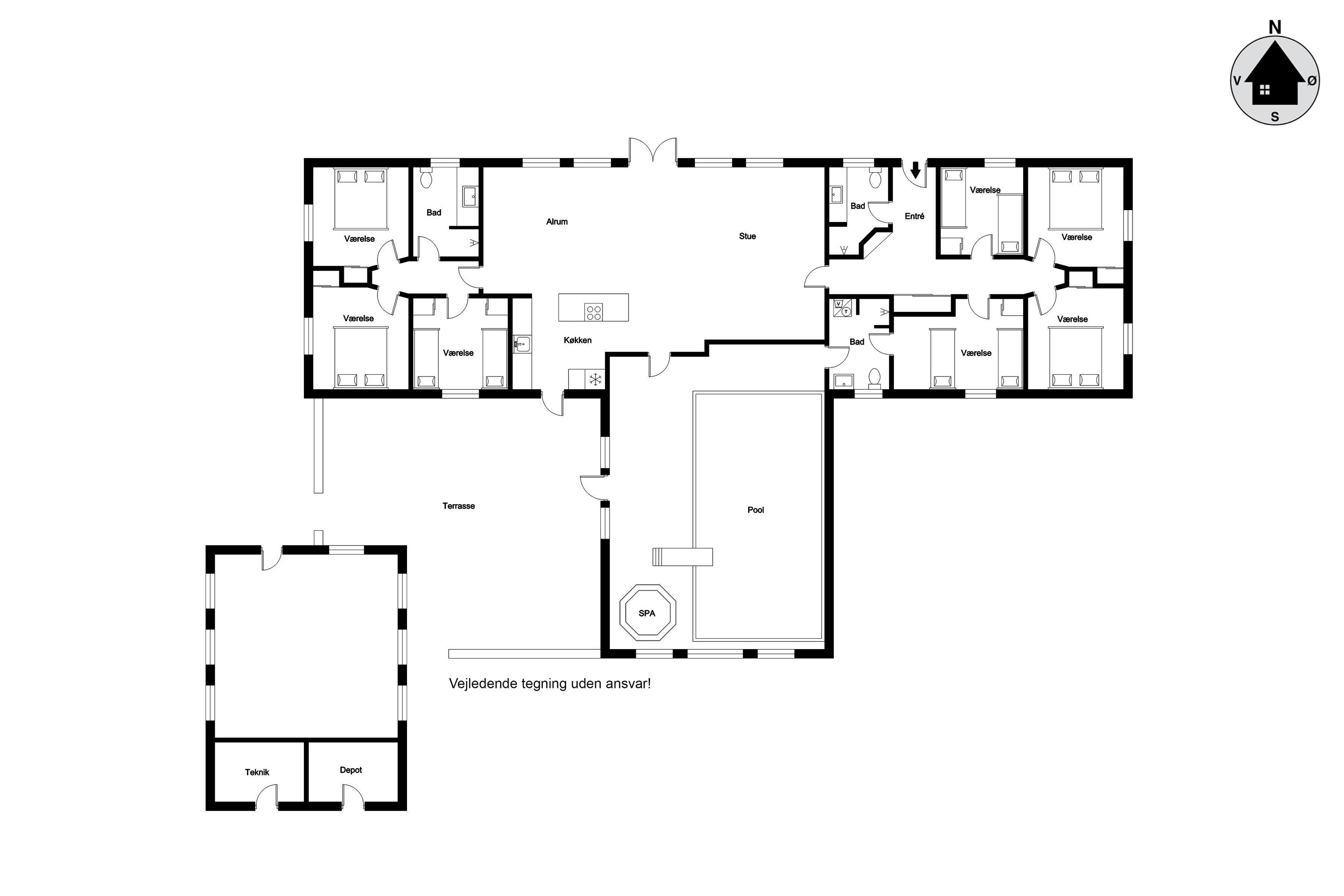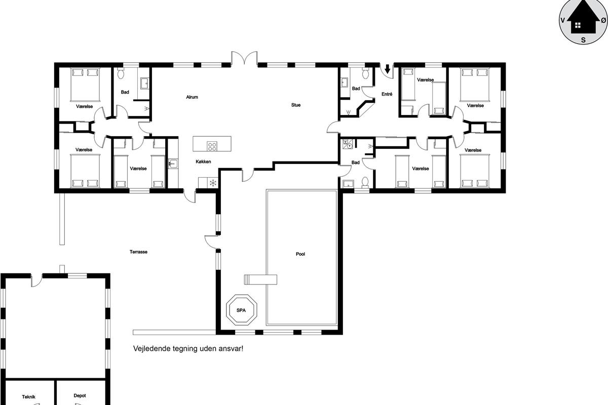 This lovely pool house at Øbyvej 25 in Husby, built in 2011, offers a perfect combination of modern comfort and scenic surroundings. Located only 2000 meters from the North Sea, this house is ideal for families and groups who want to enjoy an unforgettable holiday by the coast. With a house area of 300 square meters and a large plot of 3500 square meters, there is plenty of space for both play and relaxation.