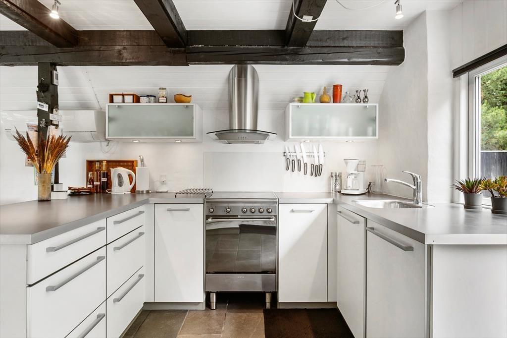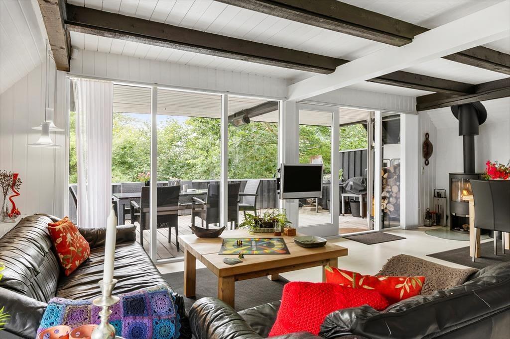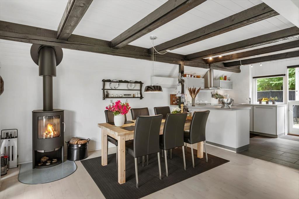 Sobald du das Haus betrittst, stellt sich das Urlaubsgefühl ein. Das Ferienhaus ist hell und einladend, mit einer warmen und persönlichen Atmosphäre, die dich sofort zur Entspannung einlädt. Das Wohnzimmer bildet mit seiner offenen Verbindung zur Küche das Herzstück des Hauses, und ein Holzofen steht bereit, um dir an kühlen Abenden Wärme und Gemütlichkeit zu schenken. Man kann sich leicht vorstellen, wie ihr euch hier nach einem langen Tag am Fjord versammelt – mit dem Duft von Kaffee in der Nase, einem Kartenspiel auf dem Tisch und dem Knistern des Feuers im Hintergrund. Im Obergeschoss wartet ein kleiner Balkon auf dich, auf dem du den Morgen mit Blick in den Garten und Vogelgezwitscher in den Baumwipfeln beginnen kannst. Das gesamte Haus ist schlicht und geschmackvoll eingerichtet, sodass du dich schnell wie zu Hause fühlst und deinen Urlaub ungestört genießen kannst.