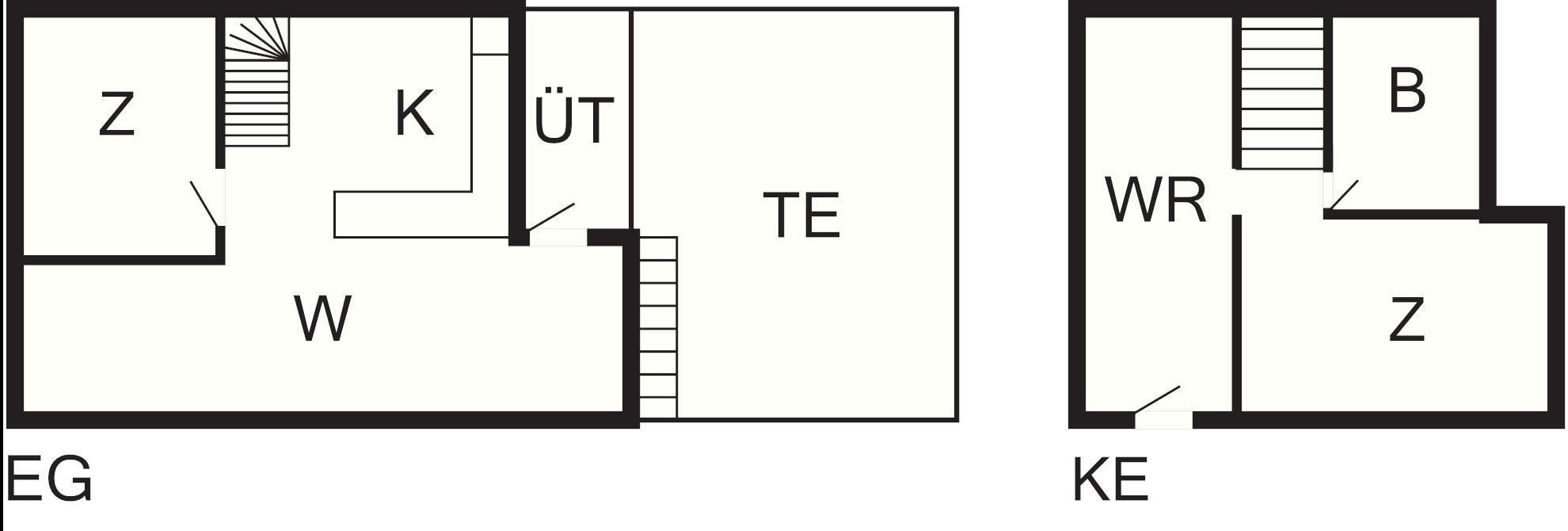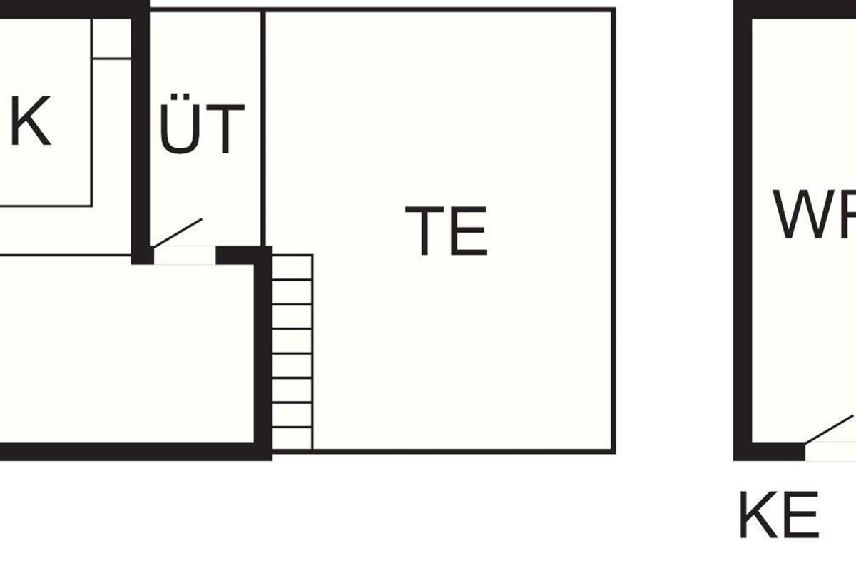 Das Haus erstreckt sich über zwei Ebenen. Das Untergeschoss verfügt über eine Eingangstür (auf Straßenniveau) mit Stauraum, ein Schlafzimmer mit zwei Einzelbetten und ein neueres Badezimmer mit Dusche und Fußbodenheizung.