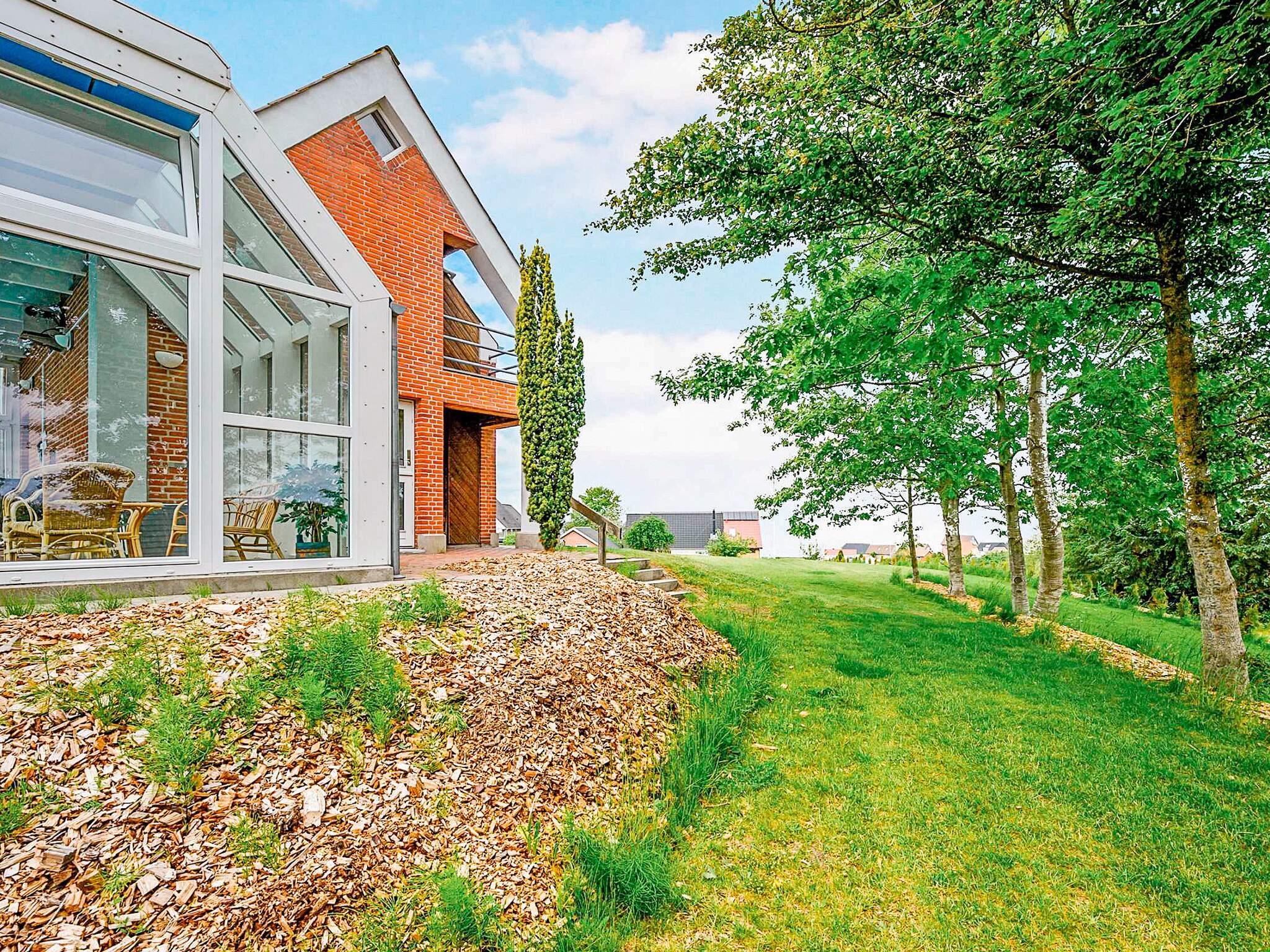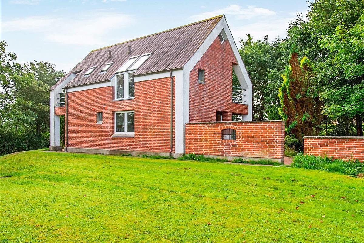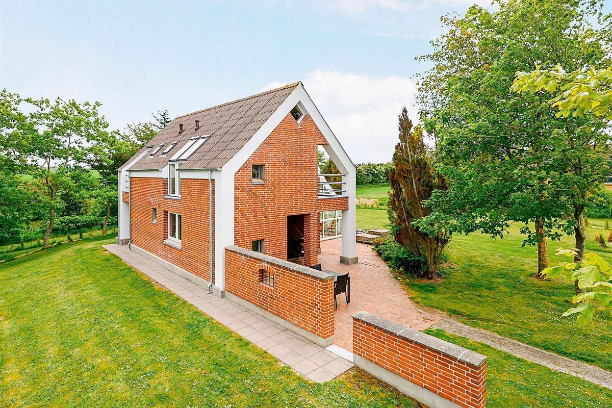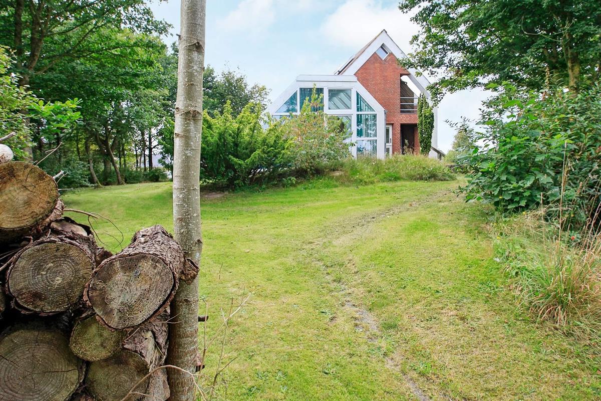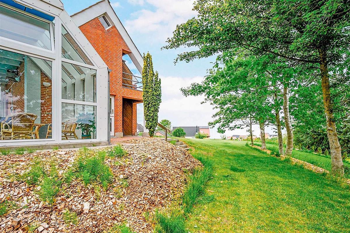 Gut gelegenes, von Architektenhand individuell entworfenes Wohnhaus mit zwei Wohnebenen, inklusive Swimmingpool und Panoramaaussicht zum Limfjord und zur Insel Livø.