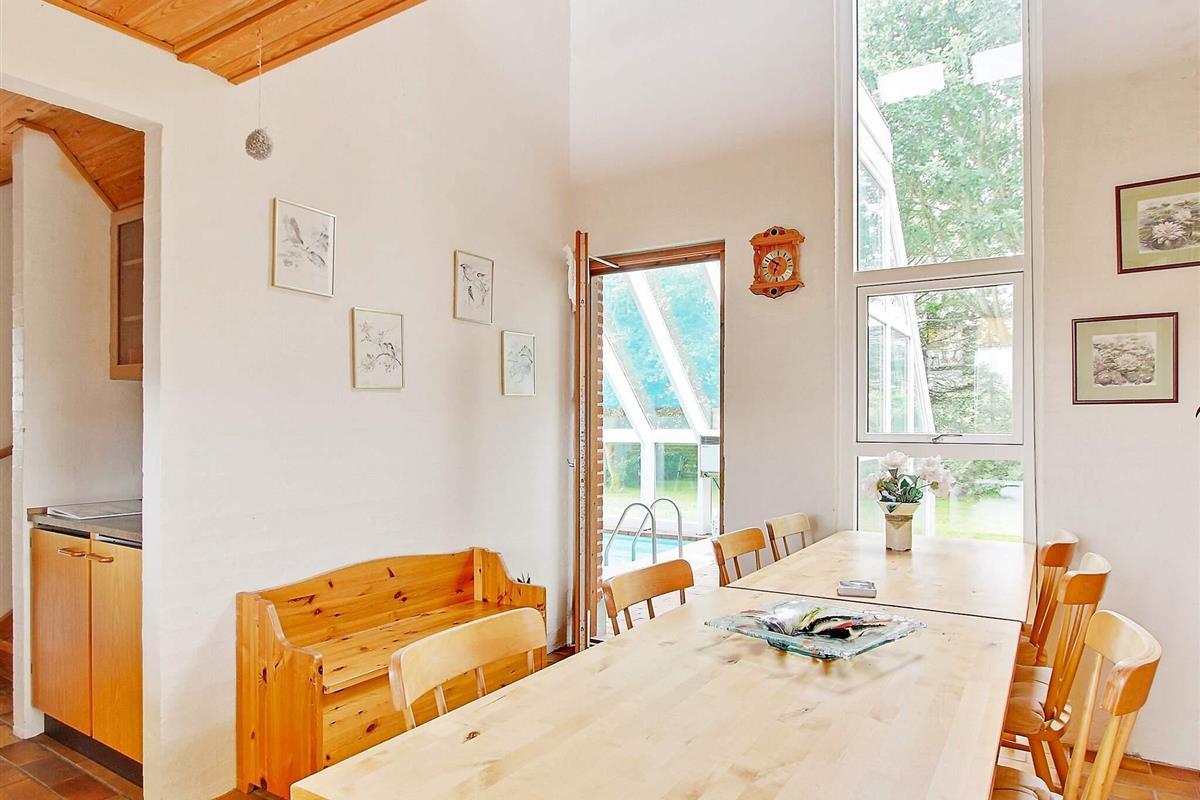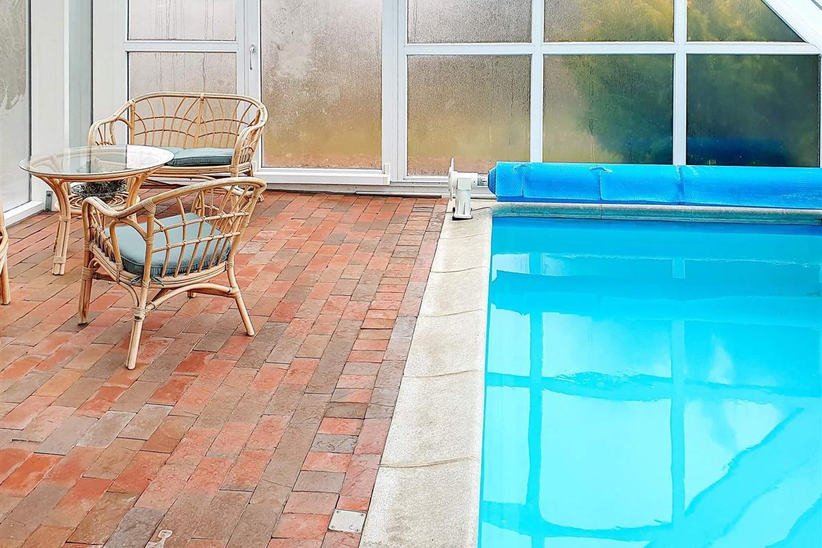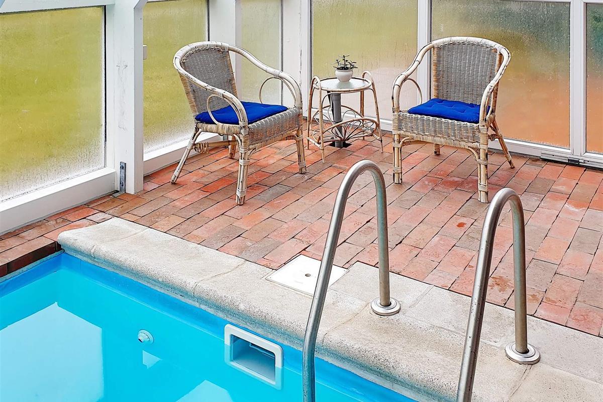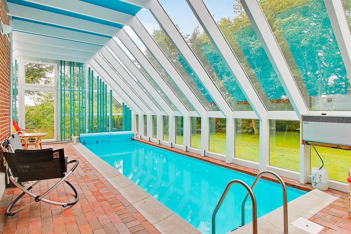 Das Ferienhaus bietet einen herrlichen Poolbereich mit 18 m2 großem Pool für den Badespaß mit der Familie. Der Bereich verfügt über große Glaspartien, die viel Tages- und Sonnenlicht liefern. Das Haus ist sowohl mit Solarenergie als auch mit Fernwärme klimafreundlich ausgestattet und gehört mit seinem niedrigen Verbrauch für Haus und Swimmingpool sicherlich zu den energieeffizientesten der Gegend.