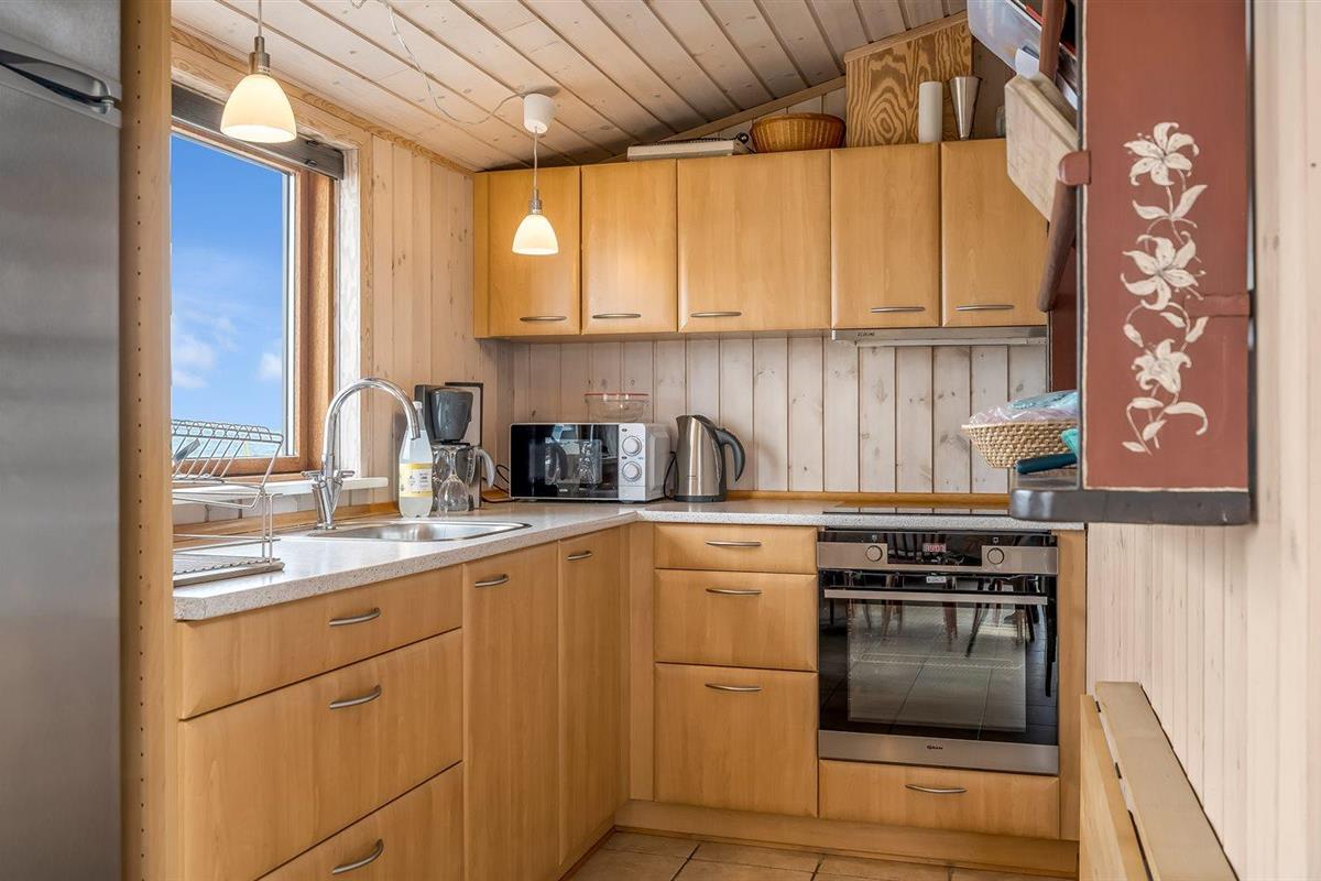 De vakantiewoning is gelegen op een 3800 m² groot natuural grond. Afstand tot de fjord 5 m. Dichtstbijzijnde winkel 1000 m. Bij de vakantiewoning hoort terras. Parkeerplaats bij het huis.