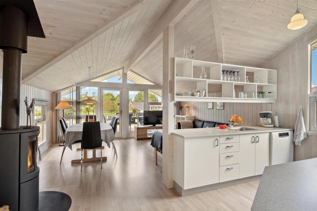 Welkom in dit uitnodigende vakantiehuis, dat ideale omstandigheden biedt voor een ontspannen vakantie in Denemarken met het hele gezin. De lichte kamers, die modern en vriendelijk zijn ingericht met aantrekkelijk meubilair, stralen een klassieke zomerhuis charme uit. In de woonkamer met eethoek en open keuken kun je de dag beginnen met een ontspannen ontbijt of gezellige avonden samen doorbrengen; de houtkachel zorgt voor een bijzonder gezellige sfeer.