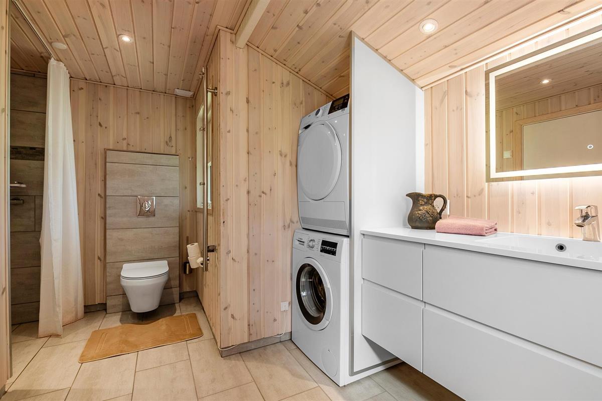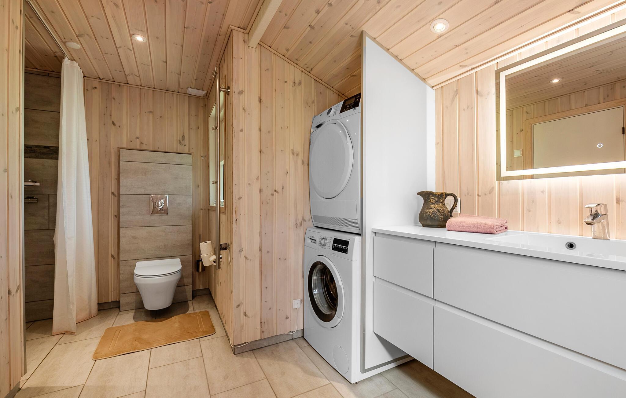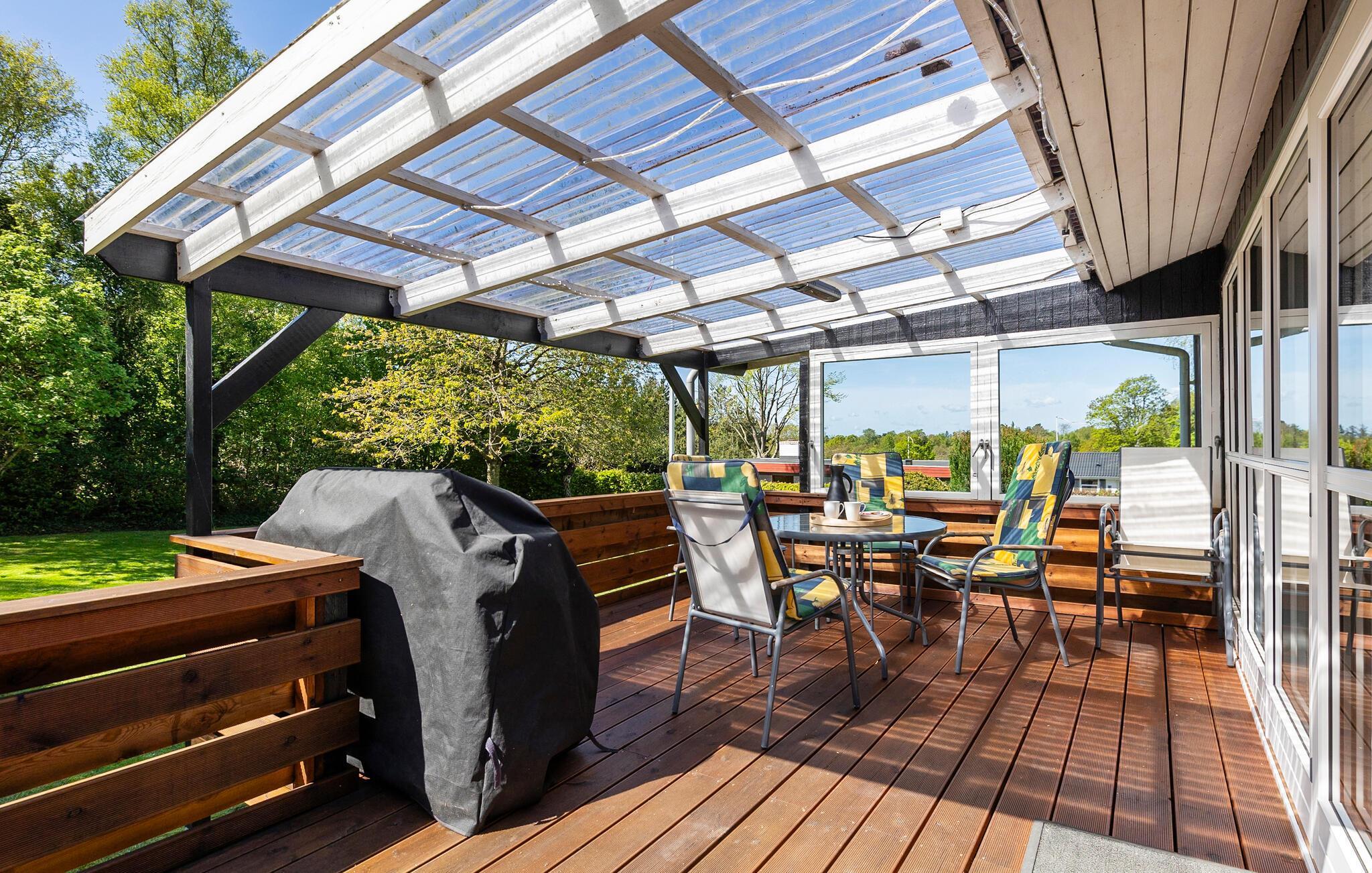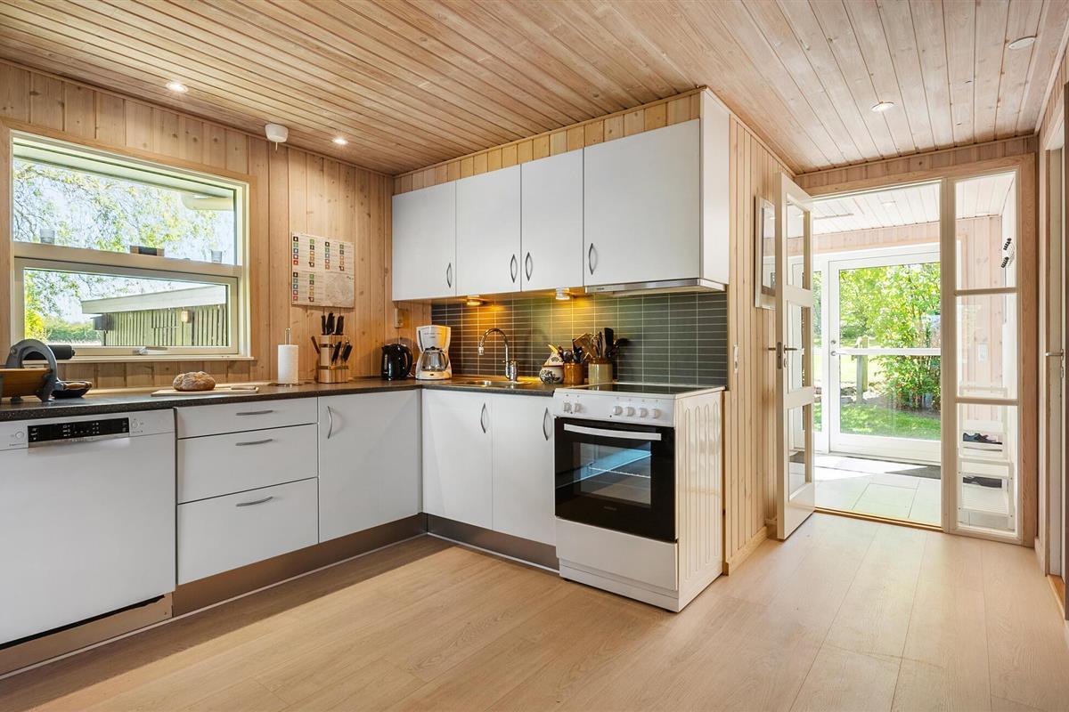 Dit charmante vakantiehuis is genesteld in een goed onderhouden tuinlandschap en biedt de ideale omstandigheden voor een rustige vakantie. Begin de dag met een ontbijt op het overdekte terras of geniet van je maaltijden binnen aan de grote eettafel. De open woon- en eetruimte met zijn grote ramen laat veel natuurlijk licht binnen en creëert een gezellige sfeer. Leun achterover op de comfortabele bank, kijk een film of rond de avond af bij de open haard.