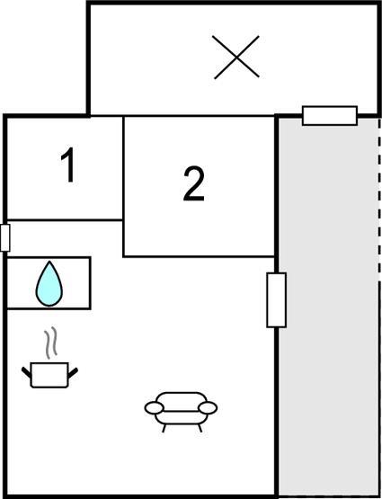 Slaapkamer 7m2 (nr. 1) - 2 Slaapplaatsen. (2-persoonsbed(den)).