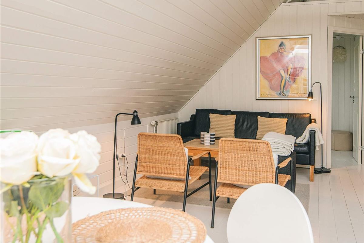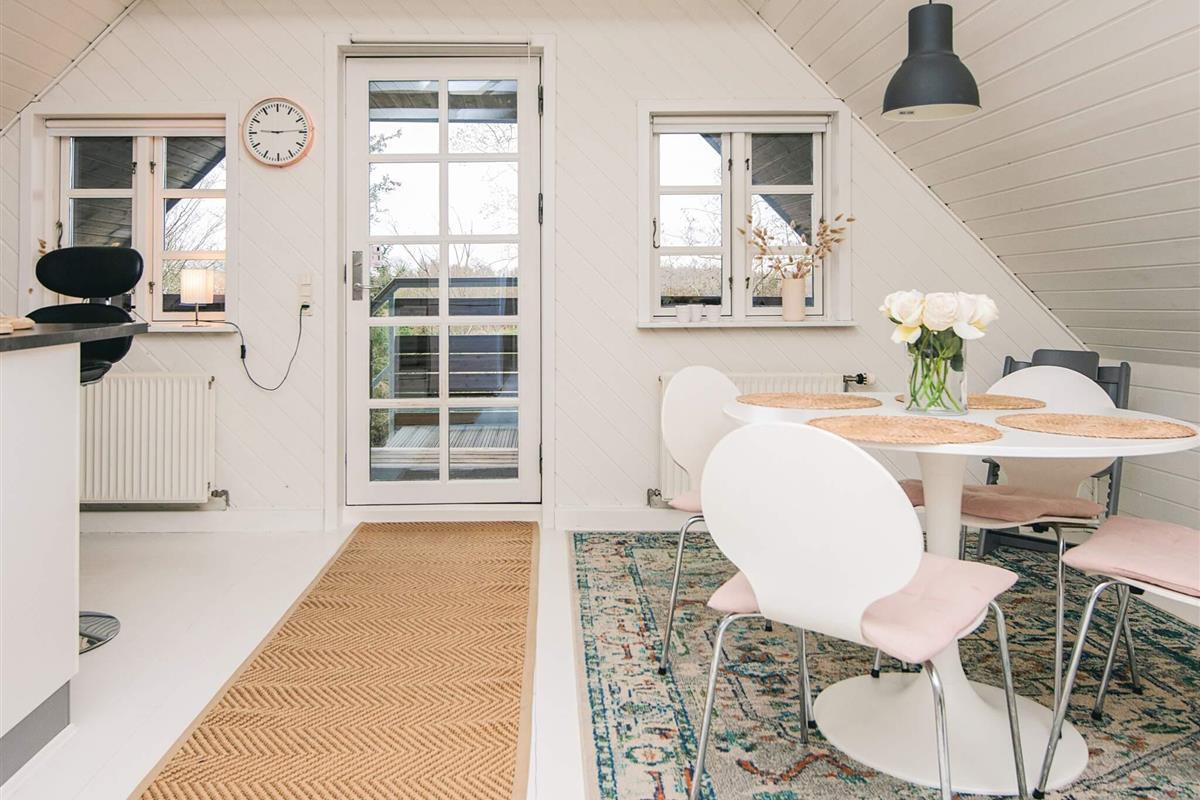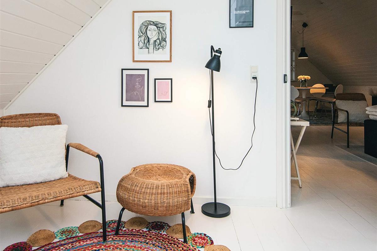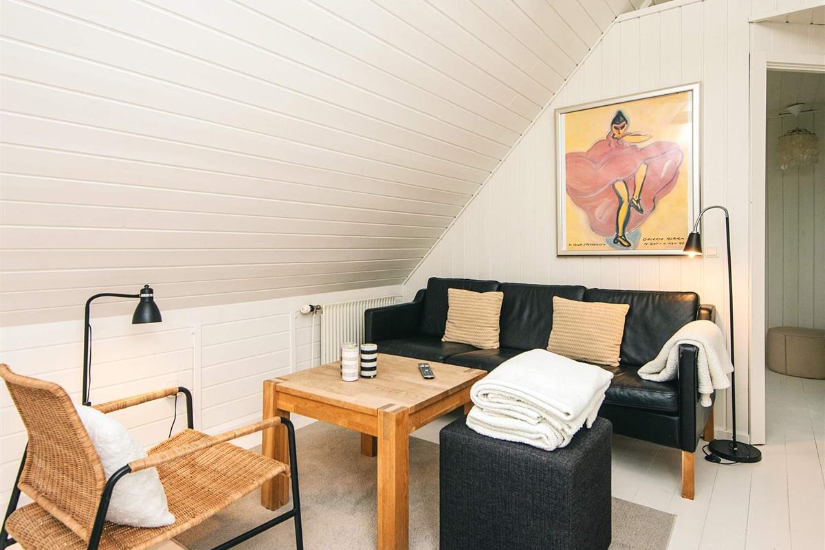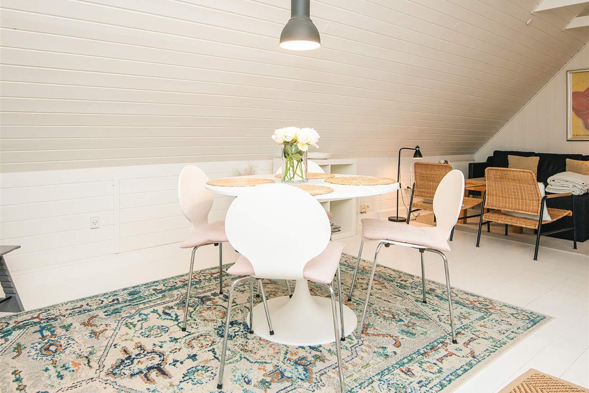 Nicht weit vom Badestrand bei Høll entfernt befindet sich diese helle Ferienwohnung im Dachgeschoss. Separater Zugang über eine Außentreppe zur Wohnung. Vor dem Eingang gibt es einen überdachten Balkon mit Sitzgelegenheiten und schönem Ausblick in die Umgebung. Die Wohnung ist hell und wohnlich eingerichtet und gut ausgestattet mit modermen Mobiliar und guten Betten.