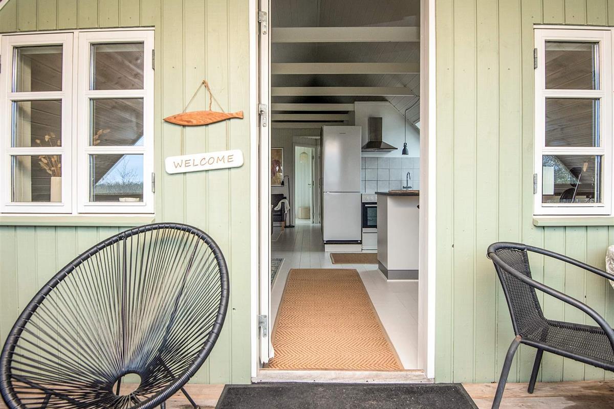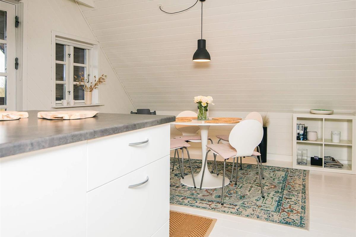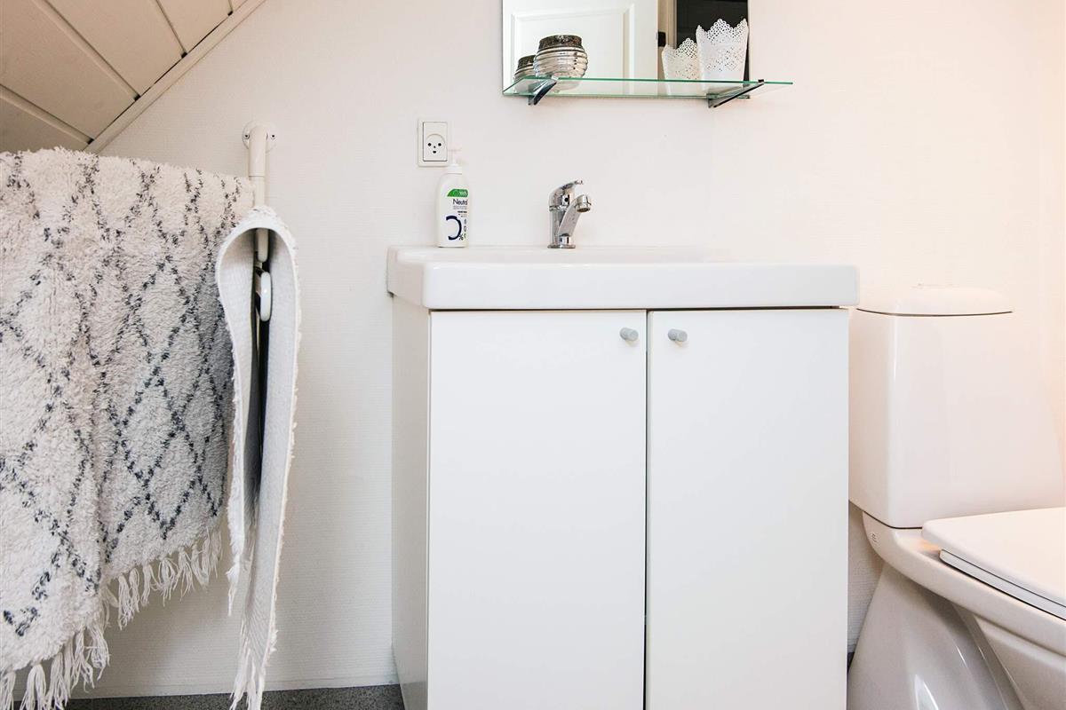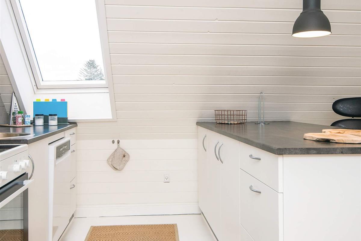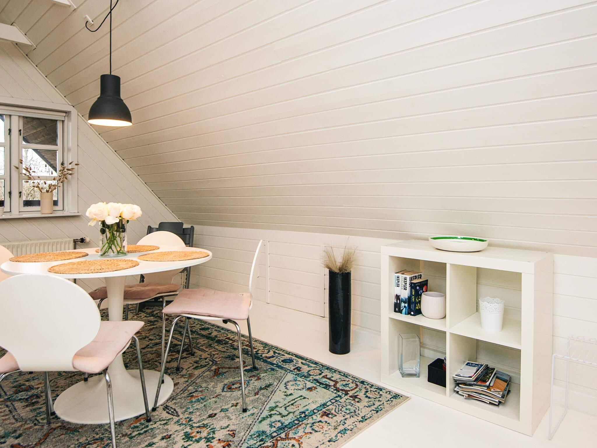 Nicht weit vom Badestrand bei Høll entfernt befindet sich diese helle Ferienwohnung im Dachgeschoss. Separater Zugang über eine Außentreppe zur Wohnung. Vor dem Eingang gibt es einen überdachten Balkon mit Sitzgelegenheiten und schönem Ausblick in die Umgebung. Die Wohnung ist hell und wohnlich eingerichtet und gut ausgestattet mit modermen Mobiliar und guten Betten.