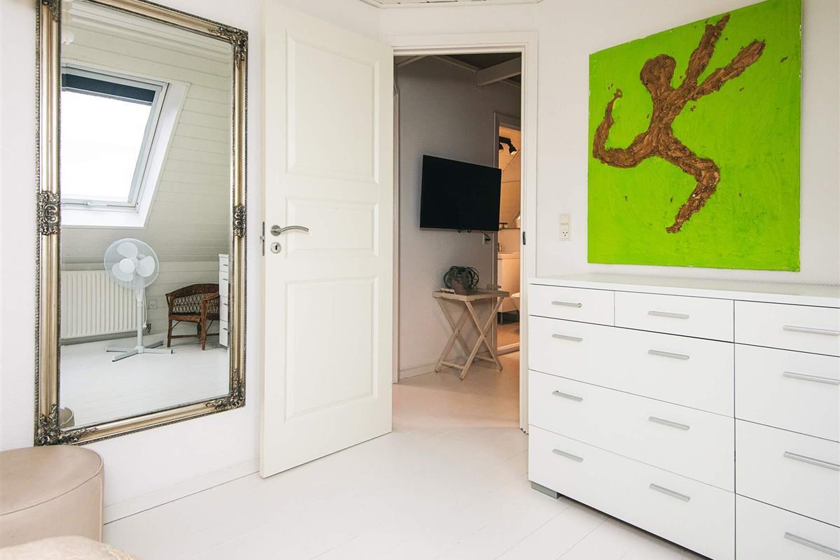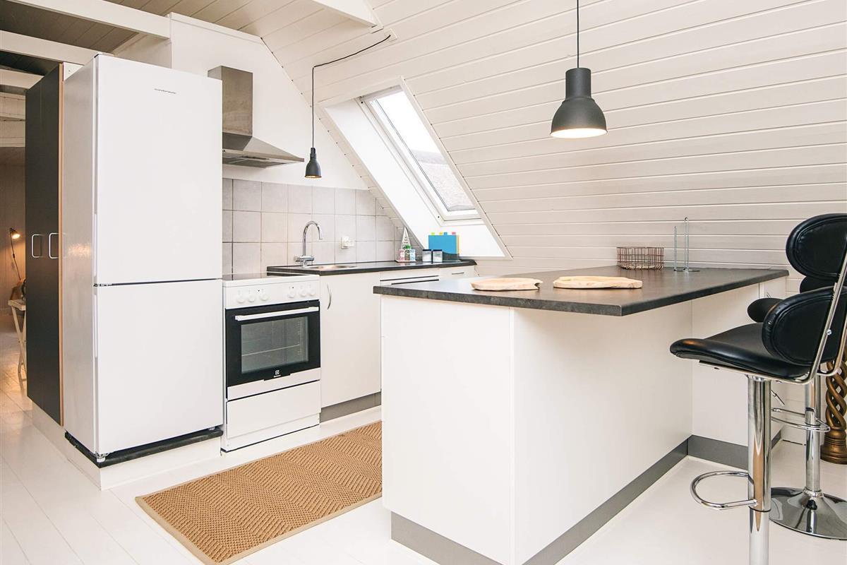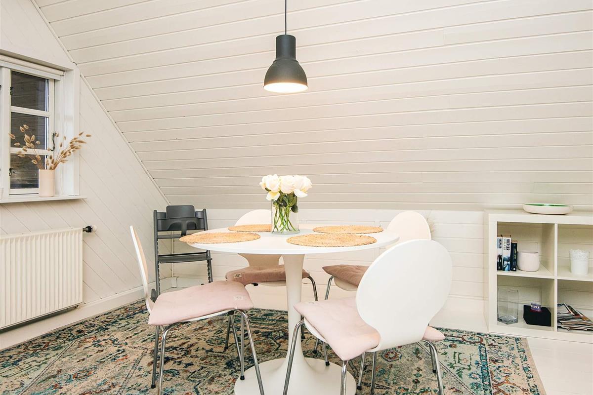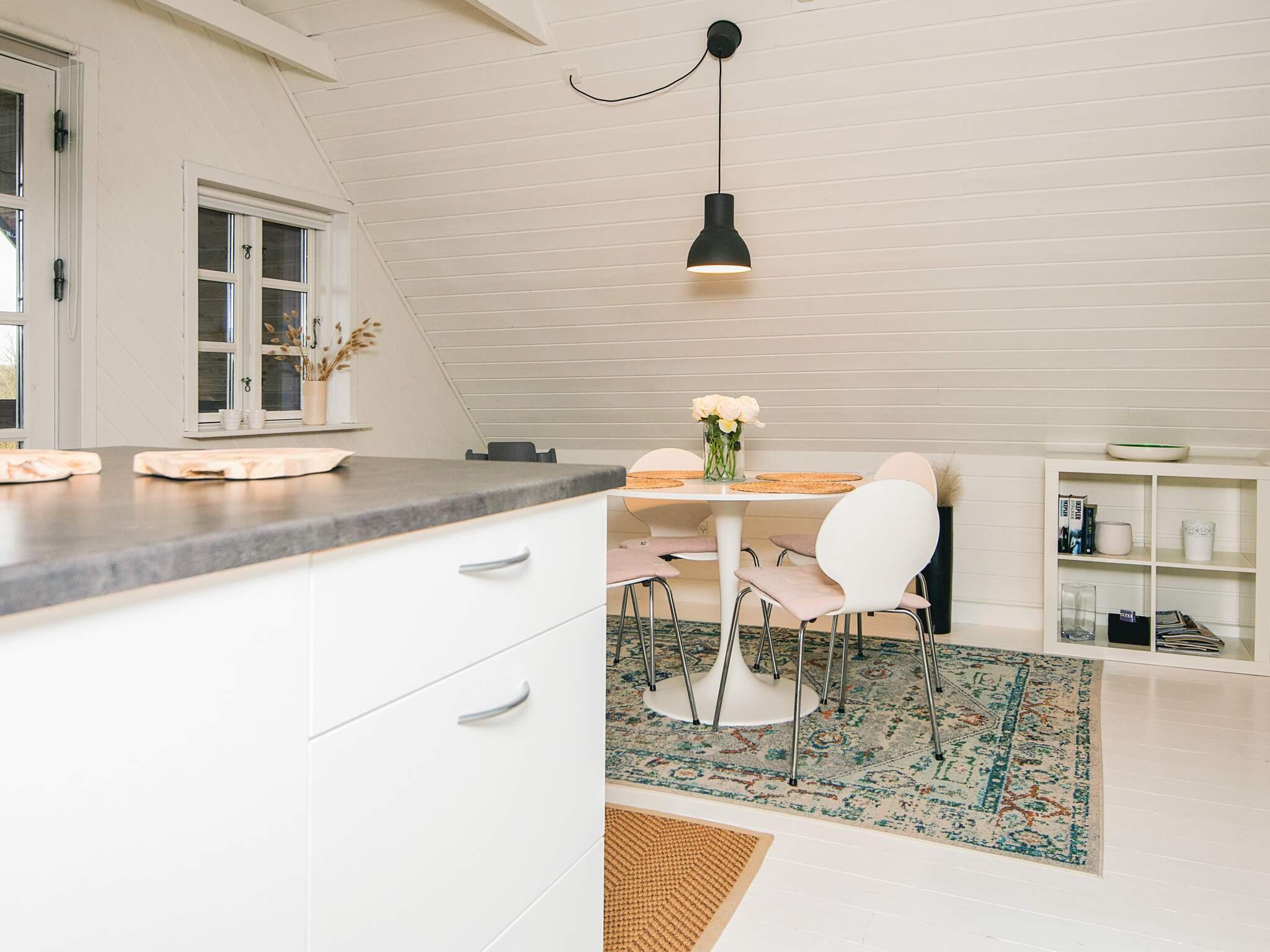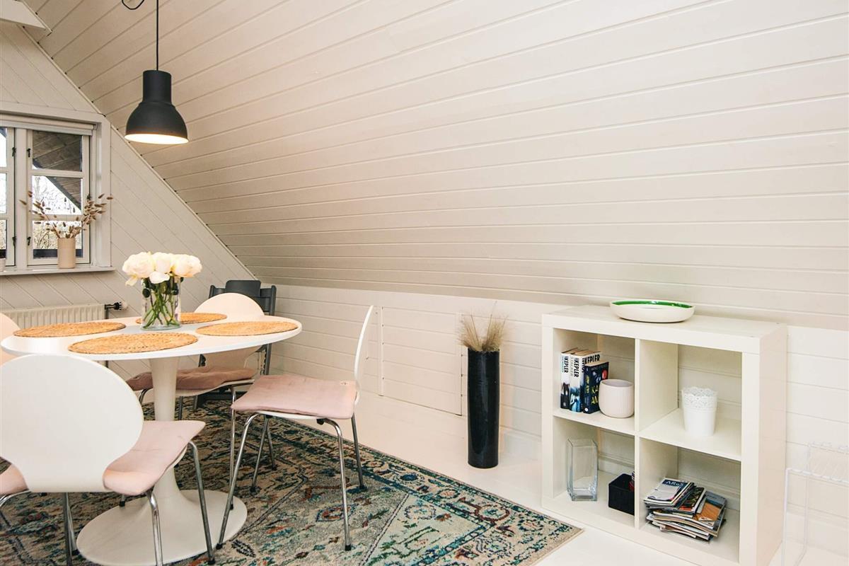Nicht weit vom Badestrand bei Høll entfernt befindet sich diese helle Ferienwohnung im Dachgeschoss. Separater Zugang über eine Außentreppe zur Wohnung. Vor dem Eingang gibt es einen überdachten Balkon mit Sitzgelegenheiten und schönem Ausblick in die Umgebung. Die Wohnung ist hell und wohnlich eingerichtet und gut ausgestattet mit modermen Mobiliar und guten Betten.
