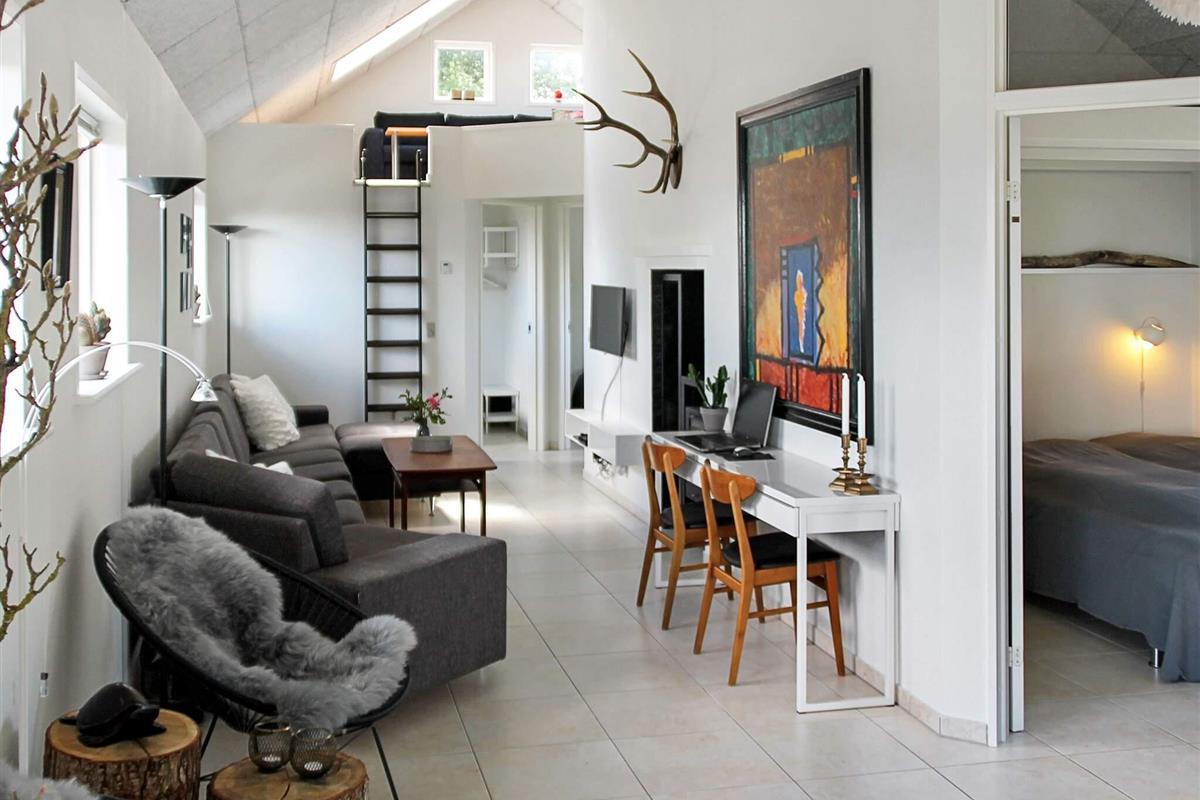 Das Ferienhaus ist wohnlich eingerichtet und bietet viel Platz und ein helles Ambiente mit großen Fenstern und teils offener Zimmerdecke bis zum First. Für das Familienleben steht ein offener Küchen-/Wohnbereich mit attraktivem Essplatz und kleinem Meerblick zur Verfügung. Von der Küche aus hat man Zugang zur großen Terrassenfläche mit schöner Aussicht. Es gibt drei Schlafzimmer mit jeweils einem Doppelbett, außerdem einen offenen Hems oben unter der Dachschräge mit zwei weiteren Schlafplätzen. Zudem schönes, großes Badezimmer mit u.a. Whirlpool und angenehmer Fußbodenheizung. Außerdem Waschmaschine im Haus.