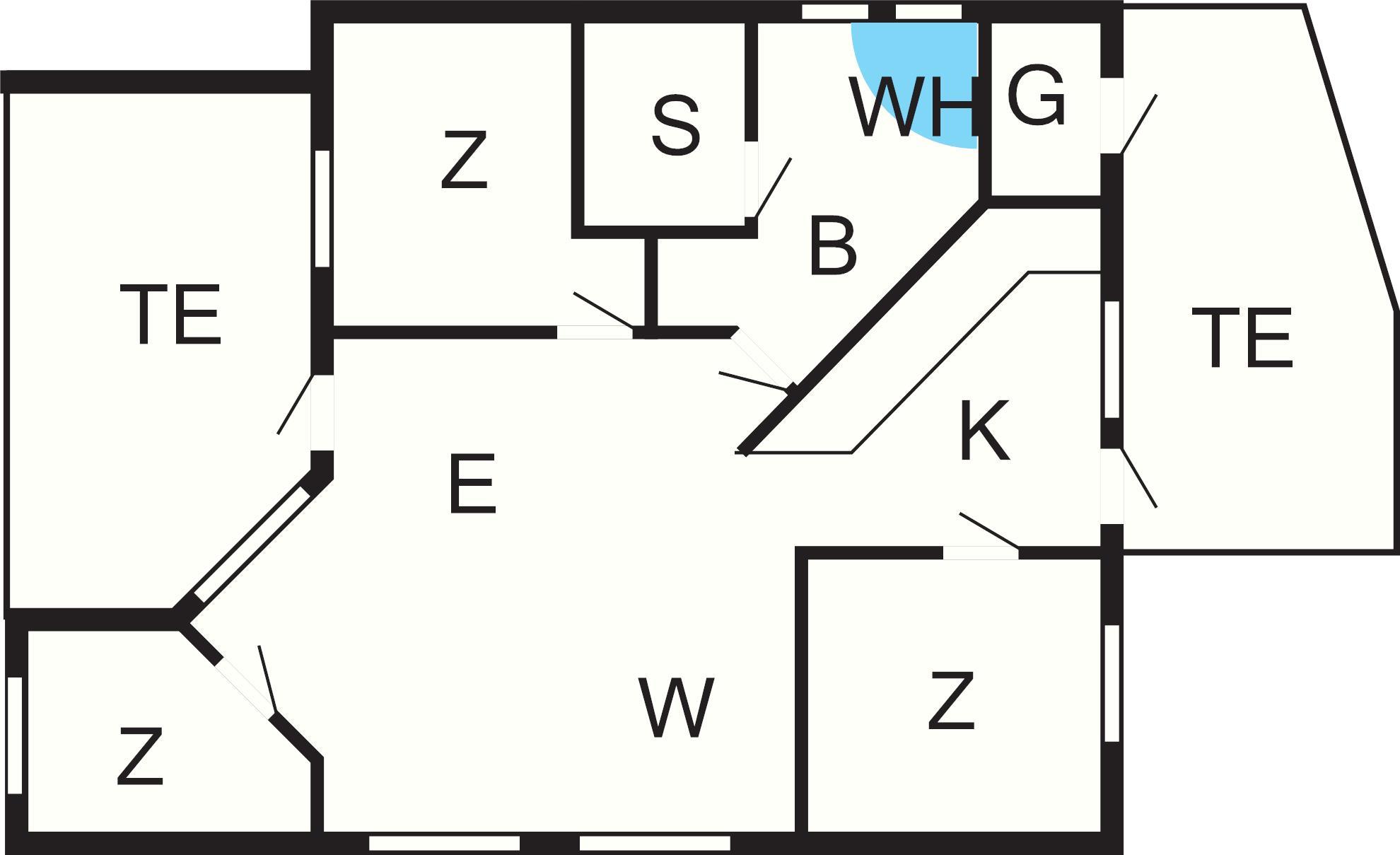 Küche: E-Herd, Kühlschr. m. Gefrierfach, Mikrow., Abzugsh., Kaffeem., Spülm., Waschm.