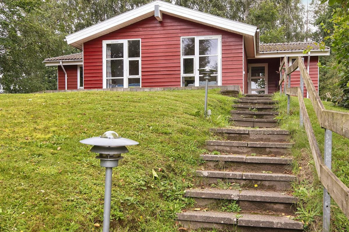 Dieses gut ausgestattete Ferienhaus mit Whirlpool liegt erhöht, mit Ausblick auf die Umgebung. Treppen führen zum Haus hinauf und kleine, schöne Wege zum Spaziergehen führen durch das Gebiet und die Natur. Im Anschluss an den Badestrand liegt die gr. Sanddüne Bjerget. An beiden Seiten des Hauses gibt es Terrassen. Vom Wohnzimmer und von 2 Schlafzimmern aus Zugang zur Terrasse. Schräge Wände, eine gut ausgestattete Küche und Ledermöbel sorgen für Gemütlichkeit. Besuchen Sie z.B. die Städte Fredericia oder Vejle und unternehmen Sie einen Familienausflug zum Legoland oder Givskud Zoo. In der Umgebung findet man auch einige schöne Golfplätze.