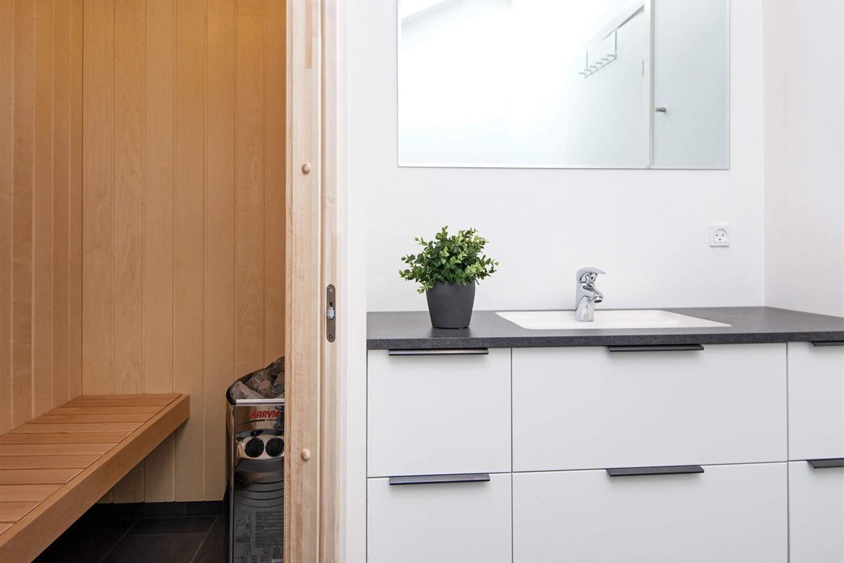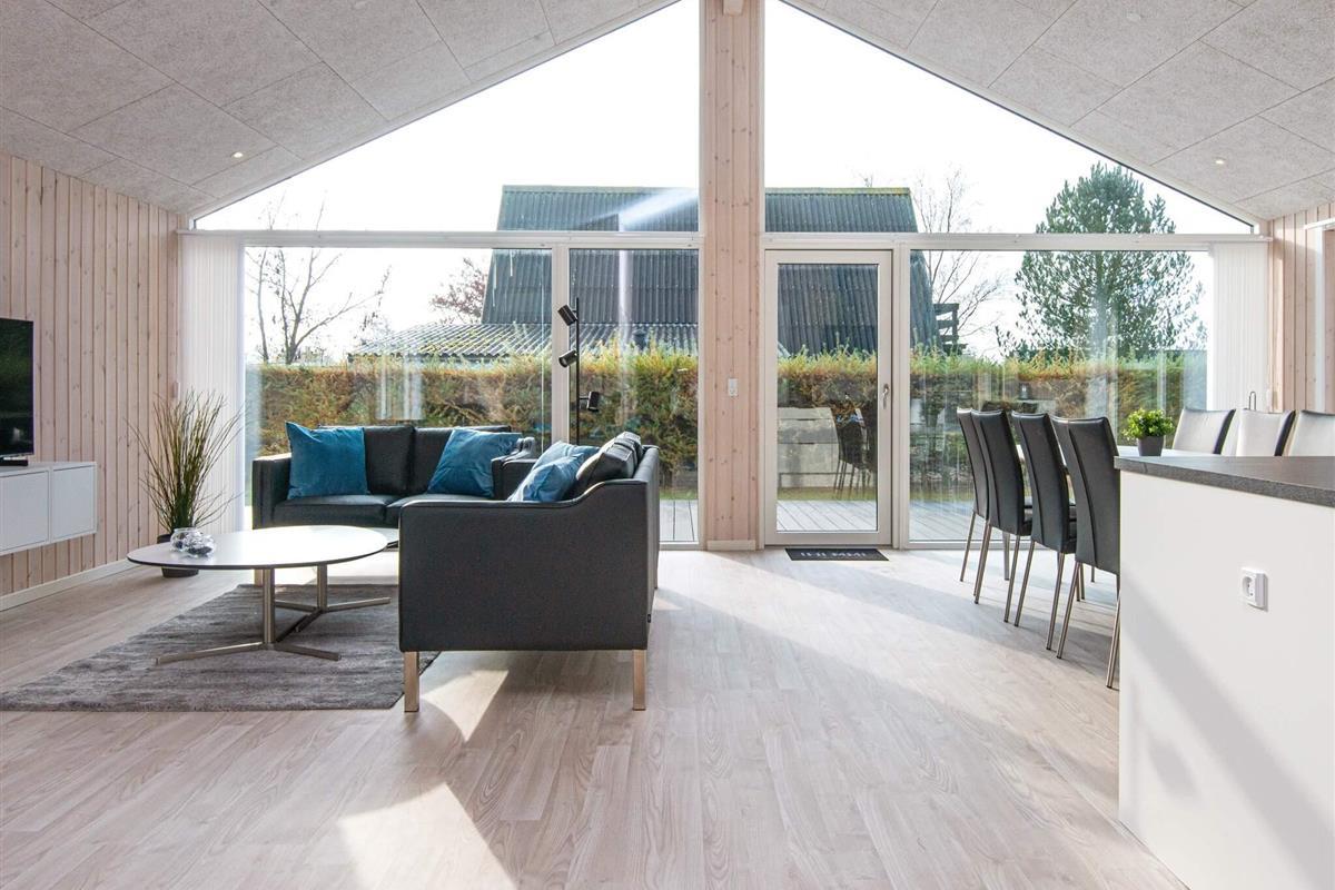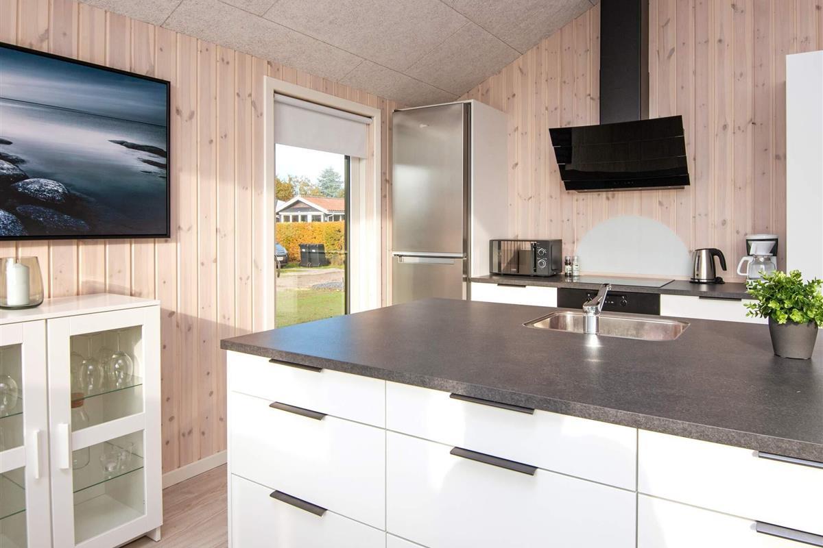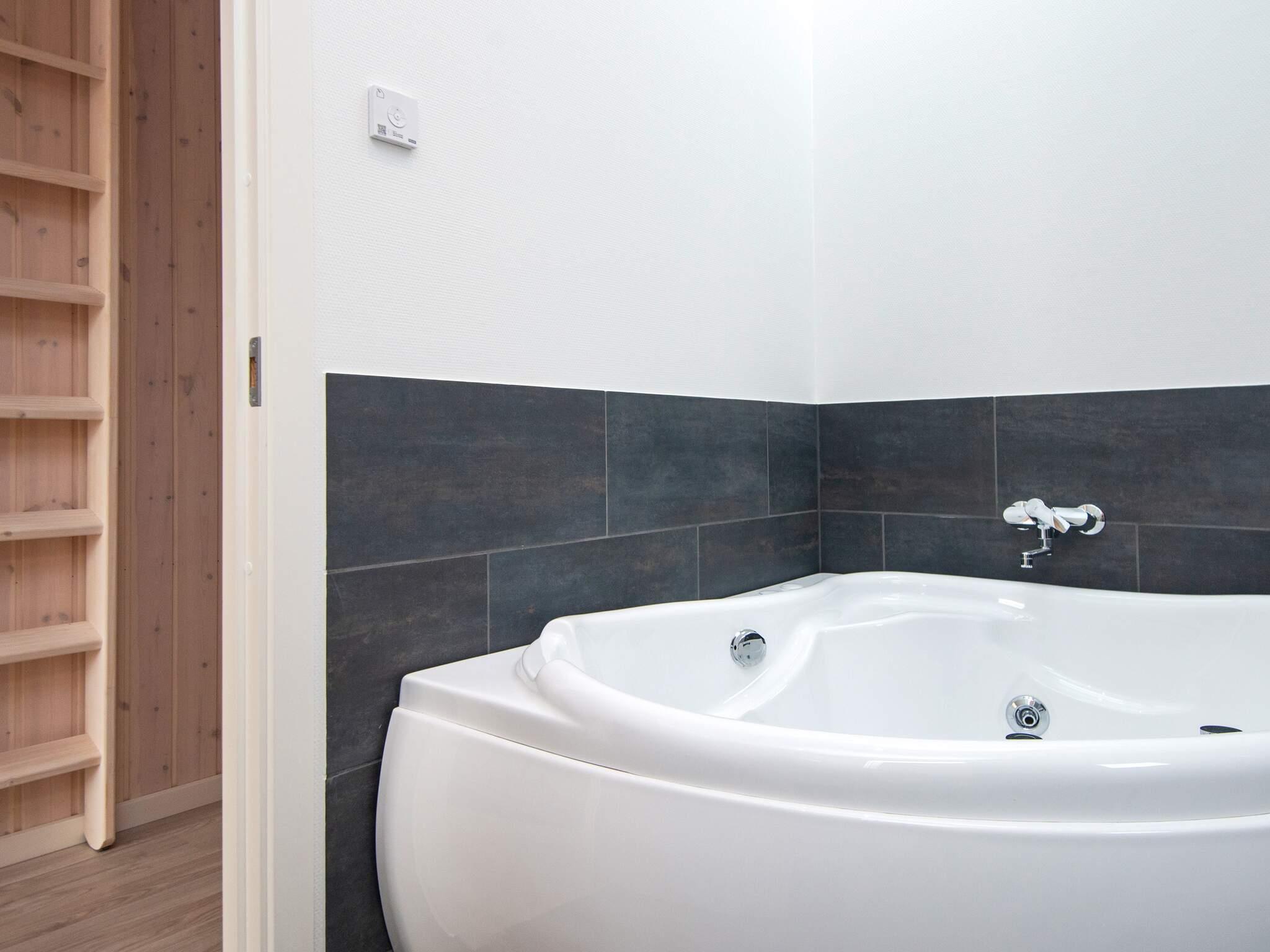 Gäste können im Badezimmer entspannen, das sowohl über einen wohltuenden Whirlpool als auch eine Sauna verfügt und so Wellness und Entspannung bietet, ohne das Haus verlassen zu müssen. Das Herzstück des Hauses ist der offene Küchen- und Wohnbereich mit Ess- und Sitzecke, wo die ganze Familie zum Essen, Spielen oder für ruhige Fernsehabende zusammenkommen kann. Große Fenster schaffen eine helle und einladende Atmosphäre und bieten direkten Zugang zur großzügigen Terrasse, die fast das gesamte Haus umgibt. Ausgestattet mit Gartenmöbeln lädt sie zum Grillen, Sonnenbaden oder einfach zum Genießen der frischen Küstenluft ein.