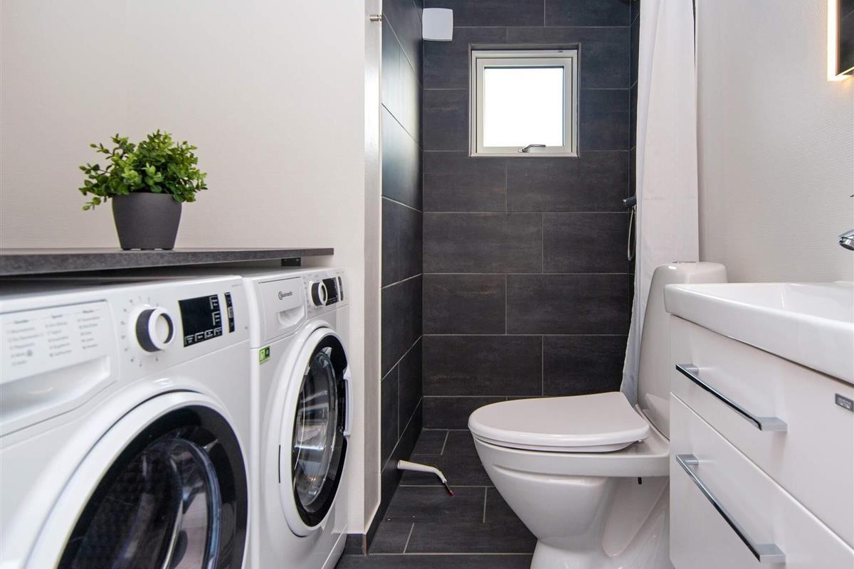 Bad: Waschm, Trockner, WC, Waschb., Dusche, Fußbodenheiz.