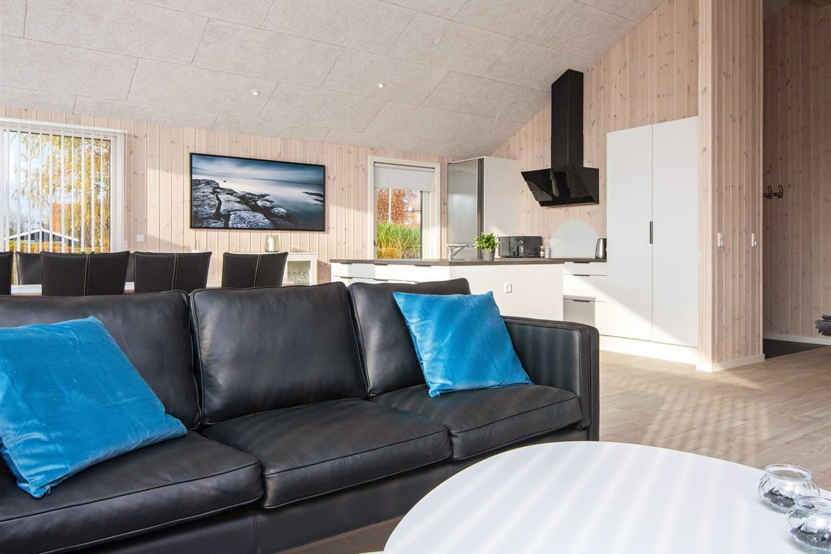 Unweit des attraktiven Badestrandes von Høll bietet dieses moderne Ferienhaus mit eigenem Whirlpool und Sauna den perfekten Rahmen für einen erholsamen Aufenthalt. Das 2021 erbaute Haus besticht durch sein frisches, modernes Design und eine praktische Raumaufteilung. Neben drei komfortablen Schlafzimmern verfügt es auch über einen Dachboden (Hems), der Kindern als gemütlicher Rückzugsort dient.