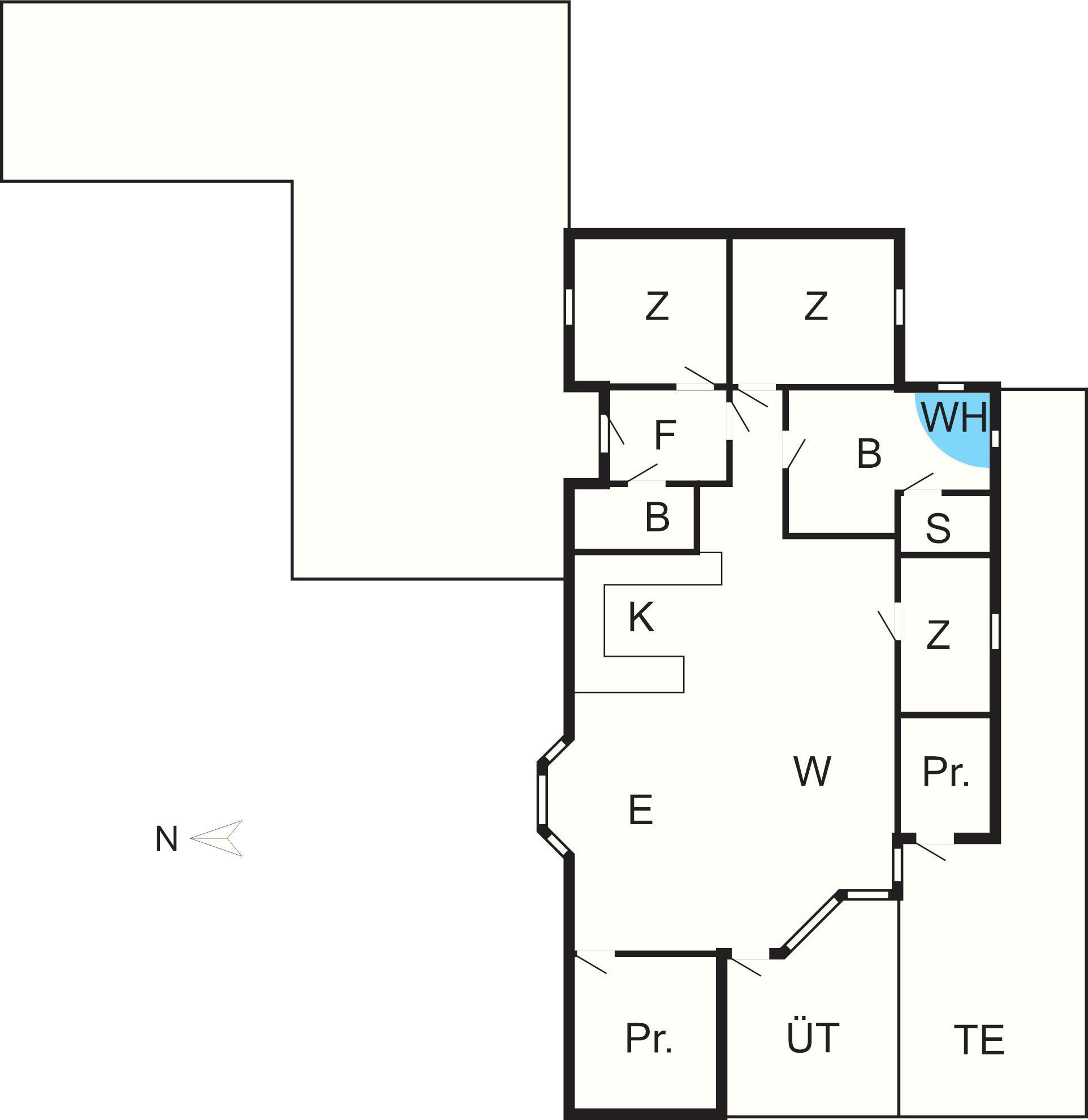 Bad: WC, Waschb., Dusche, Fußbodenheiz.