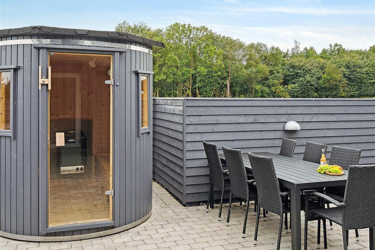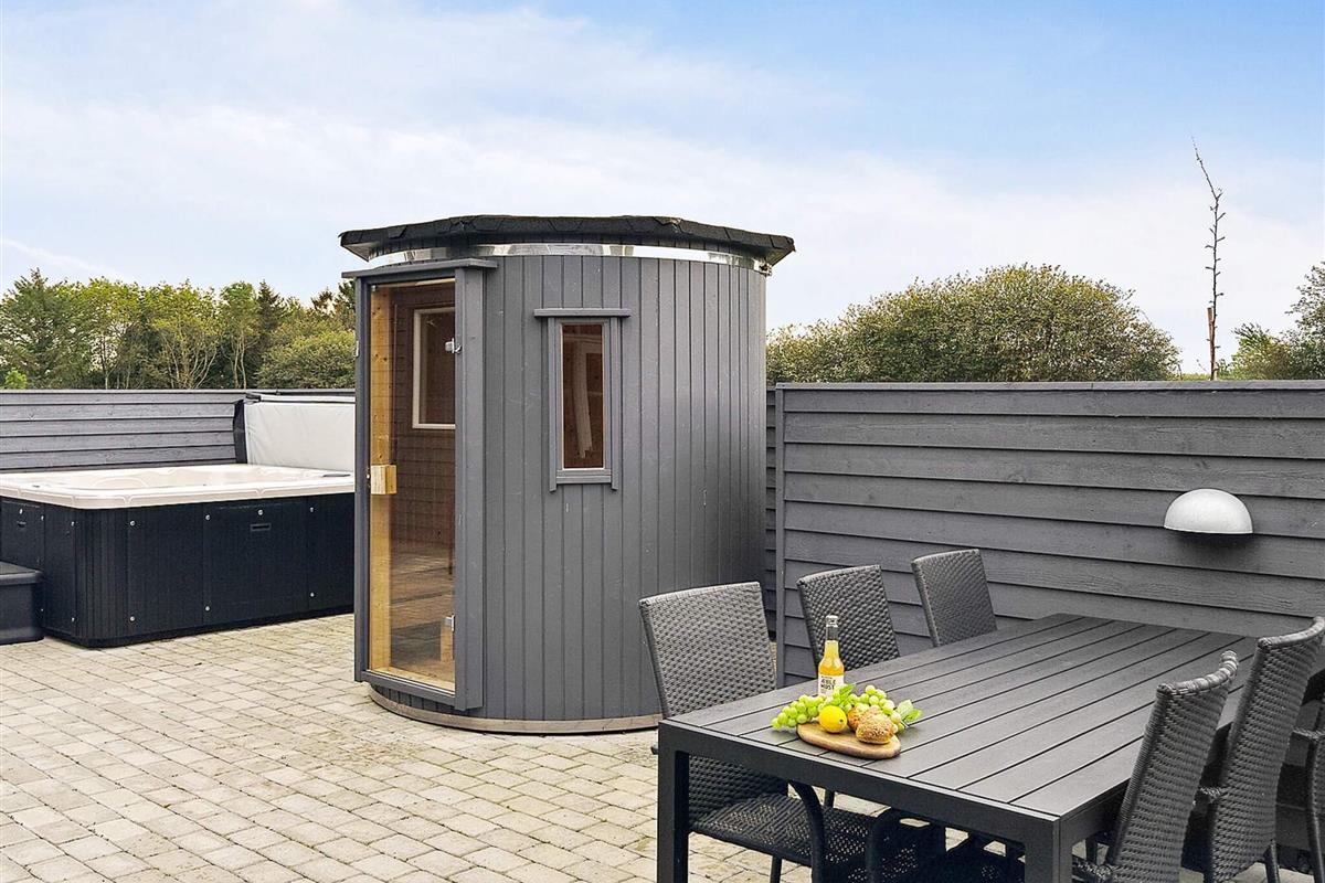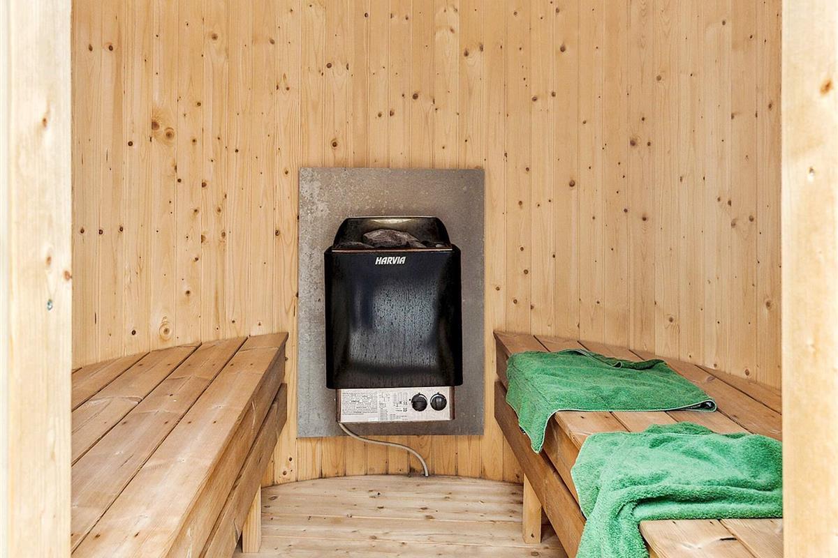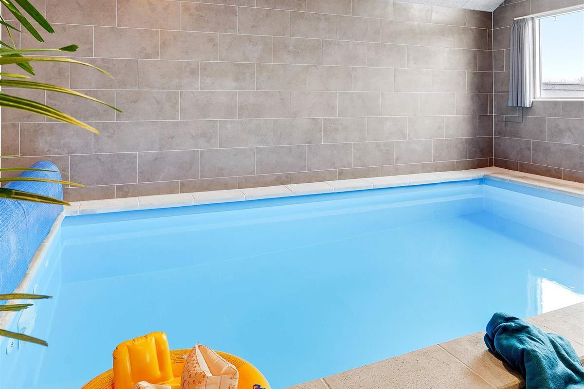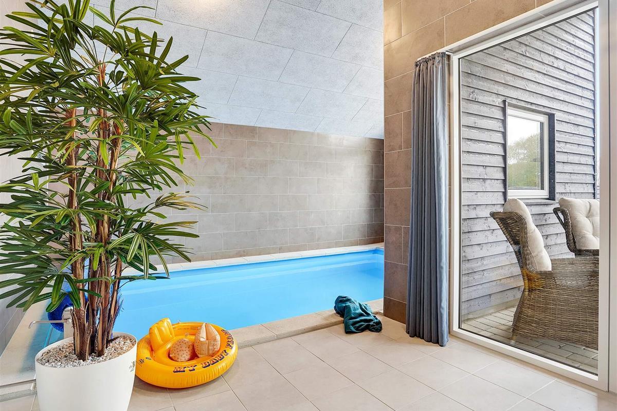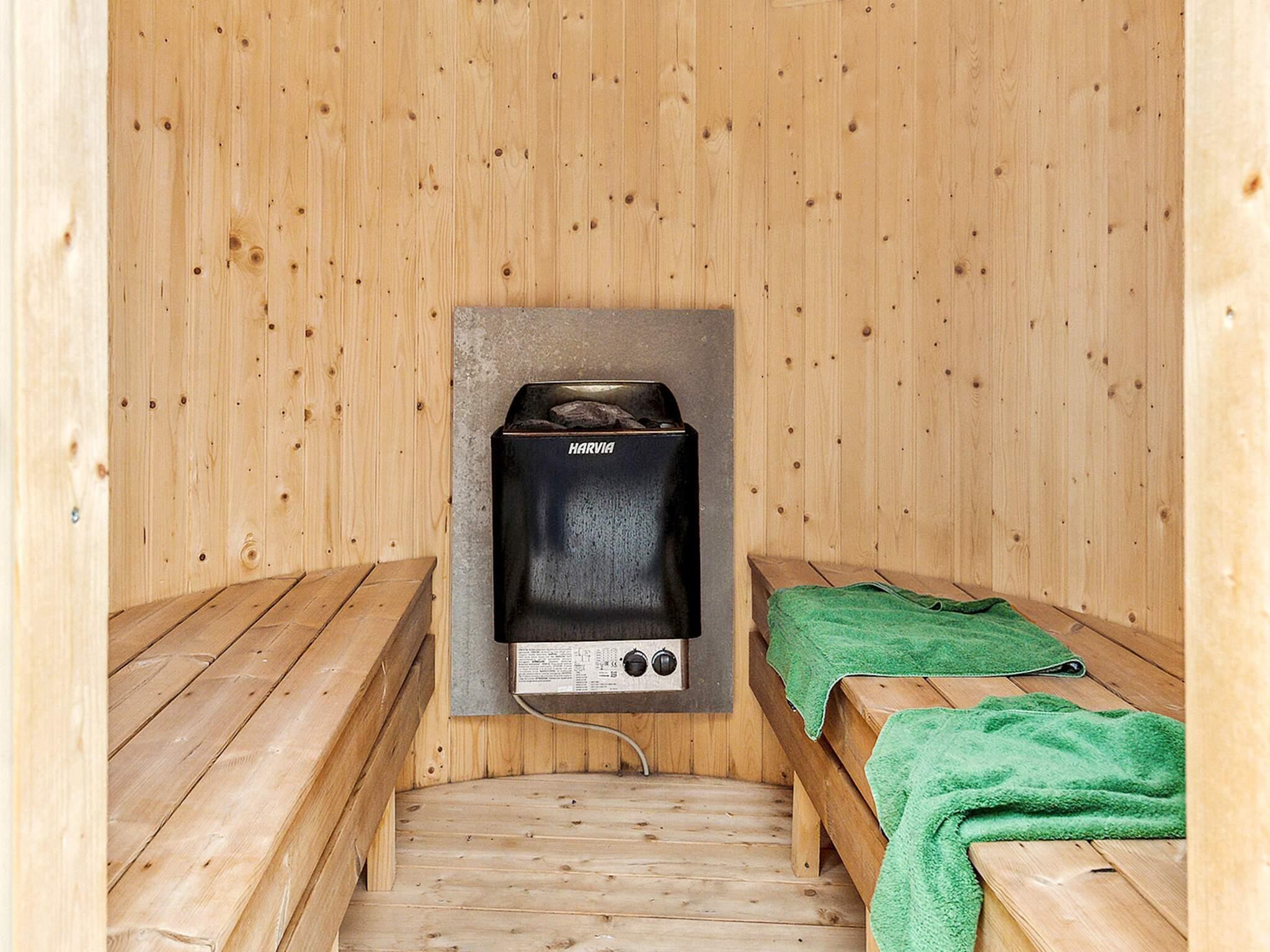 Der eigene Poolbereich des Ferienhauses sorgt für Badespaß zu jeder Jahreszeit. Der Pool ist 14 m² groß und verfügt über eine römische Treppe. Das Wellness-Feeling setzt sich auch im Außenbereich fort, wo Sie einen schönen Außenwhirlpool und eine Außensauna finden – so können Sie auch ein entspannendes Bad genießen.