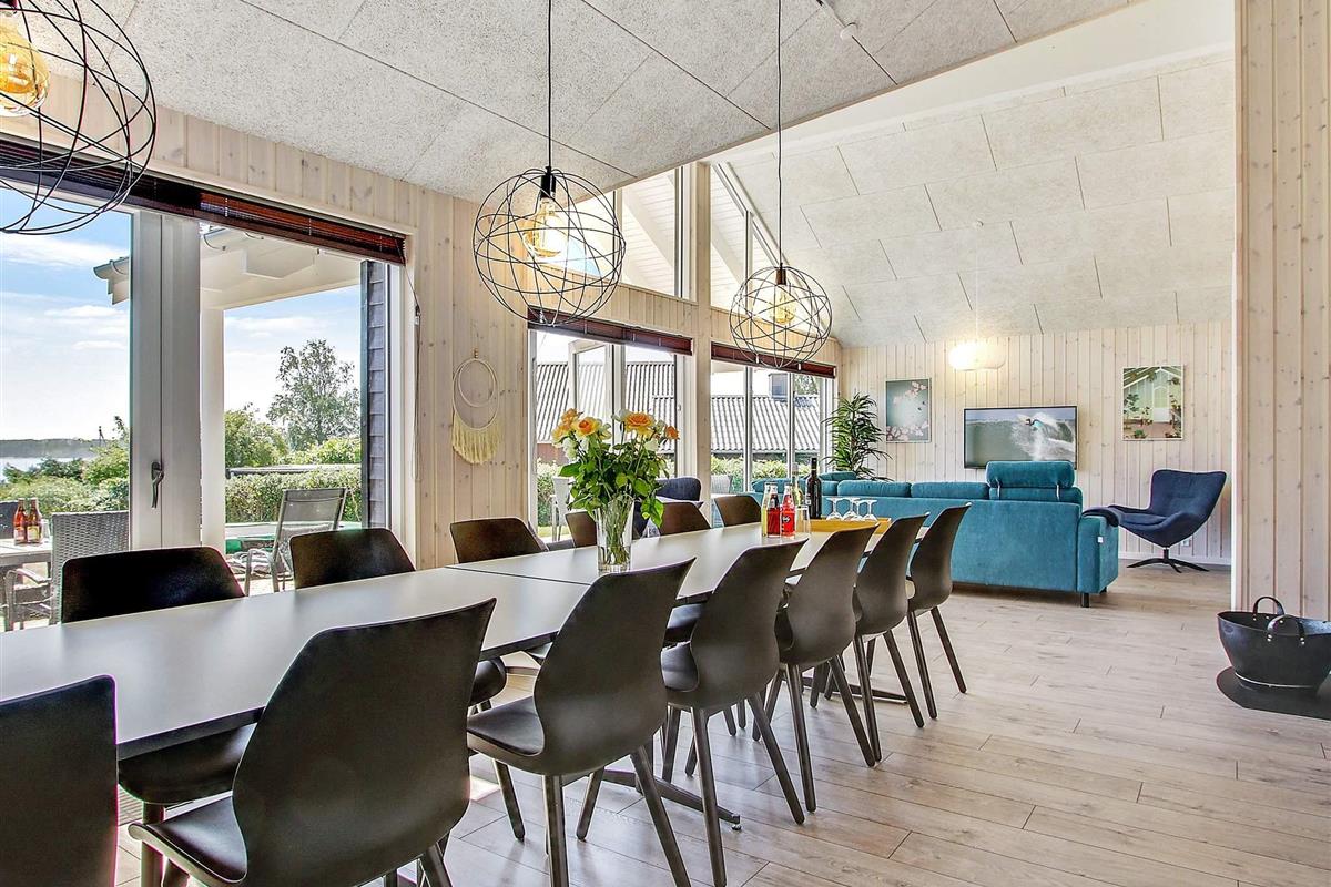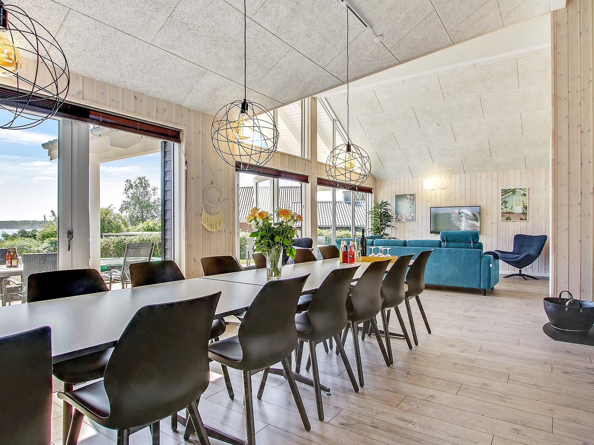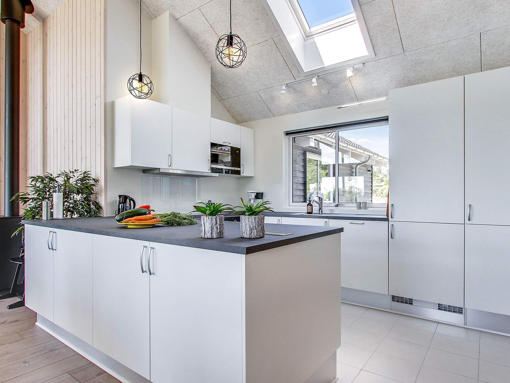 Der Wohnraum mit Essplatz ist geschmackvoll eingerichtet und verfügt u.a. über Stereoanlage, TV, Blu-ray-Spieler, Kinderhochstuhl, Sofagruppe und Kaminofen. In der durchdachten Küche gibt es einen großen Kühlschrank, einen Gefrierschrank, sowie je zwei Spülmaschinen und Herde.