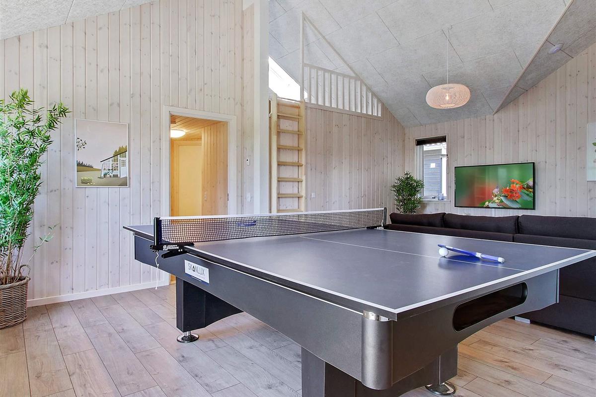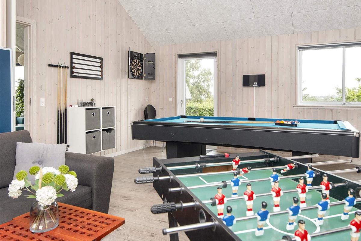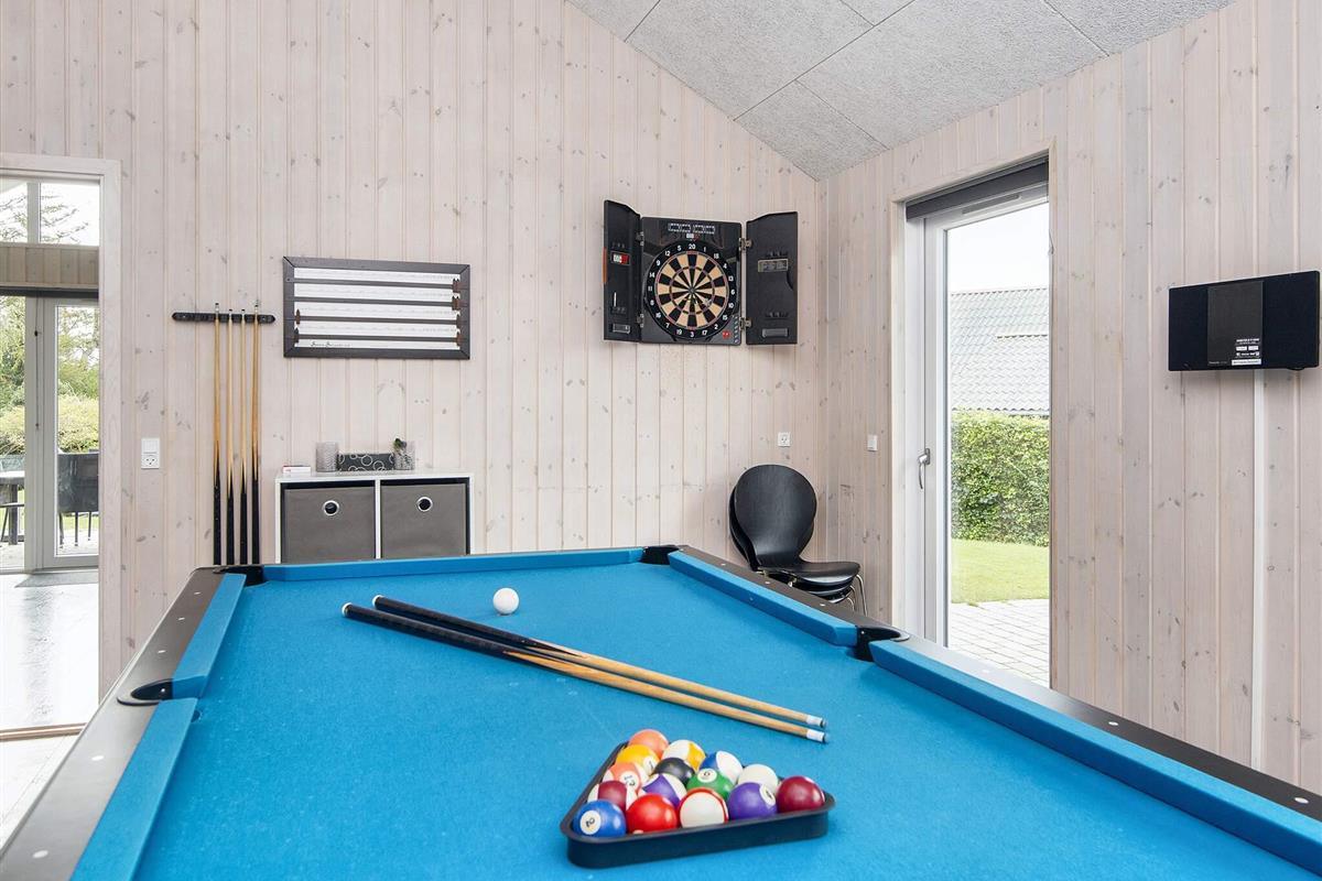 Ansprechend eingerichtetes Ferienhaus mit Swimmngpool, Whirlpool und Sauna sowie diversen Aktivitätsmöglichkeiten. Im Poolbereich des Hauses erwartet Sie ein großer Pool mit Gegenstromanlage und Wasserrutsche für Kinder, ein eingebauter Whirlpool und eine Sauna mit Platz für 4 Personen. Der Aktivitätsraum wartet mit Tischtennisplatte, Billardtisch und elektronischem Dartspiel auf. Es gibt mehrere Fernseher im Haus sowie PlayStation4 und Nintendo Wii für unterhaltende Stunden.