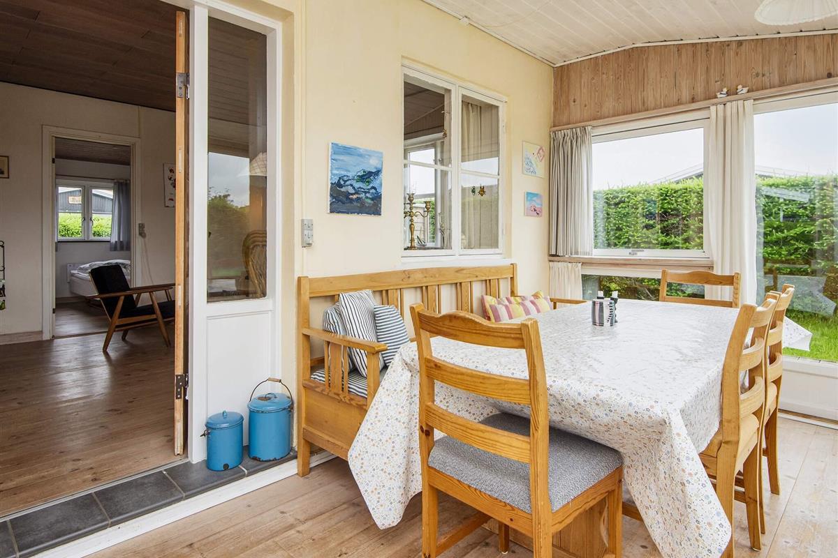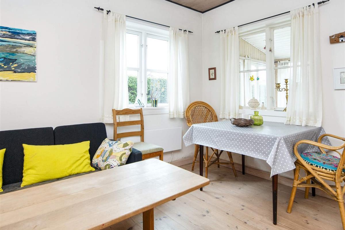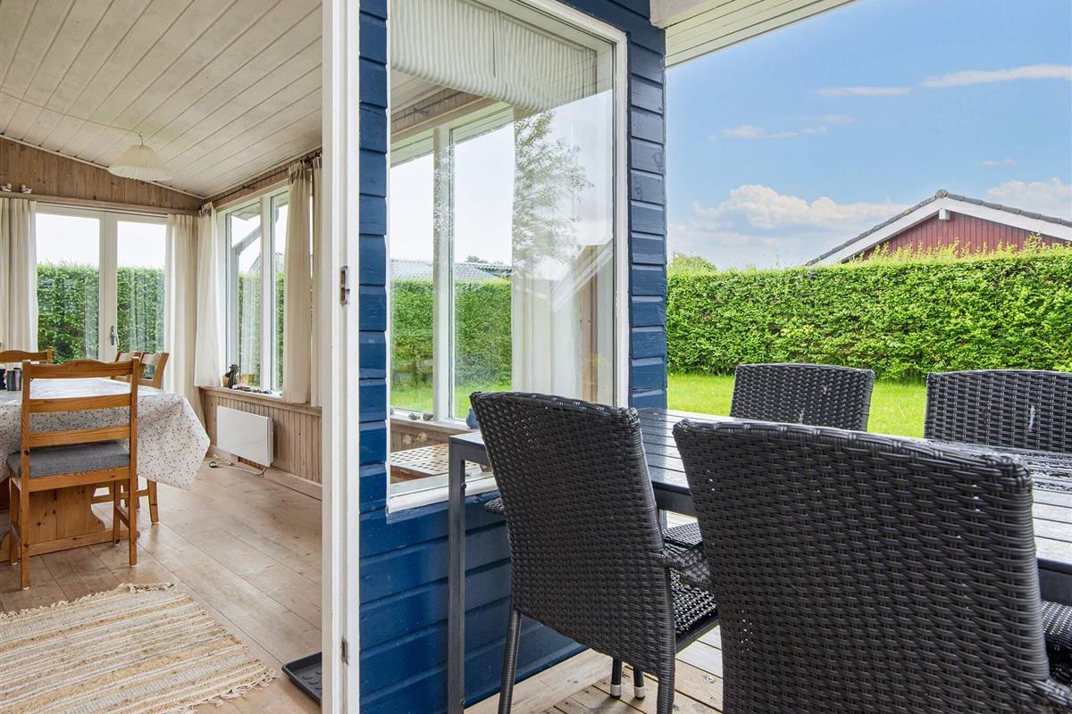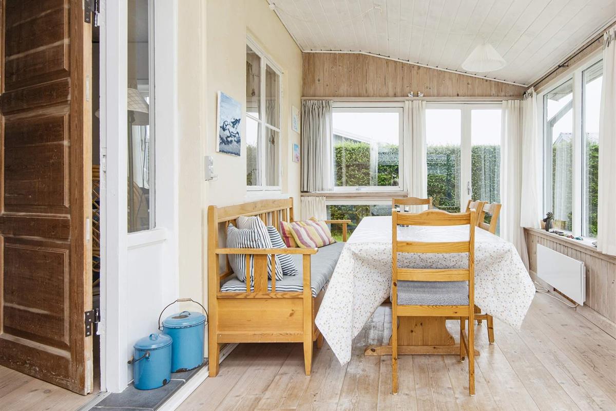 Nicht weit von dem guten Badestrand in Høll liegt dieses ältere, renovierte Ferienhaus. Es verfügt über eine kleine verglaste Veranda, von der es hinaus in den Garten geht, der wunderbar ungestört ist.