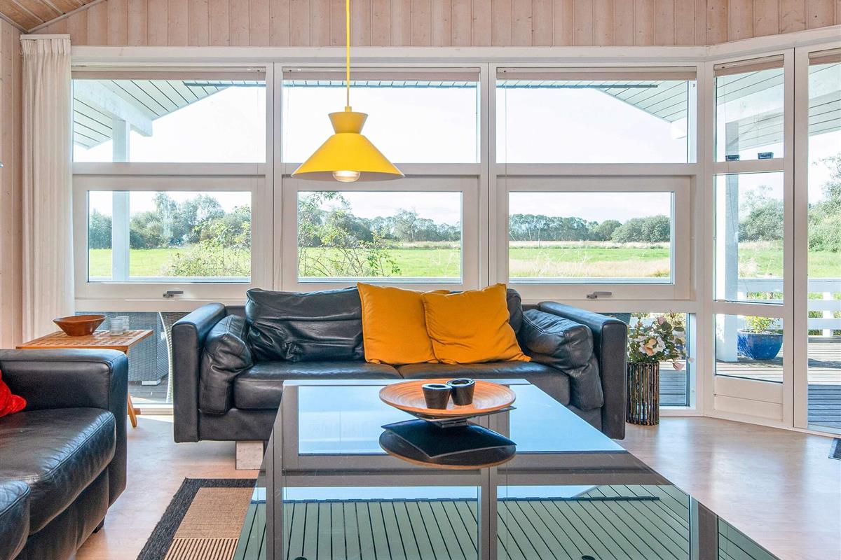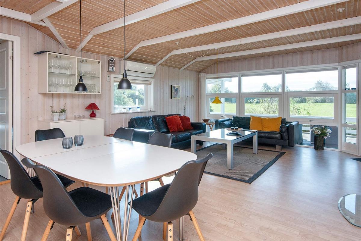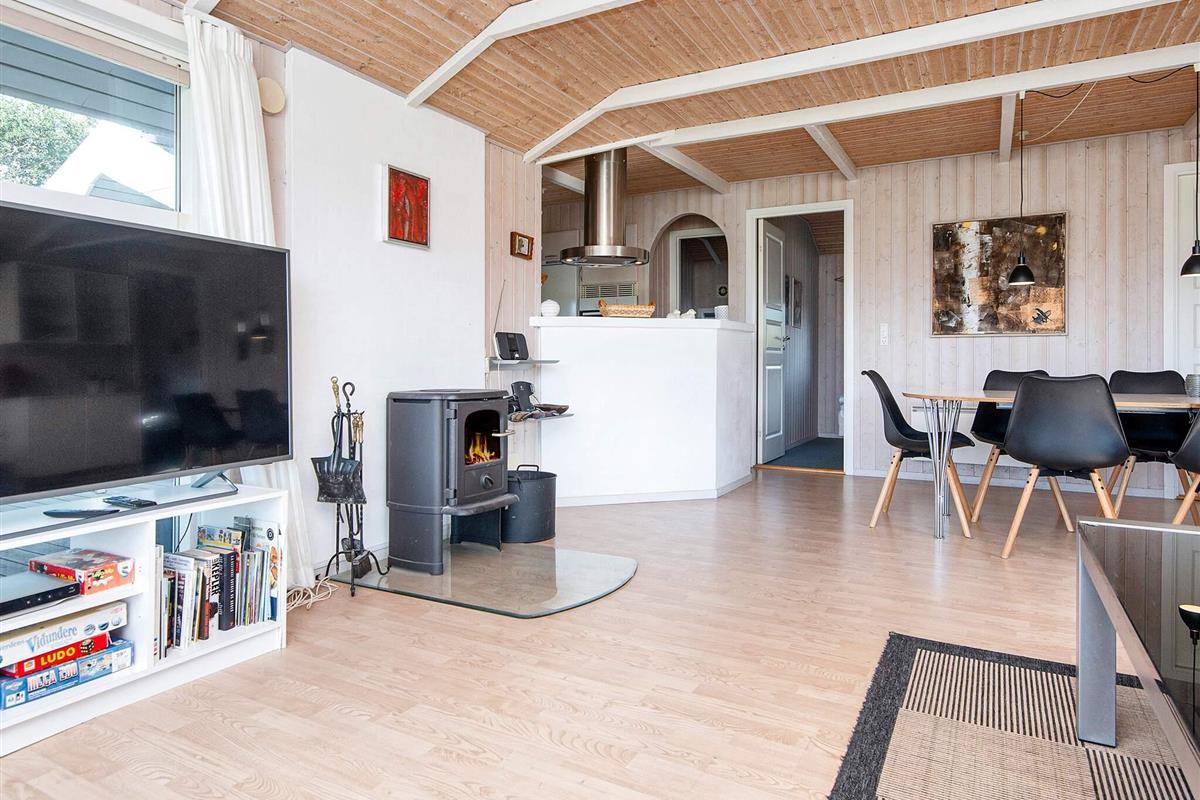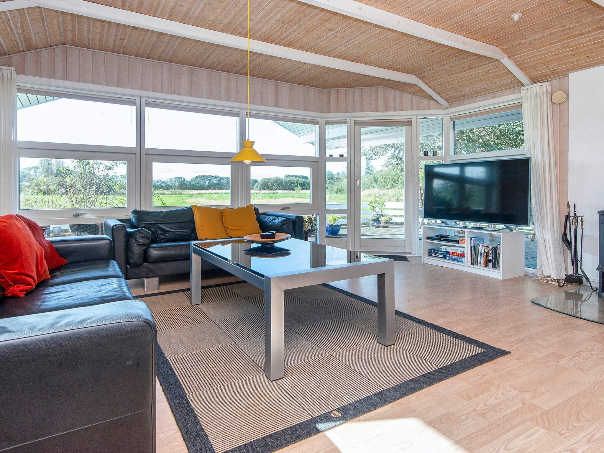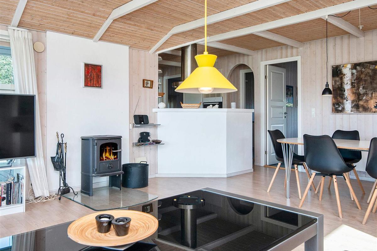 Dieses helle Ferienhaus mit Whirlpool und Sauna steht nicht weit vom Badestrand in Høll entfernt. Das Haus ist gut möbliert. Vom Wohnraum aus gelangen Sie auf die Terrasse mit Aussicht in die Umgebung. Die große Wiese bietet sich zum Spielen an. Das Haus steht in einer abgeschirmten, kinderfreundlichen Umgebung. Es kommt vor, dass Rehe vor dem Haus vorbeilaufen.