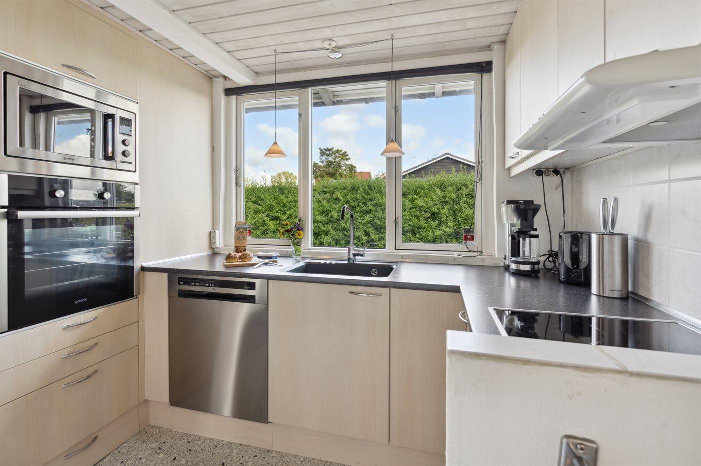 De keuken is uitgerust met koelkast Er is 4 inductiekookplaten, heteluchtoven, magnetron en vaatwasser.