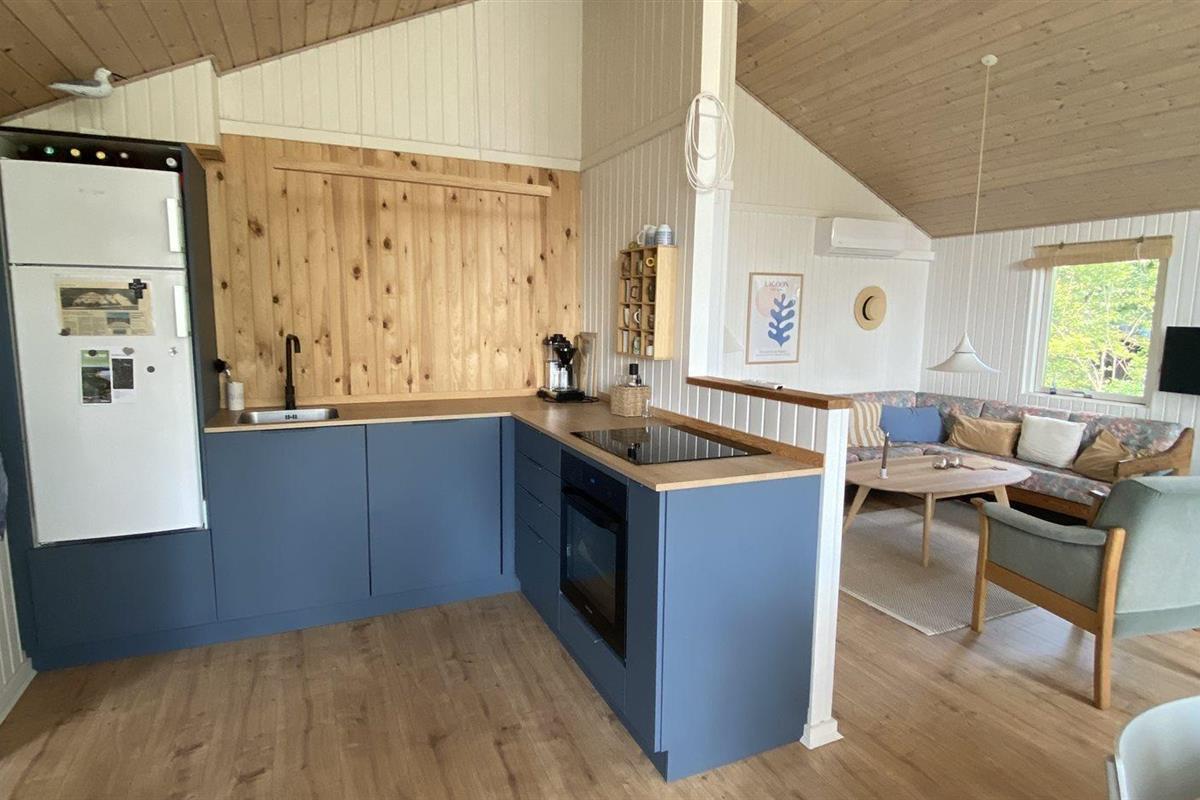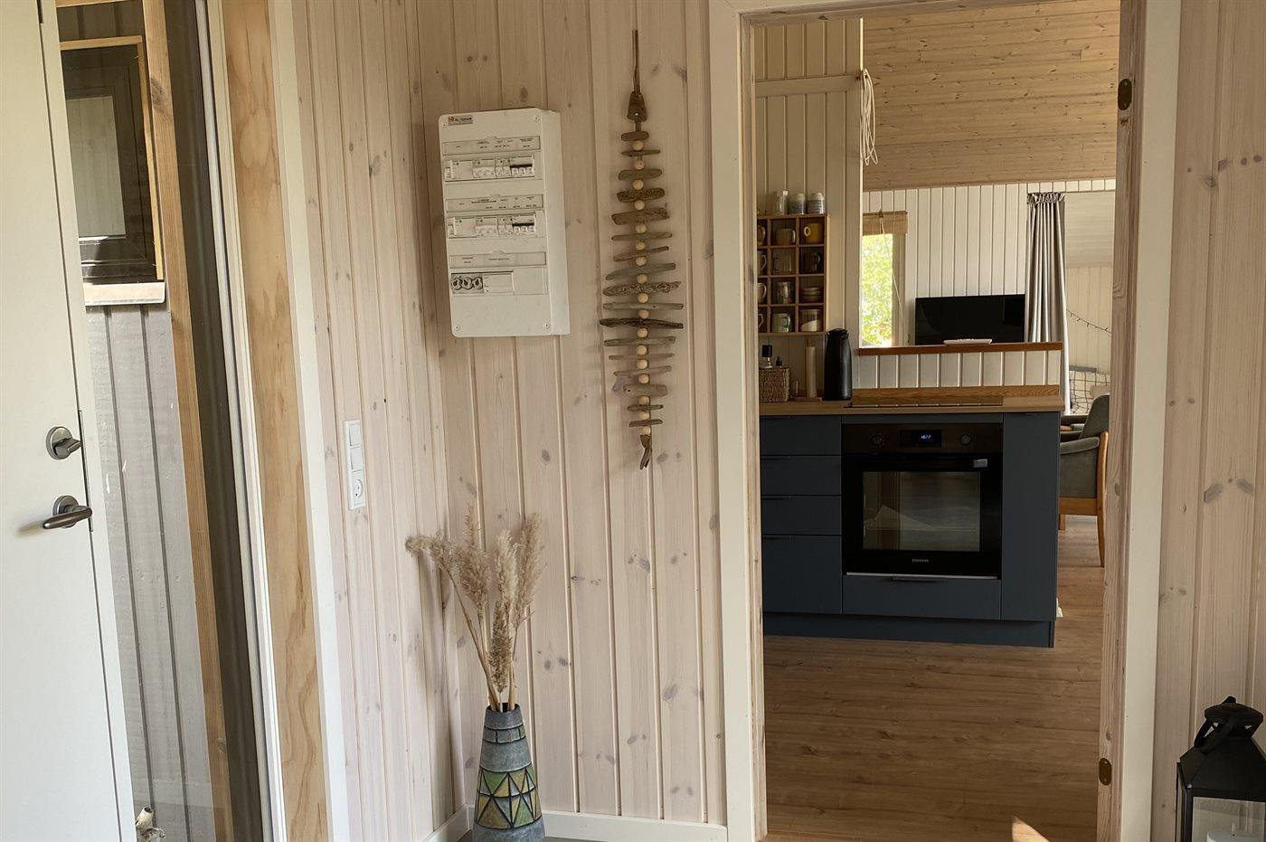 De vakantiewoning is gelegen op een 1250 m² groot natuural grond. Afstand tot de zee 150 m. Afstand tot de fjord 150 m. Dichtstbijzijnde winkel 3600 m. Bij de vakantiewoning hoort terras. Parkeerplaats bij het huis.