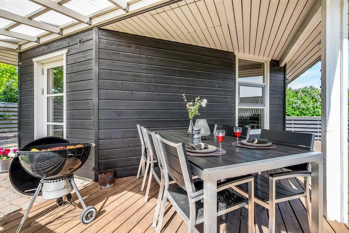 De vakantiewoning is gelegen op een 500 m² groot aangelegde tuin. Afstand tot de zee 250 m. Er is een zwemsteiger in de buurt. Dichtstbijzijnde winkel 3000 m. Bij de vakantiewoning hoort terras. Daarnaast is er een overdekt terras. Carport ter beschikking. Parkeerplaats bij het huis.