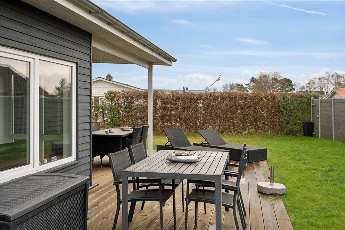 De vakantiewoning is gelegen op een 552 m² groot aangelegde tuin. De grond is omheind. Afstand tot de zee 275 m. Dichtstbijzijnde winkel 3000 m. Bij de vakantiewoning hoort terras. Daarnaast is er een overdekt terras. Parkeerplaats bij het huis.