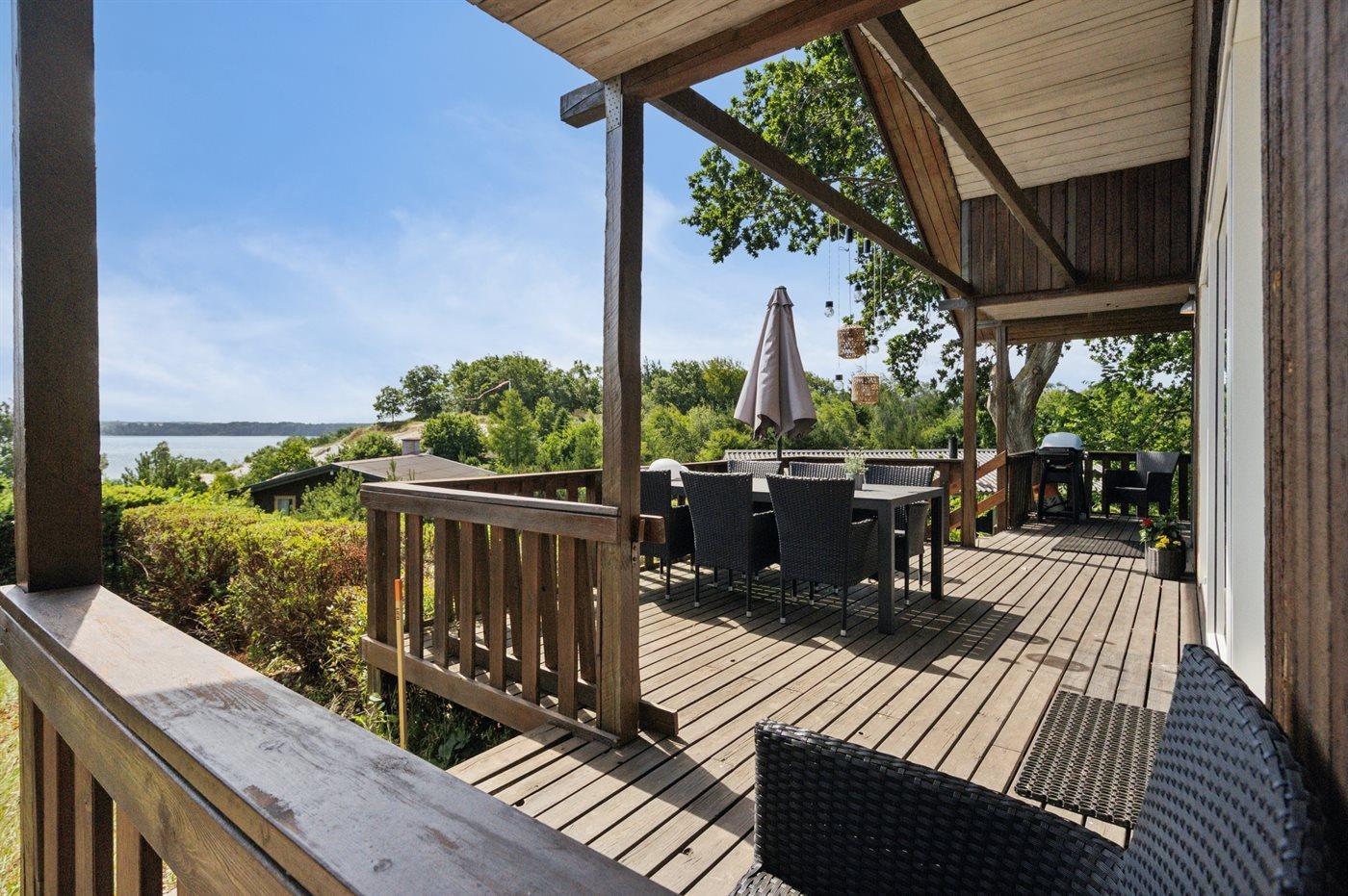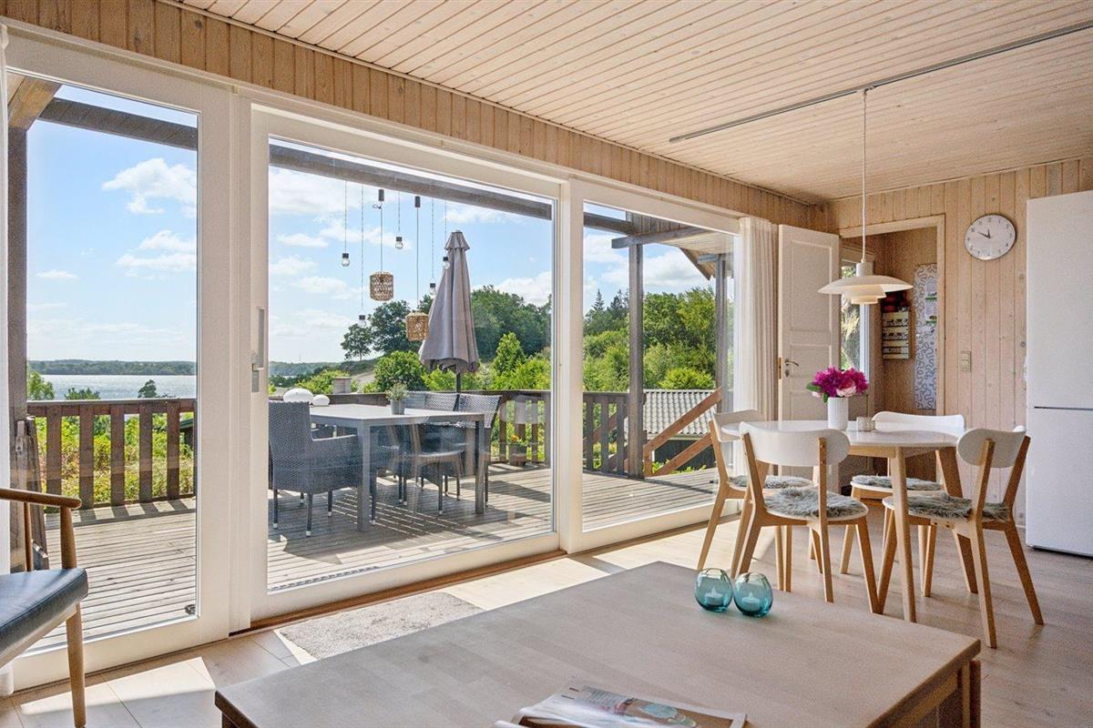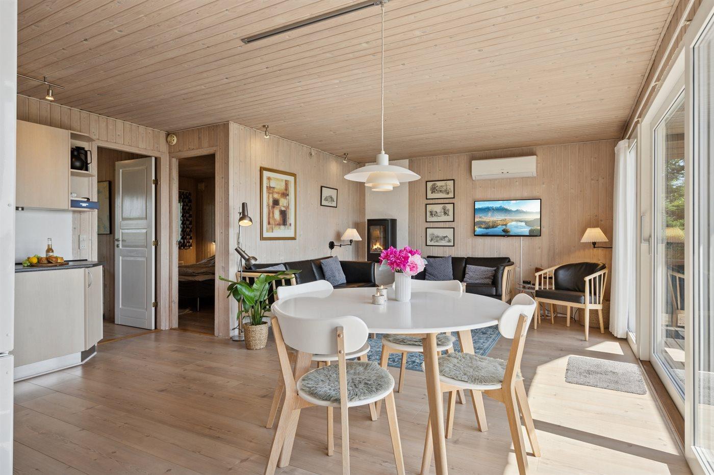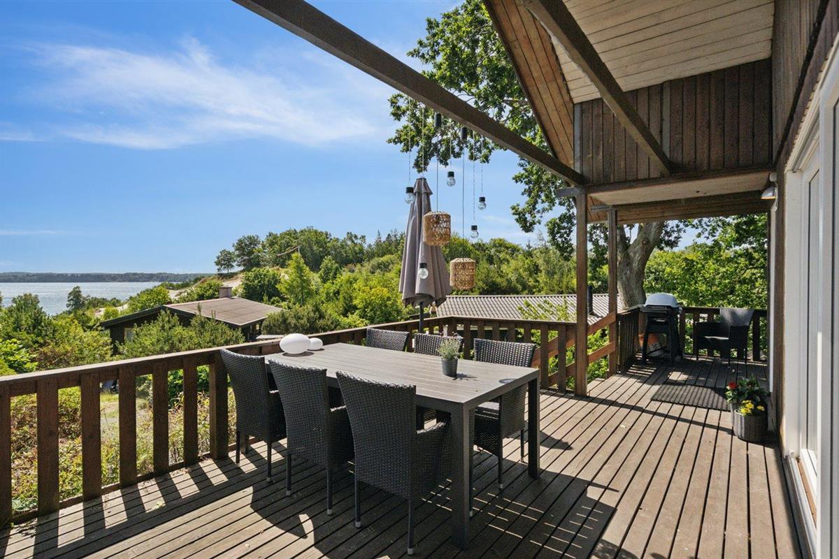 De vakantiewoning is gelegen op een 1635 m² groot natuural grond. Afstand tot de fjord 150 m. Er is een zwemsteiger in de buurt. Dichtstbijzijnde winkel 3000 m. Bij de vakantiewoning hoort terras. Daarnaast is er een overdekt terras. Gereedschapsruimte.Vuurplaats. Barbecue. Carport ter beschikking. Parkeerplaats bij het huis.