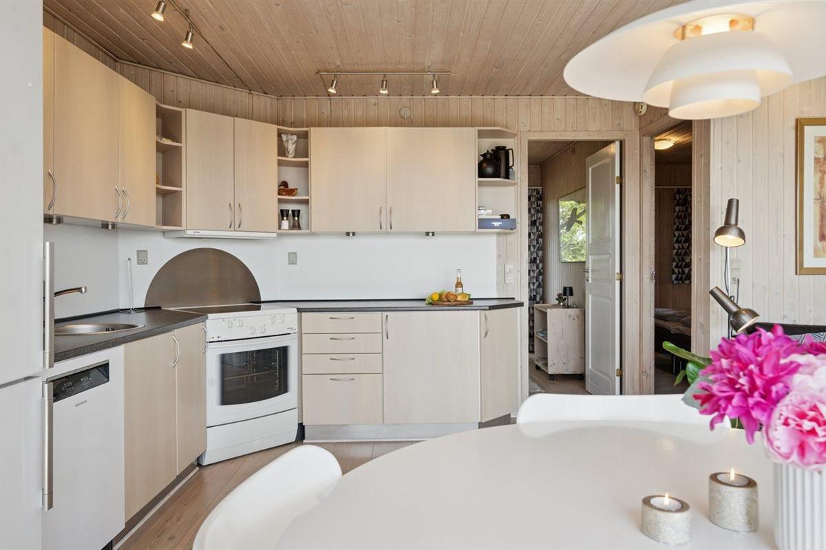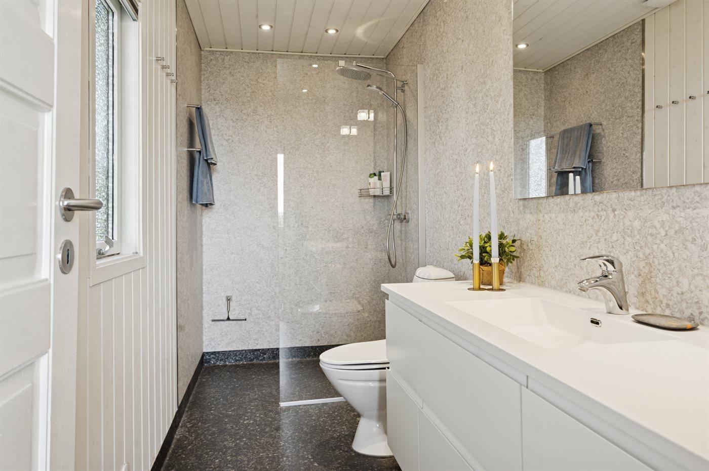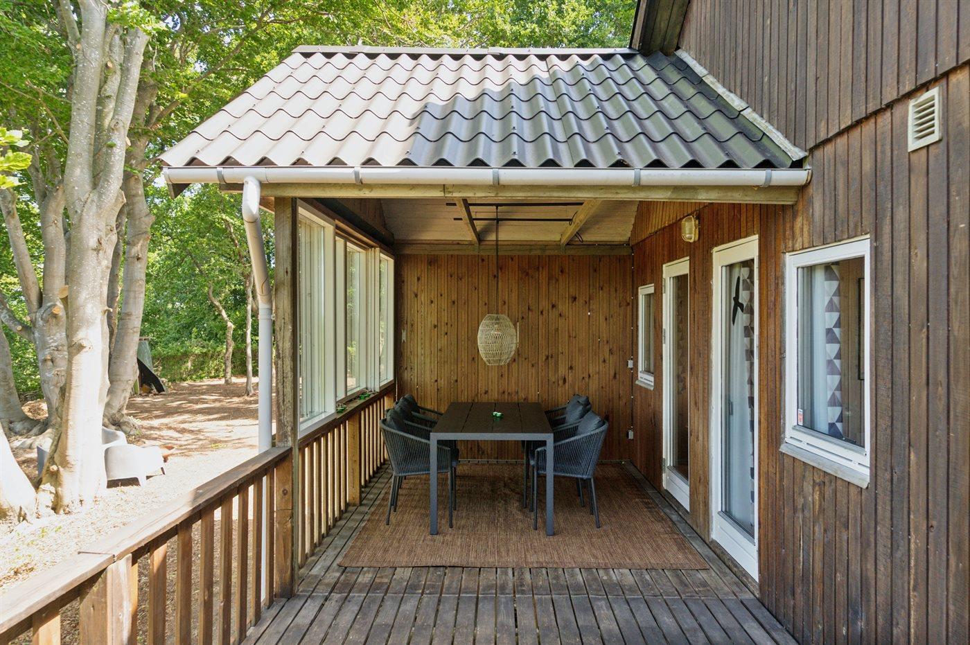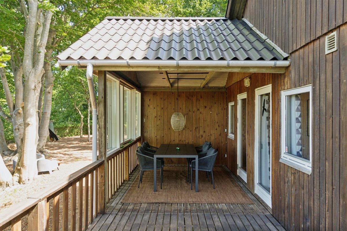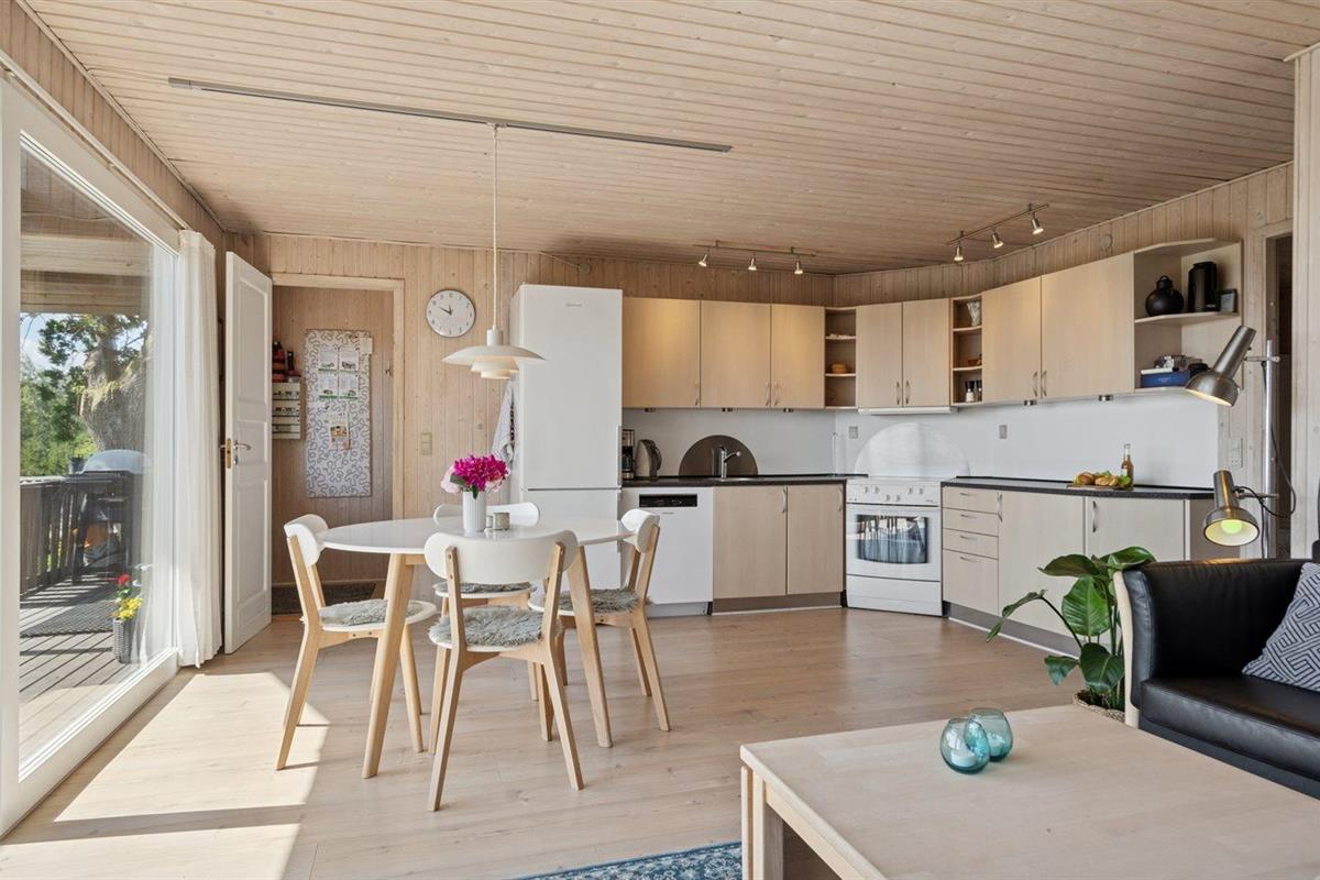 De vakantiewoning is gelegen op een 1635 m² groot natuural grond. Afstand tot de fjord 150 m. Er is een zwemsteiger in de buurt. Dichtstbijzijnde winkel 3000 m. Bij de vakantiewoning hoort terras. Daarnaast is er een overdekt terras. Gereedschapsruimte.Vuurplaats. Barbecue. Carport ter beschikking. Parkeerplaats bij het huis.