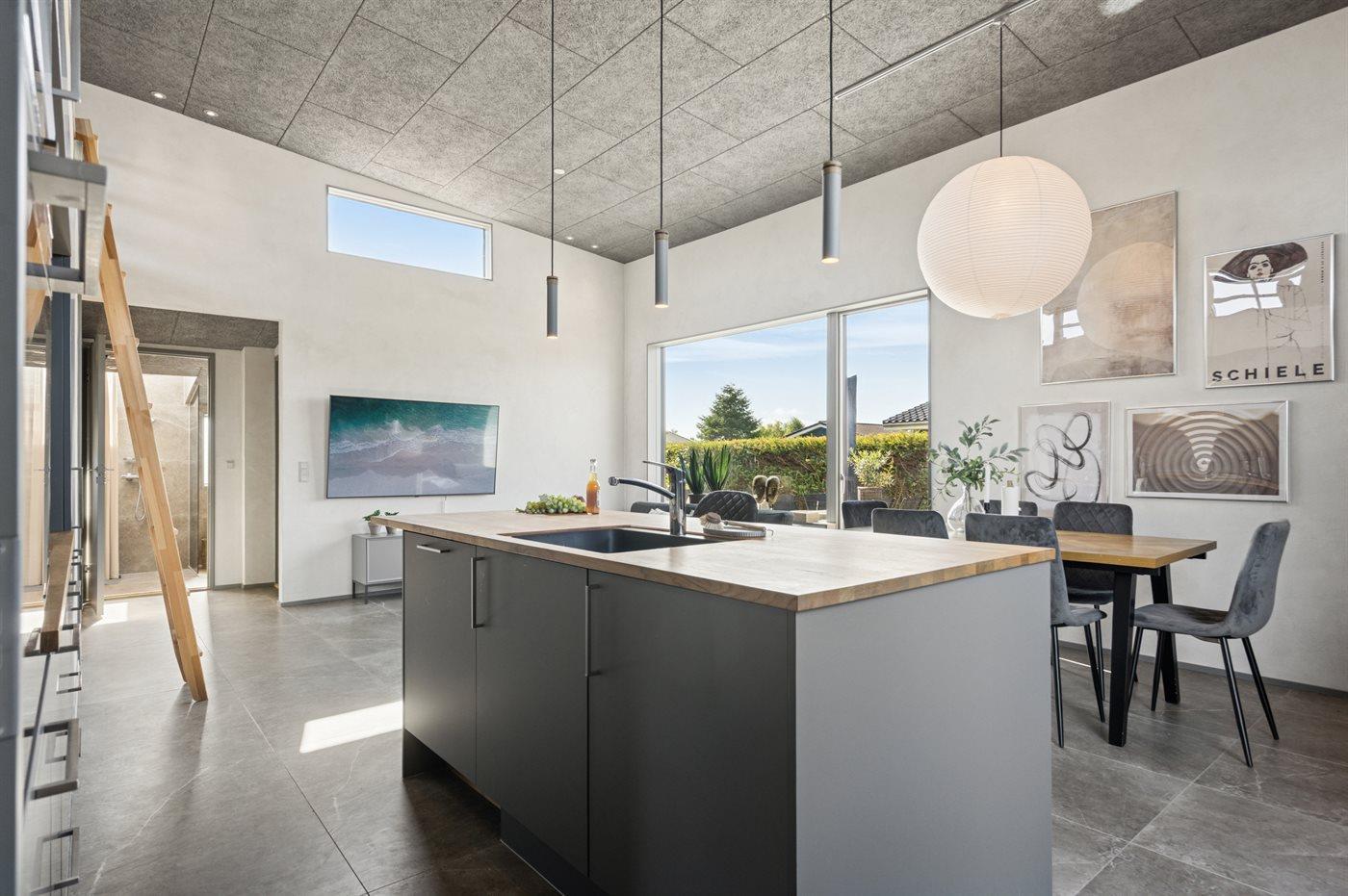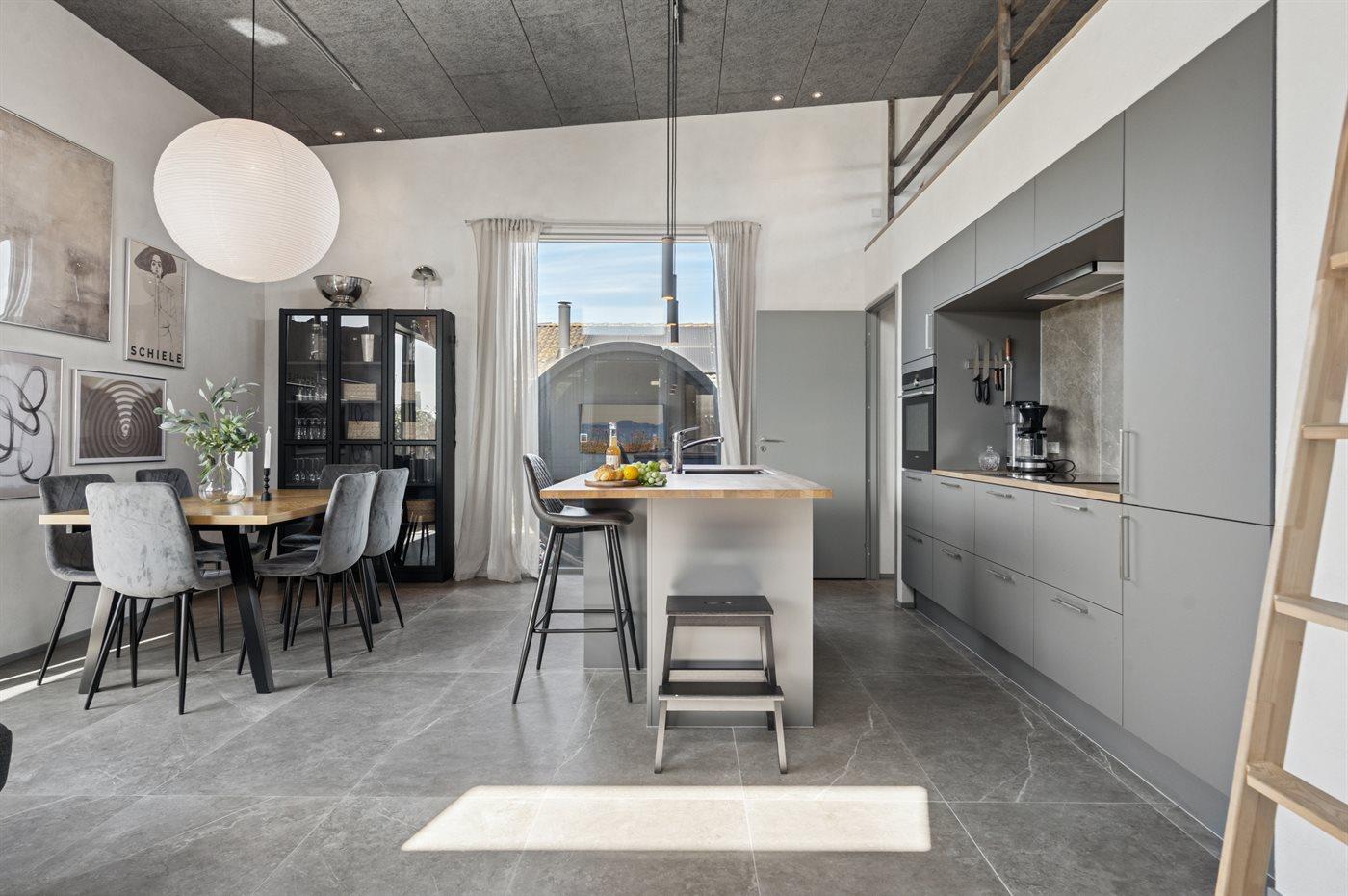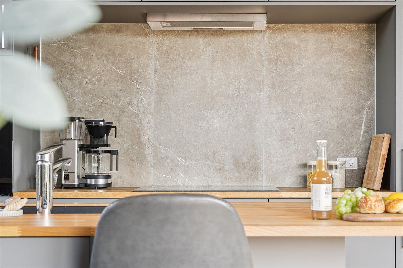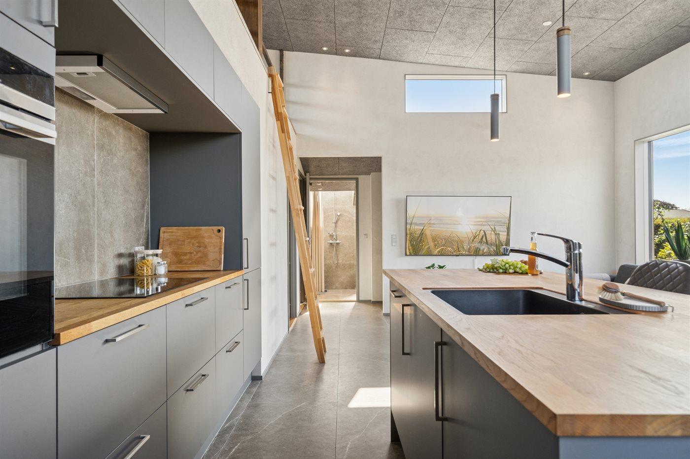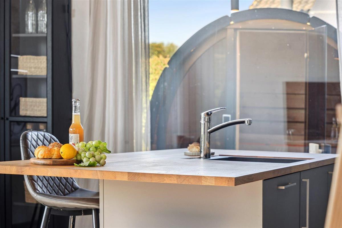 De keuken is uitgerust met koelkast Er is 4 inductiekookplaten, heteluchtoven, magnetron, Airfryer en vaatwasser.