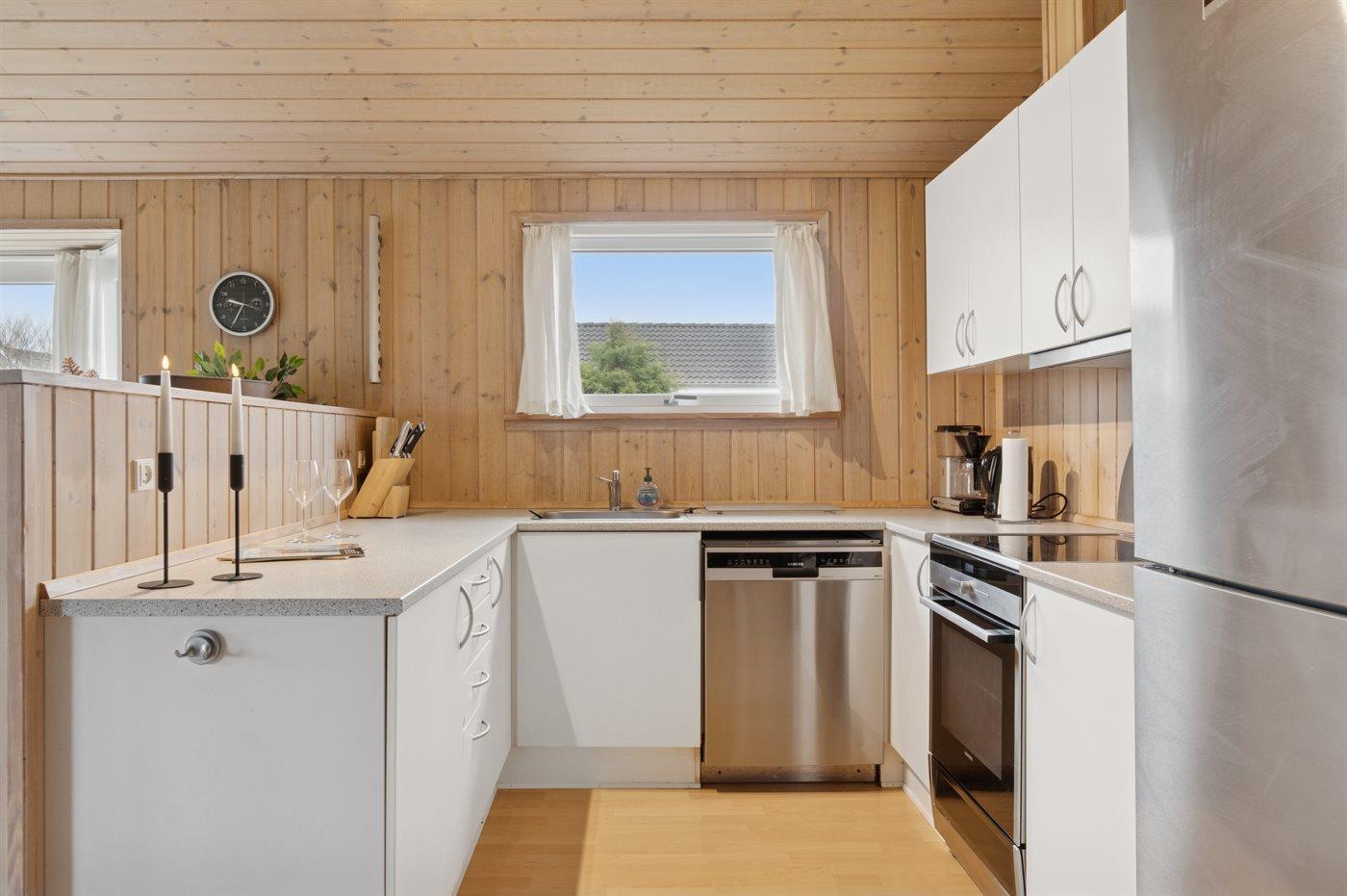 De keuken is uitgerust met koelkast Er is 4 inductiekookplaten, heteluchtoven, magnetron en vaatwasser.