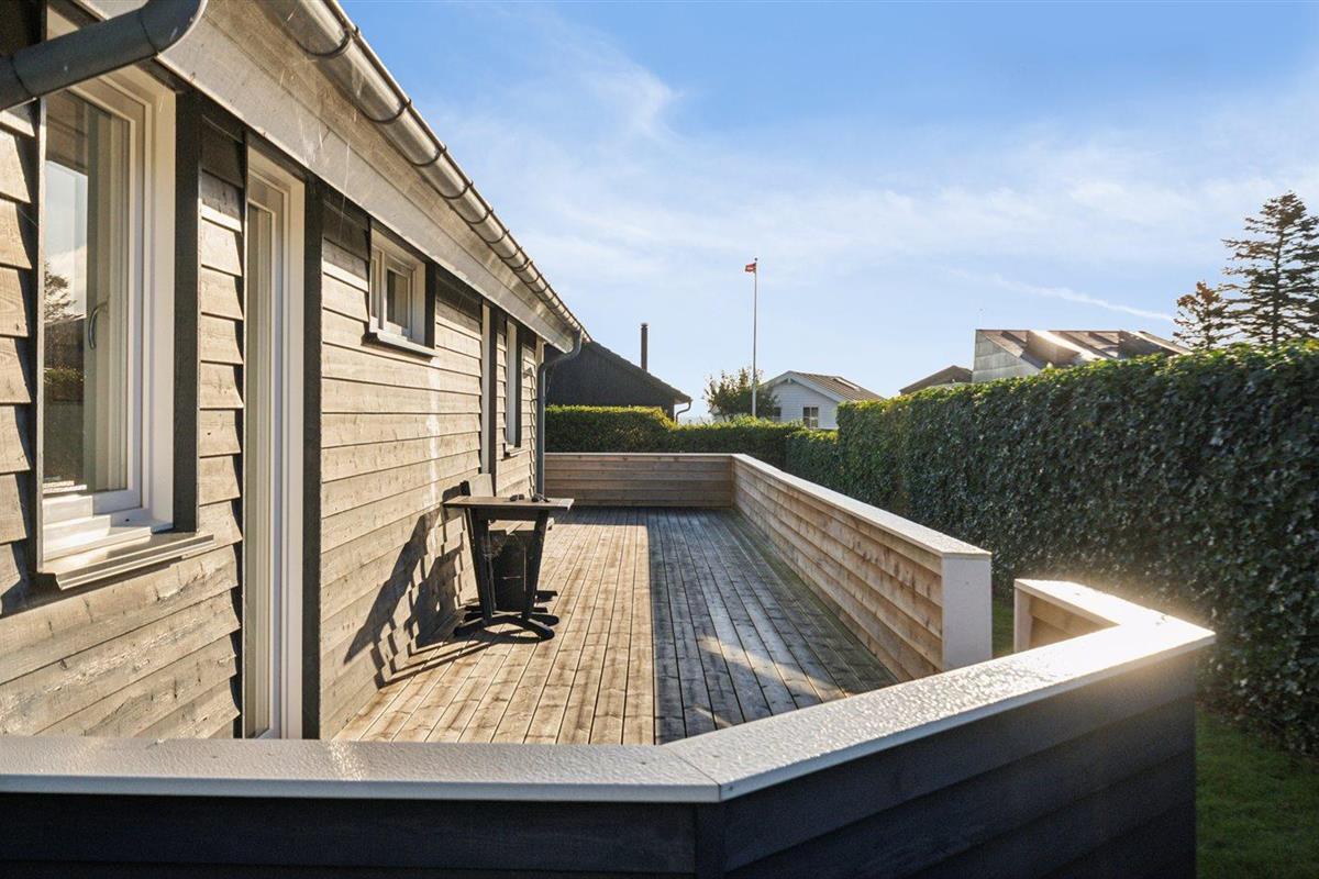 De vakantiewoning is gelegen op een 1200 m² groot aangelegde tuin. Afstand tot de zee 200 m. Dichtstbijzijnde winkel 5000 m. Bij de vakantiewoning hoort terras. Daarnaast is er een overdekt terras. Gereedschapsruimte. Barbecue. Buitengootsteen. Carport ter beschikking. Parkeerplaats bij het huis.