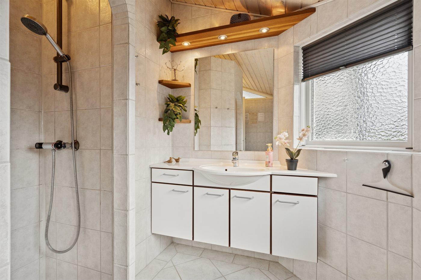 Er is 1 badkamer met douchehok en 2 toiletten, waarvan 1 gastentoilet. Er is vloerverwarming in 1 badkamer.