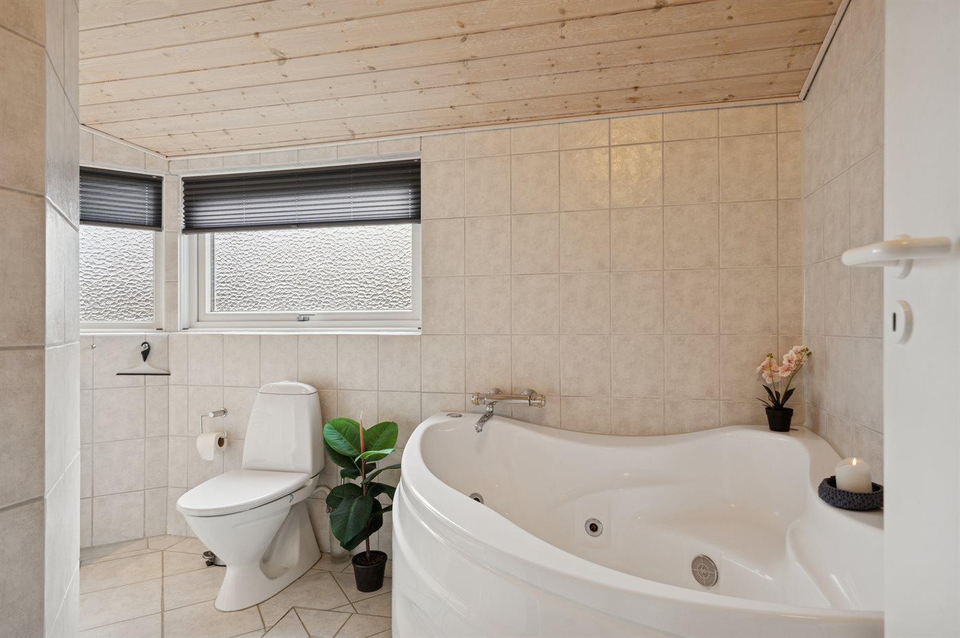 Gezellig vakantiehuis vlak bij zee in Børkop met tuin, overdekt terras en bubbelbad.