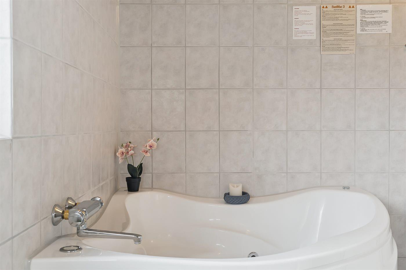 Het binnenbubbelbad (vulwater) biedt ontspanning aan 2 personen.