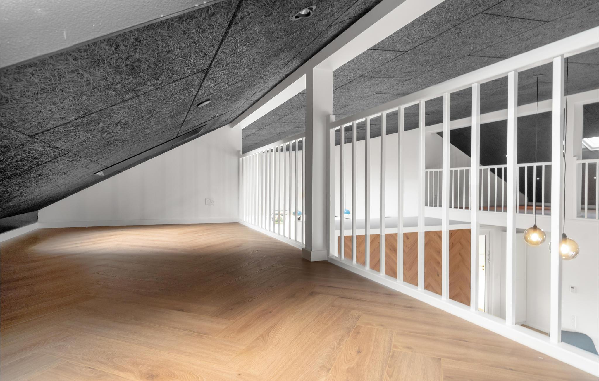Welkom in dit geweldige vakantiehuis, dat vooral indruk maakt door de uitgekiende inrichting. De belangrijkste ruimte van het huis is de grote keuken-woonkamer met eethoek, die intelligent wordt gescheiden door een hoog element inclusief zitplaatsen. De plafonds zijn hoog tot aan het schuine dak, waardoor een heerlijk woongevoel ontstaat. Direct onder het dak bevindt zich een kleine zolder met slaapgelegenheid, die via een ladder te bereiken is en ideaal is voor de kinderen.